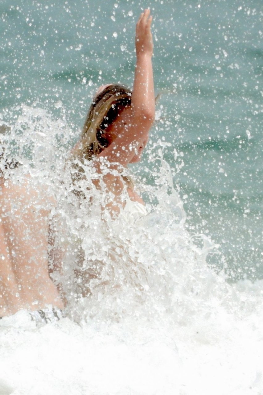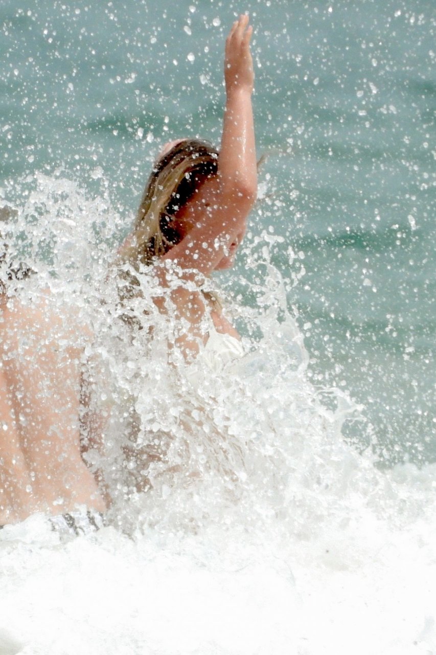 Sports Illustrated modelo Georgia Gibbs se refresca mientras está de vacaciones con su novio en Tulum, México, 13/06/2019.