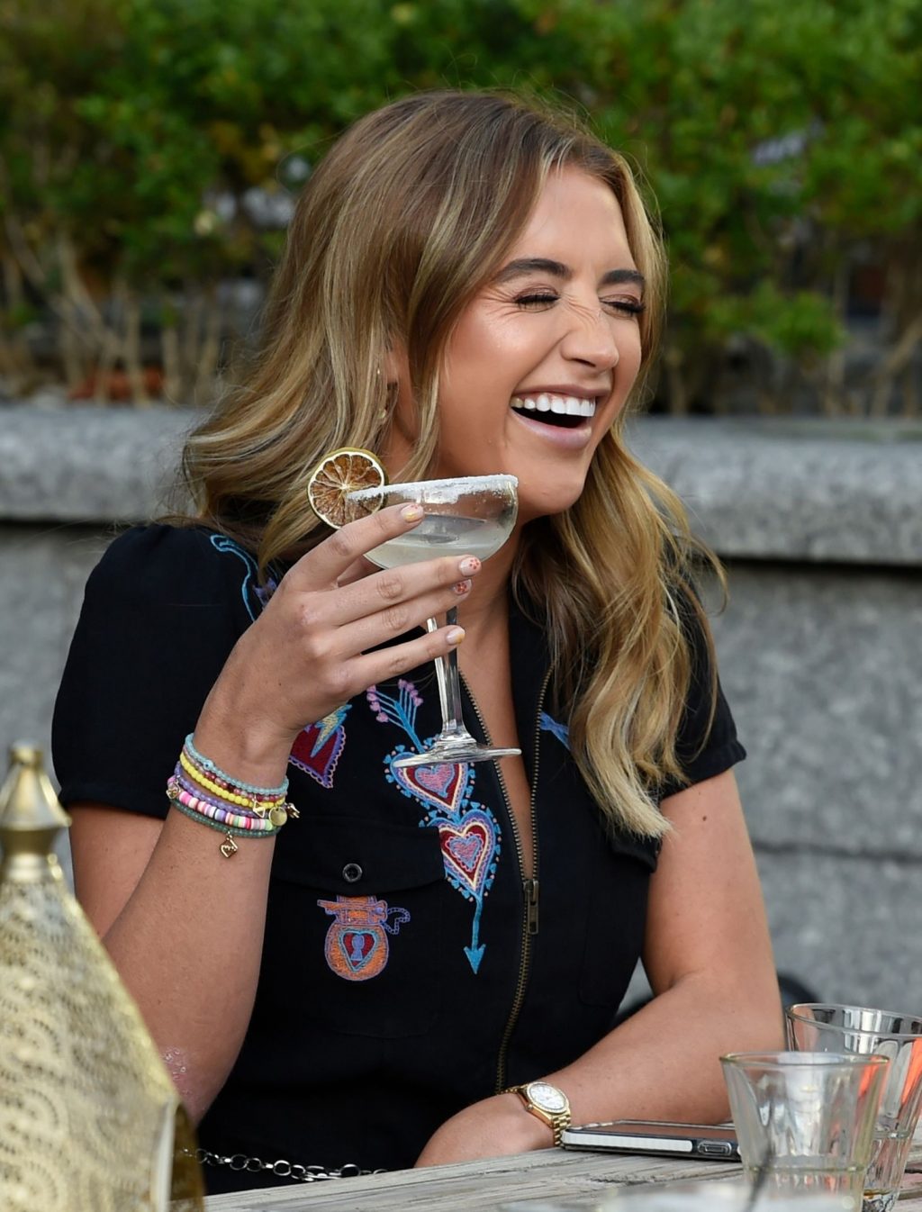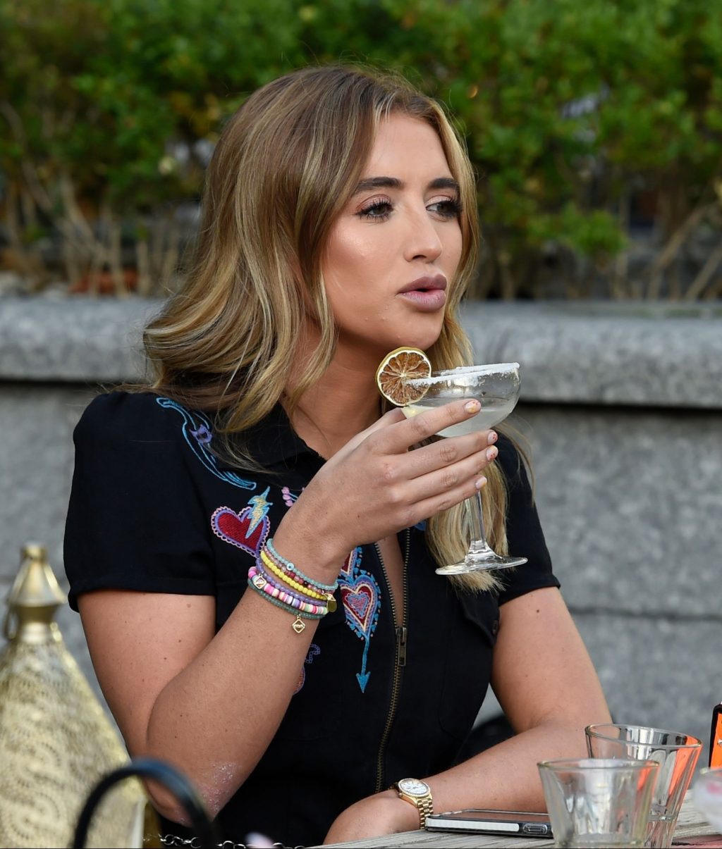 Love Island y la estrella de TOWIE Georgia Harrison presume de sus nuevos pechos 32C de $8K mientras filma Olivia Meets her Match con Nicole Bass y Fran Parman en Manchester en Impossible Bar, 09/02/2020.