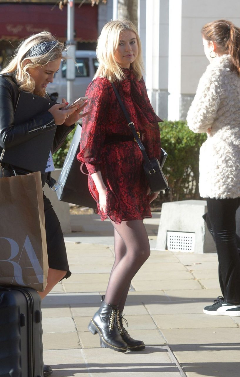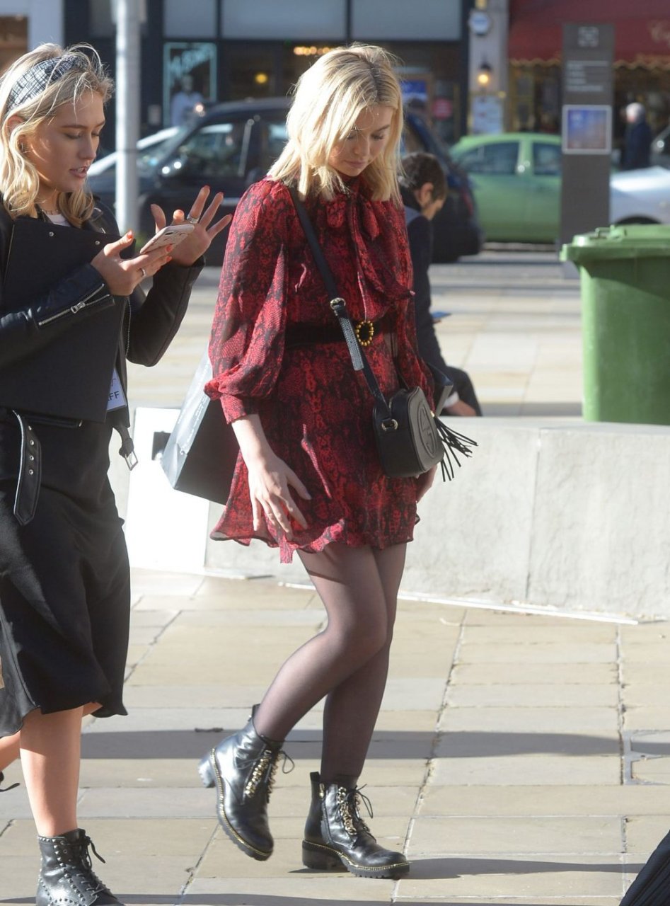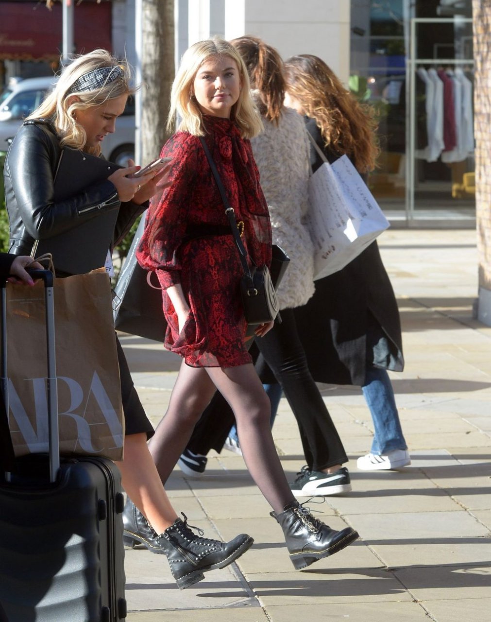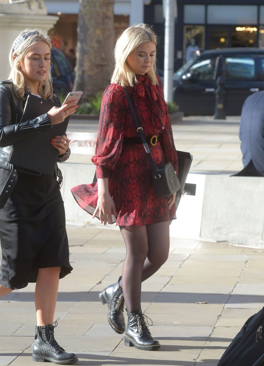 Reina de la Jungla y estrella de MIC, Georgia Toffolo fue vista llegando a la Galería Saatchi en Chelsea, donde los fuertes vientos causaron estragos con su falda camisa, escapando por poco de un fallo de vestuario, 03/10/2019.