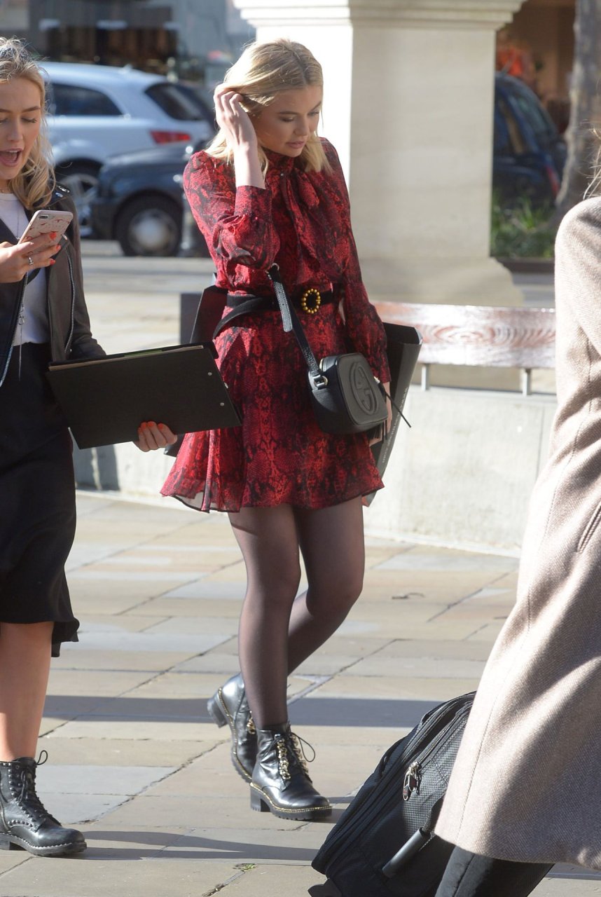 Reina de la Jungla y estrella de MIC, Georgia Toffolo fue vista llegando a la Galería Saatchi en Chelsea, donde los fuertes vientos causaron estragos con su falda camisa, escapando por poco de un fallo de vestuario, 03/10/2019.