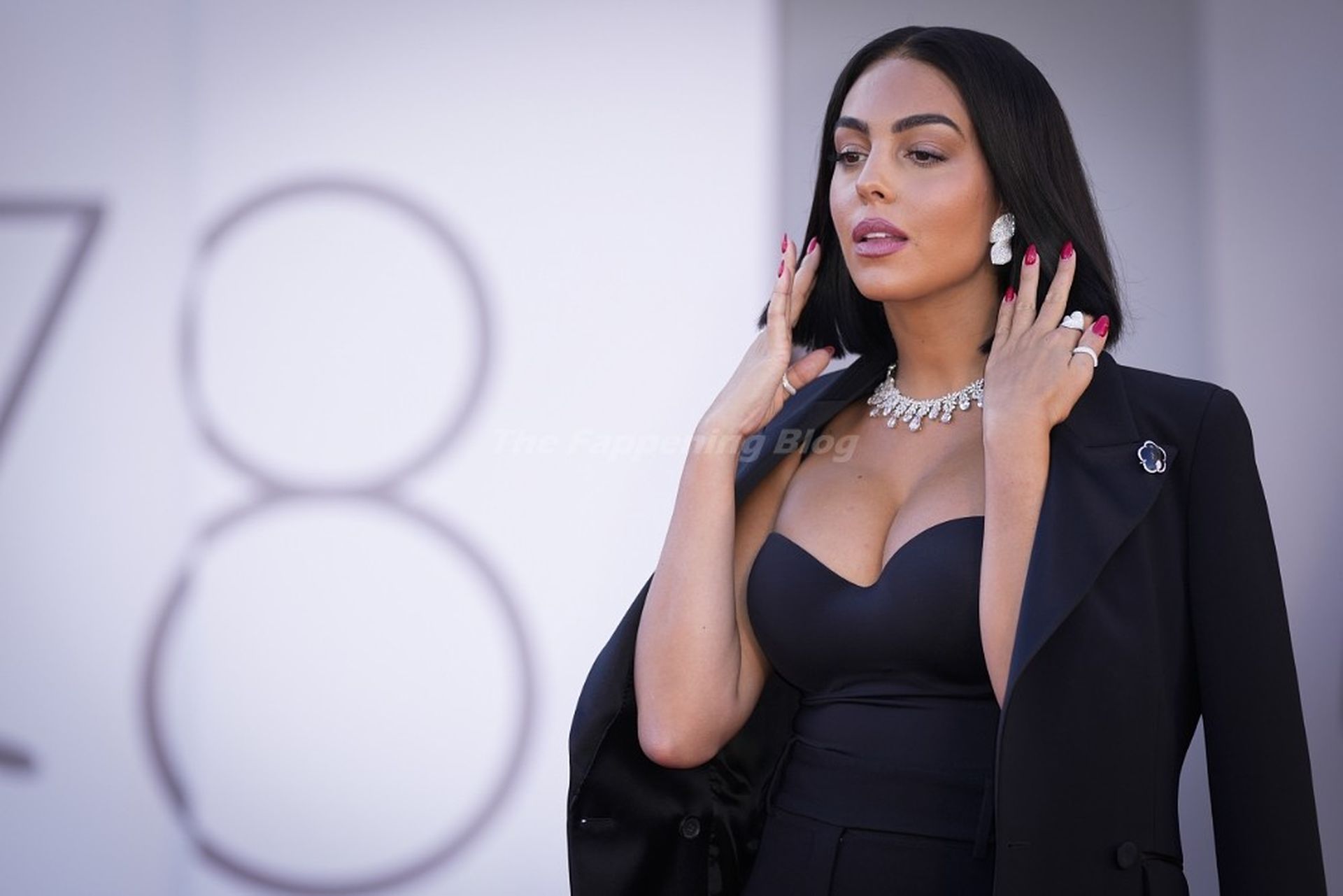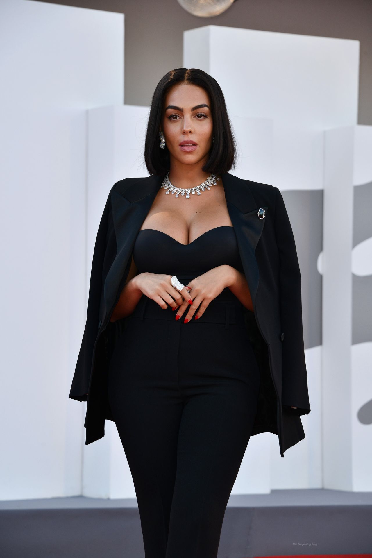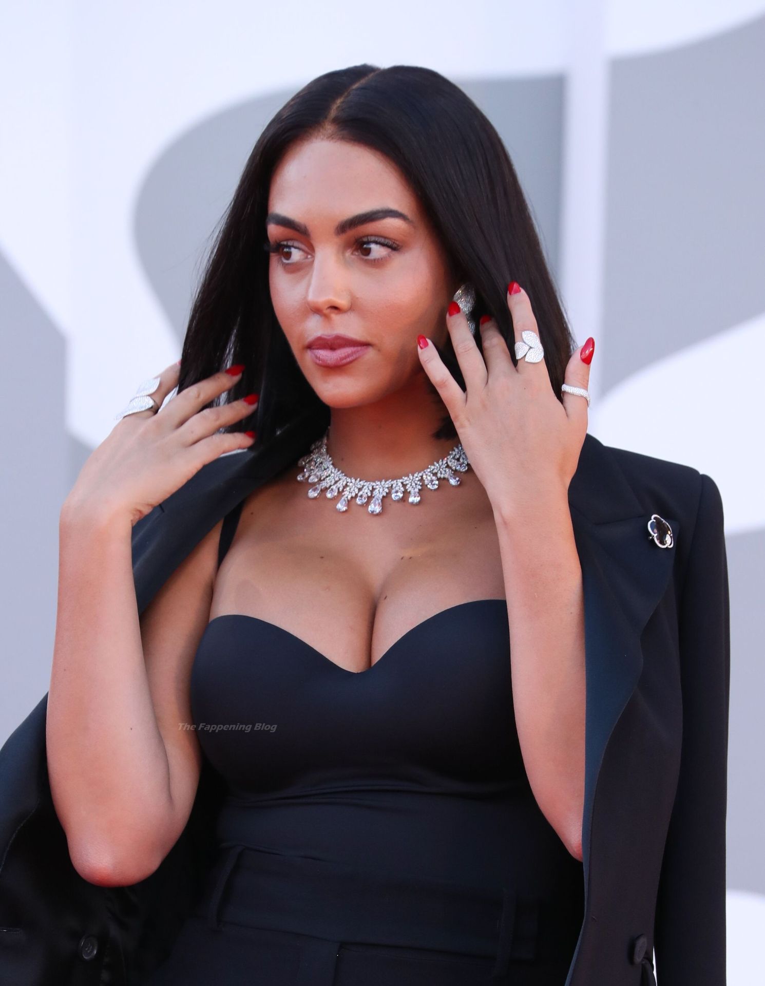 El escote es la mejor amiga accesorio de cualquier evento de moda y Georgina está demostrando mi punto a la perfección.