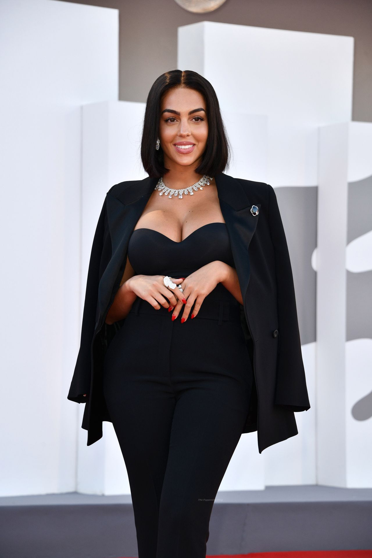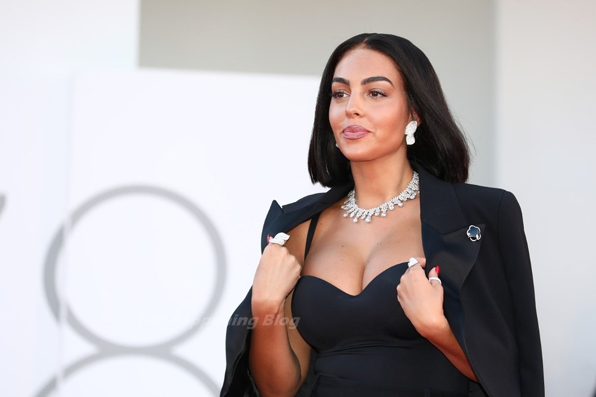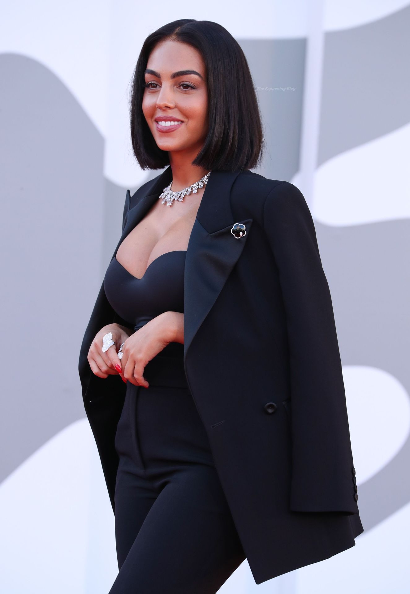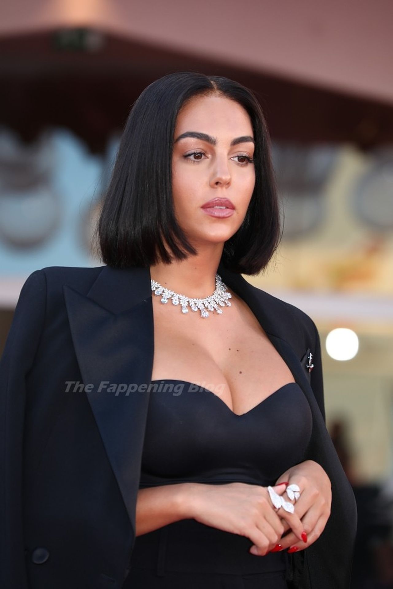 El escote es la mejor amiga accesorio de cualquier evento de moda y Georgina está demostrando mi punto a la perfección.