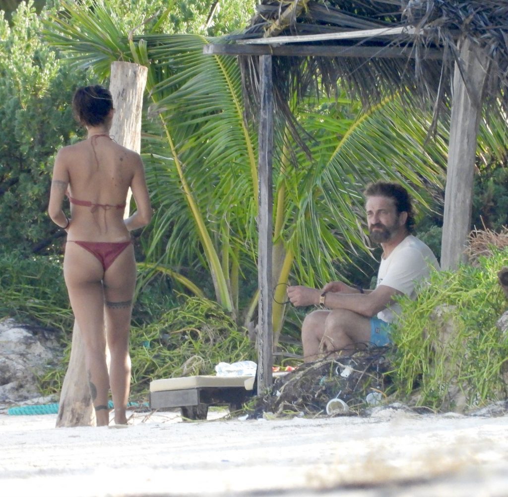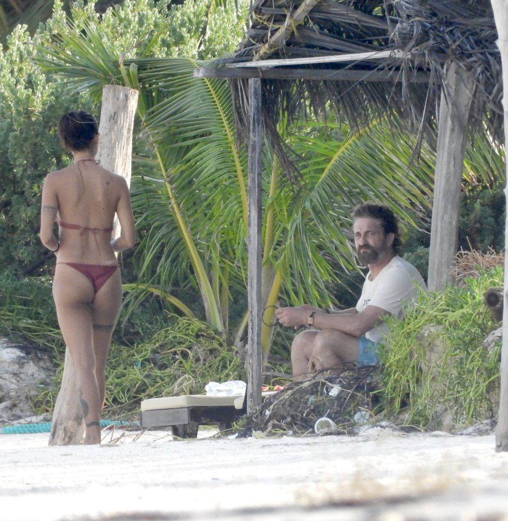 Gerard Butler lucía en excelente forma mientras disfrutaba de la playa en México con una mujer misteriosa, 18/11/2020.