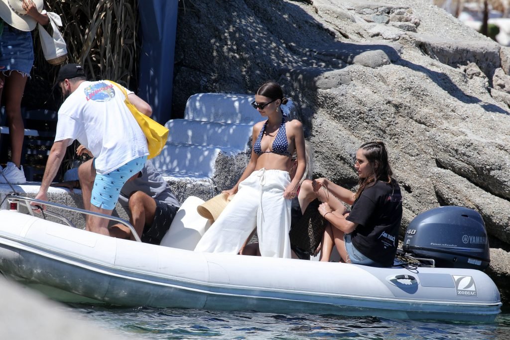 Modelos Emily Ratajkowski y Gigi Hadid disfrutan de un día en el mar bailando y tomando fotos en un yate en Mykonos, 01/07/2018.
