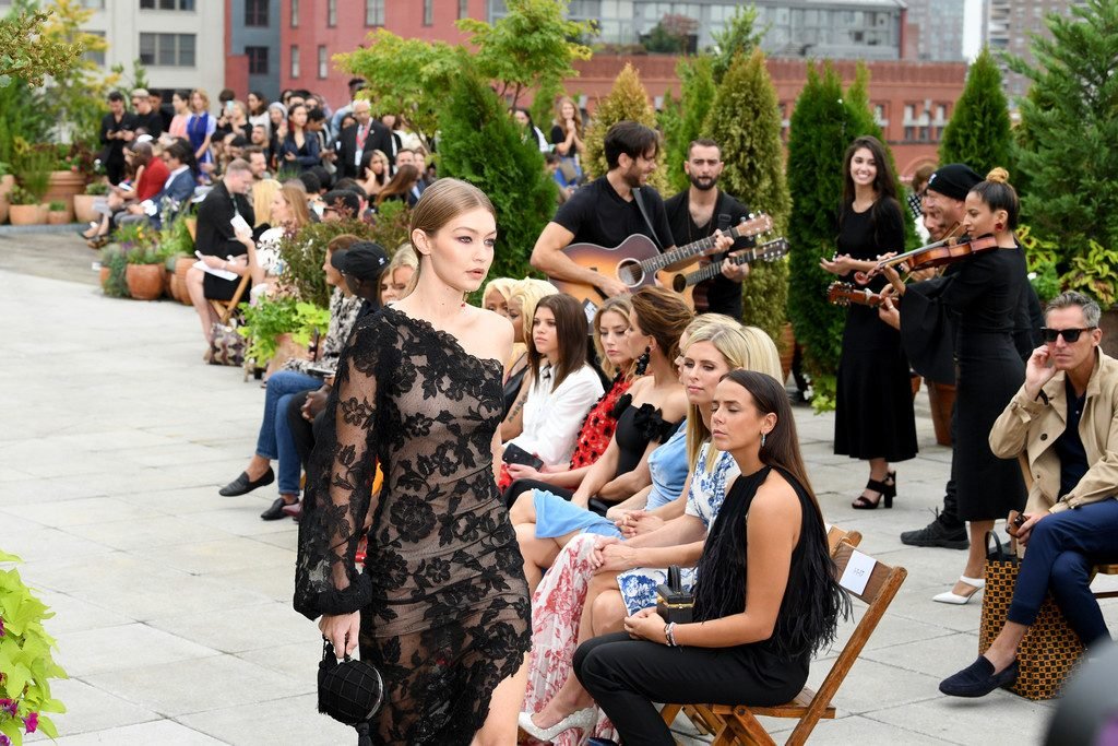 Model Gigi Hadid (23) camina por la pasarela con un vestido negro transparente para el desfile de Oscar de la Renta Primavera 2019 durante la Semana de la Moda de Nueva York, 11/09/2018.
