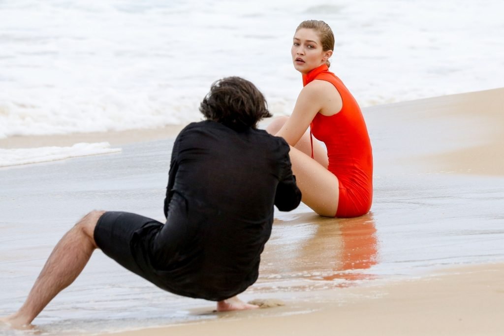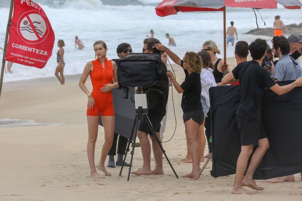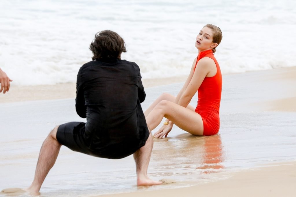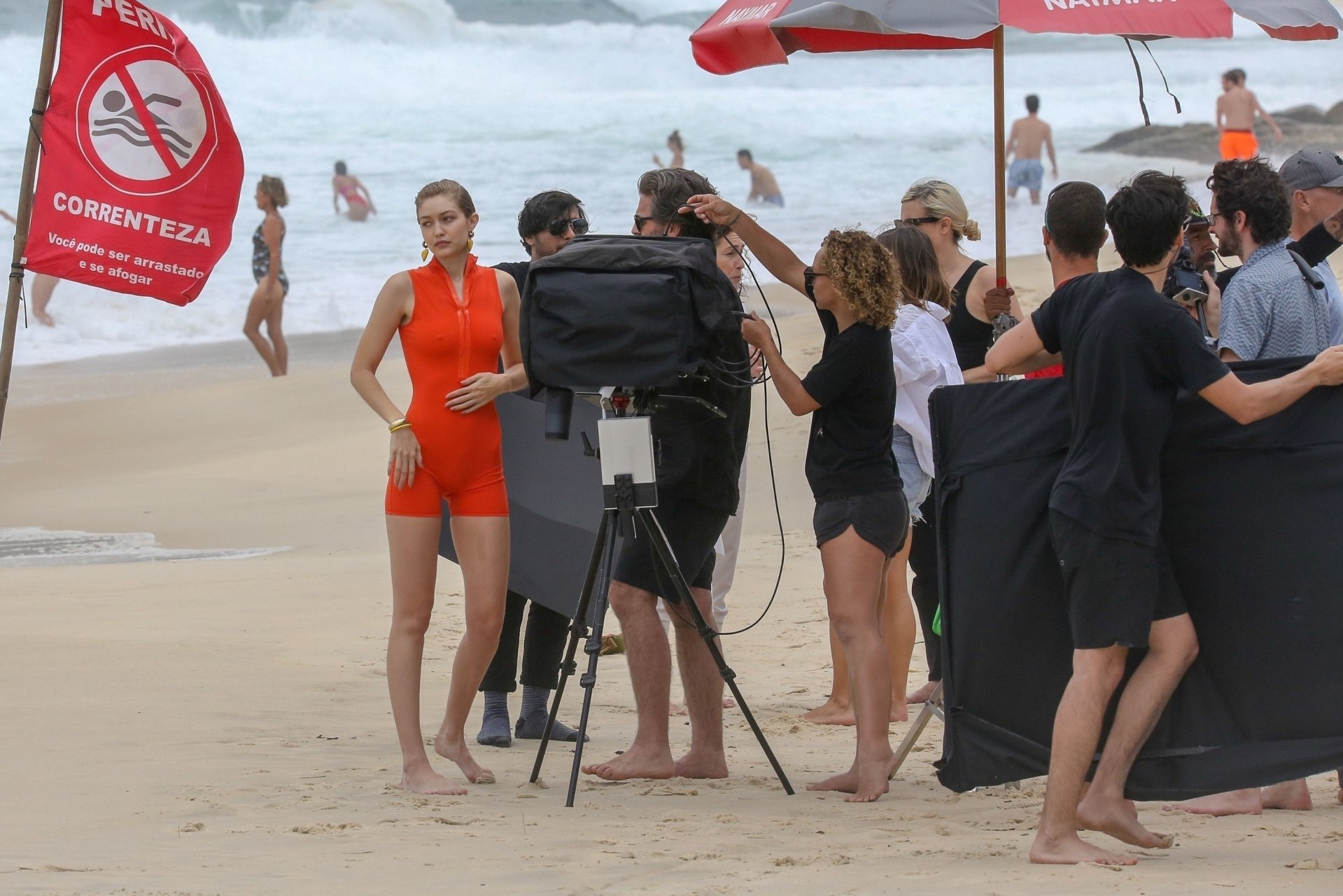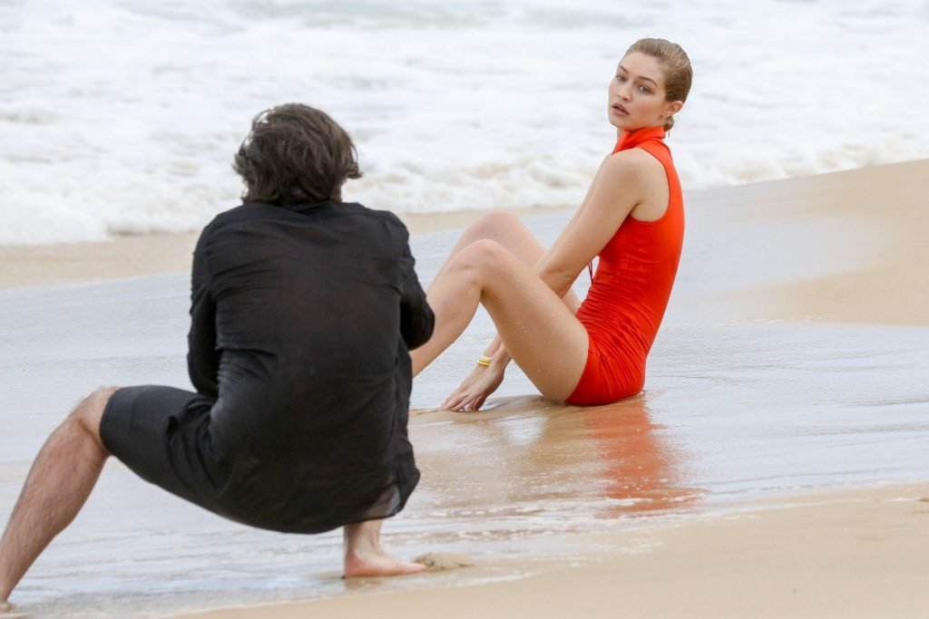 Model Gigi Hadid luce increíble con un bikini rojo de una pieza durante una sesión de fotos en la playa de Ipanema en Río, Brasil, 20/10/2018.