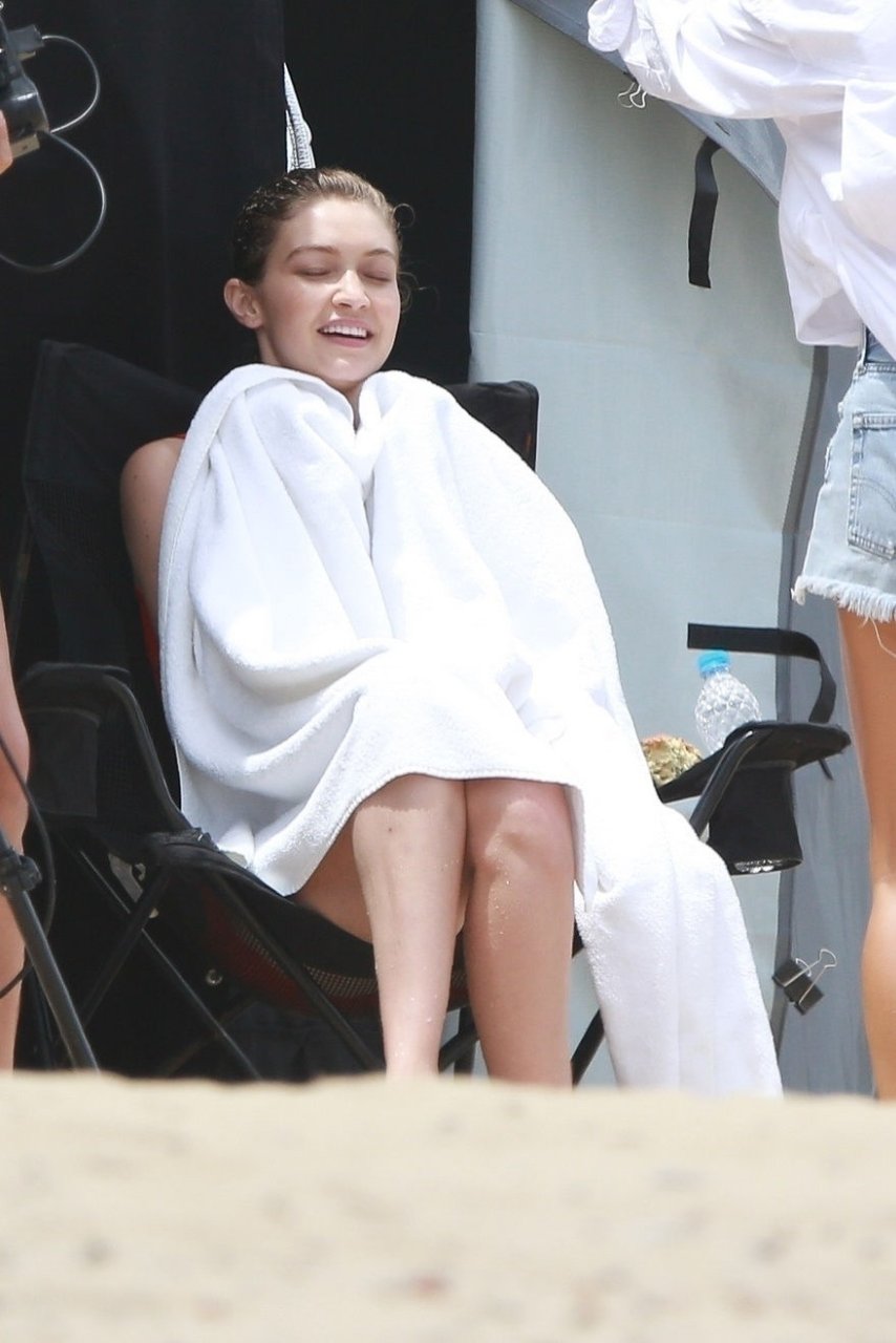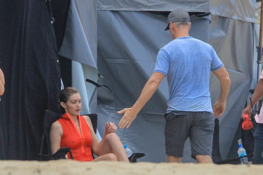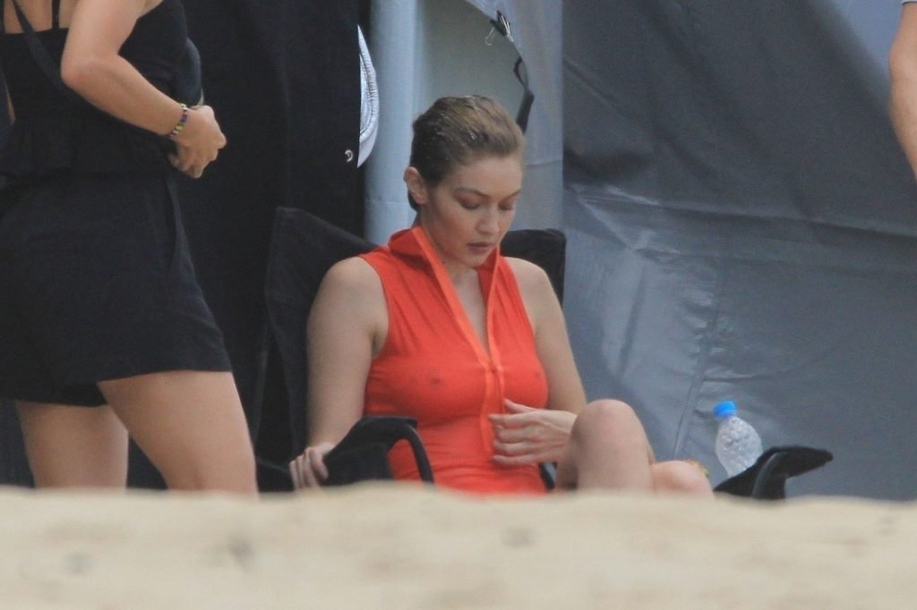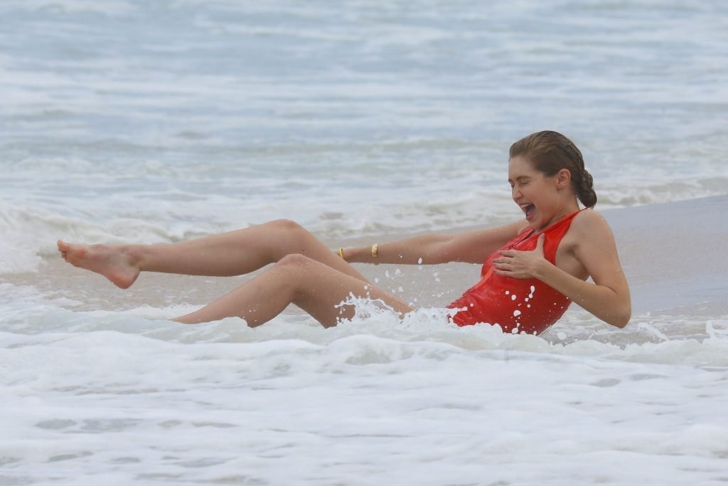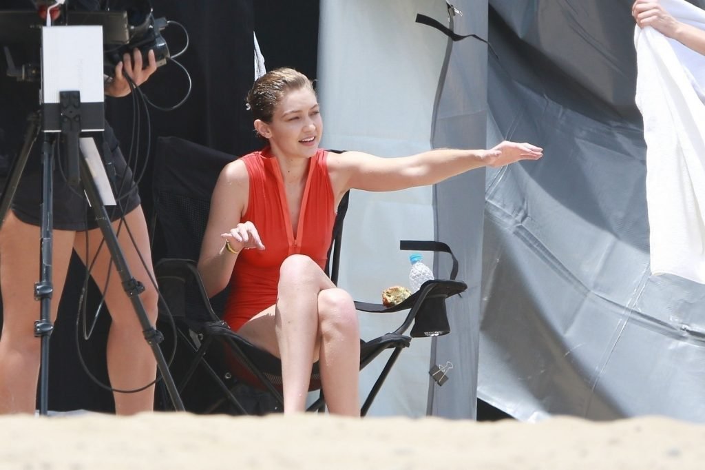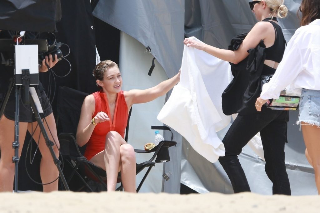 Model Gigi Hadid luce increíble con un bikini rojo de una pieza durante una sesión de fotos en la playa de Ipanema en Río, Brasil, 20/10/2018.