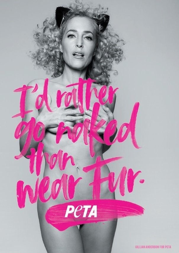 Gillian Anderson posa para la nueva campaña de PETA (febrero de 2018). Gillian Anderson es una actriz angloamericana (Expediente X). Edad – 49 años.