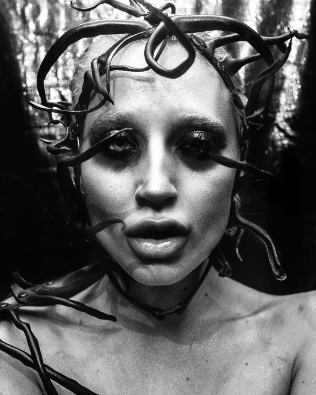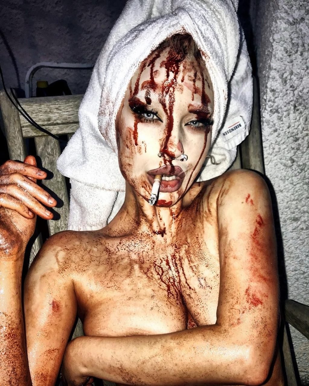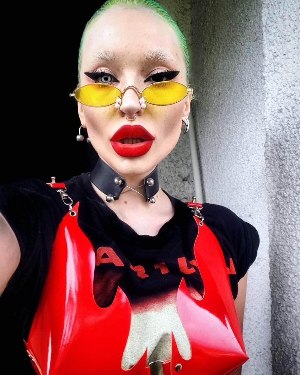 Gina es conocida por sus sesiones fotográficas impactantes y provocativas. Esta mujer mezcla especialmente la belleza y la deshonra: atuendos extraños, maquillaje misterioso, tatuajes ominosos. Gina tiene un tatuaje en la lengua. La apariencia de Gina Harrison es simplemente asombrosa. Tiene pechos grandes, trasero sexy y una cintura increíblemente delgada, y no oculta a sus fans el uso de cirugía plástica.