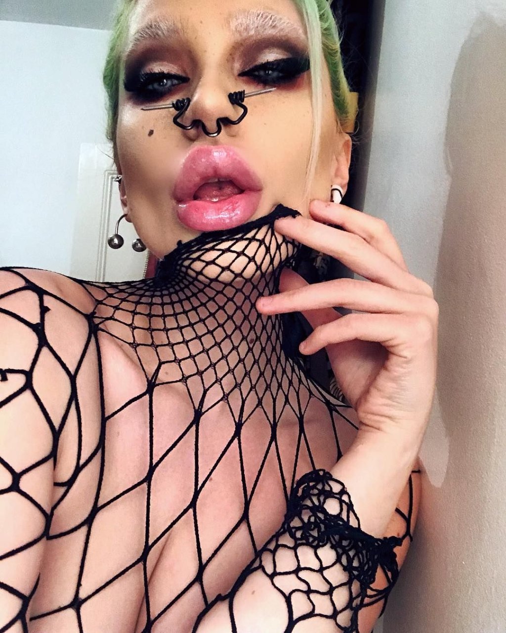 Gina es conocida por sus sesiones fotográficas impactantes y provocativas. Esta mujer mezcla especialmente la belleza y la deshonra: atuendos extraños, maquillaje misterioso, tatuajes ominosos. Gina tiene un tatuaje en la lengua. La apariencia de Gina Harrison es simplemente asombrosa. Tiene pechos grandes, trasero sexy y una cintura increíblemente delgada, y no oculta a sus fans el uso de cirugía plástica.