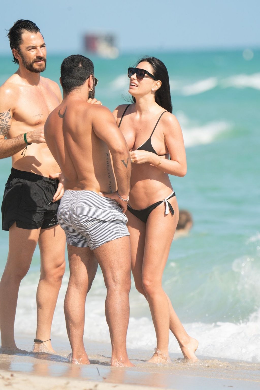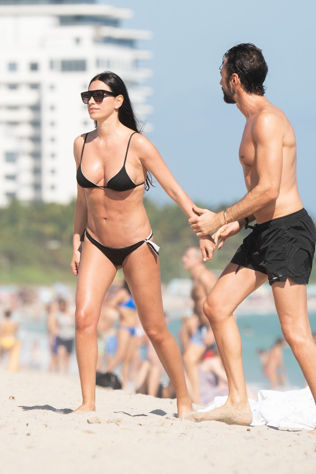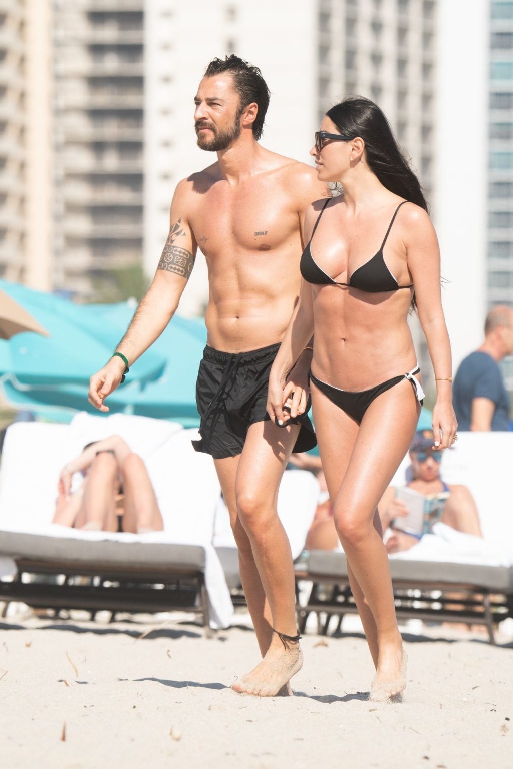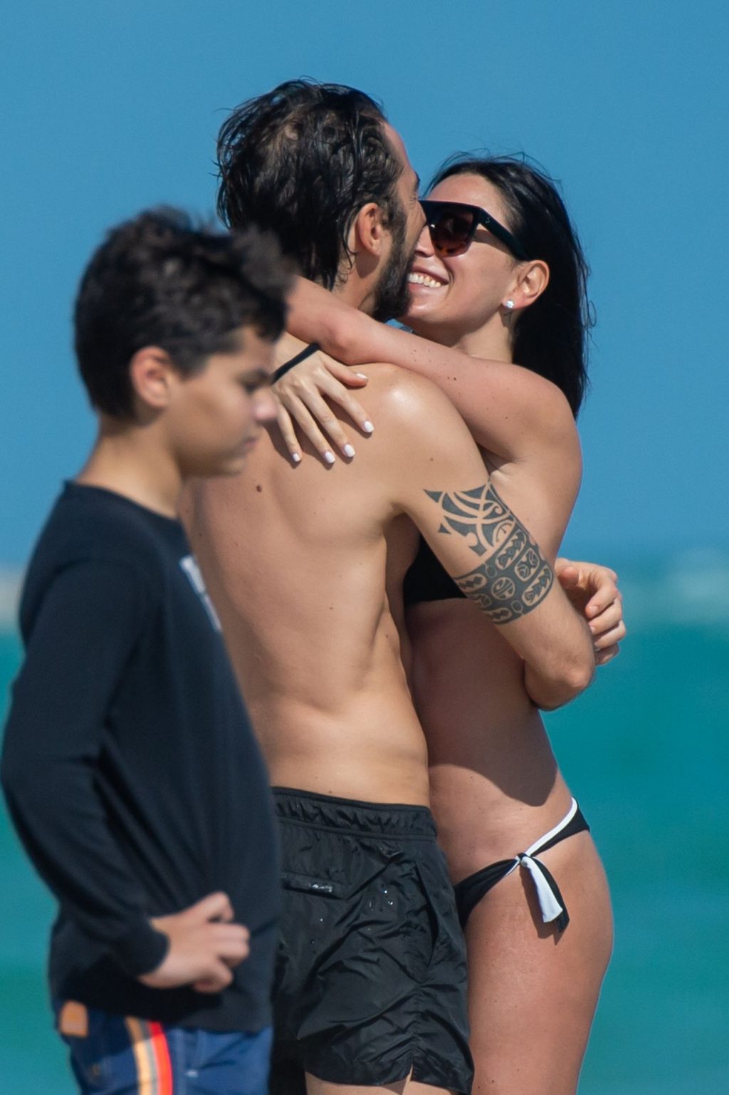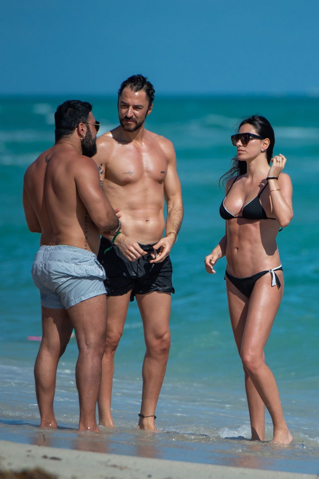La celebridad italiana y nueva mamá Giorgia Gabriele y su pareja Andrea Grilli son vistos durante un día de playa en Miami, 01/03/2020. Giorgia Gabriele mostró su increíble cuerpo post parto mientras usaba un mini negro.
