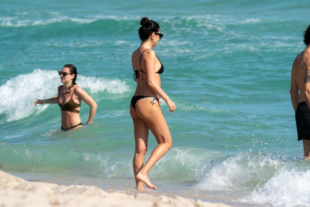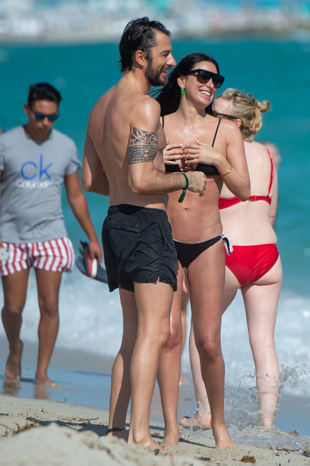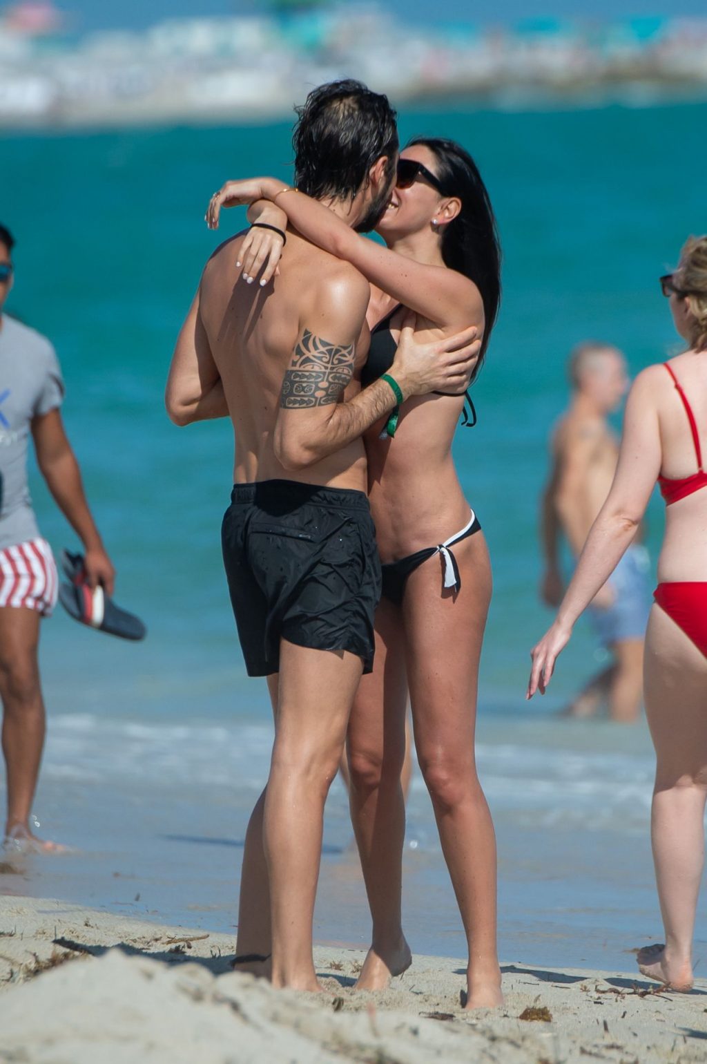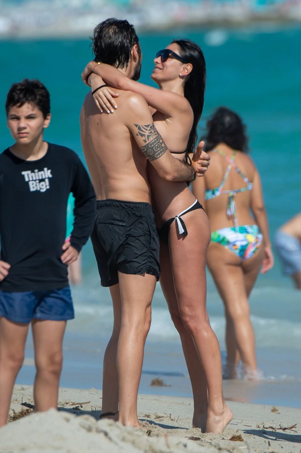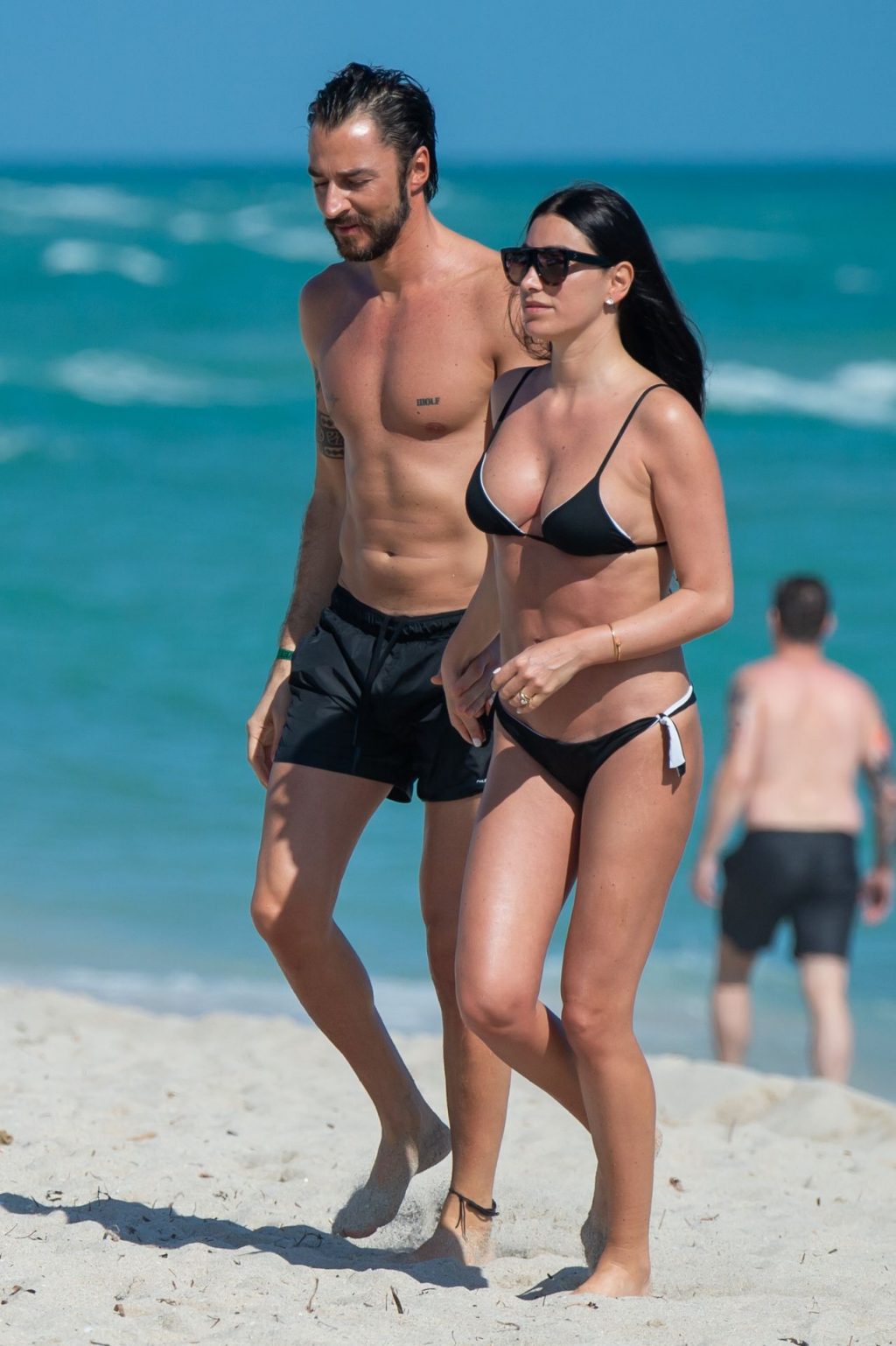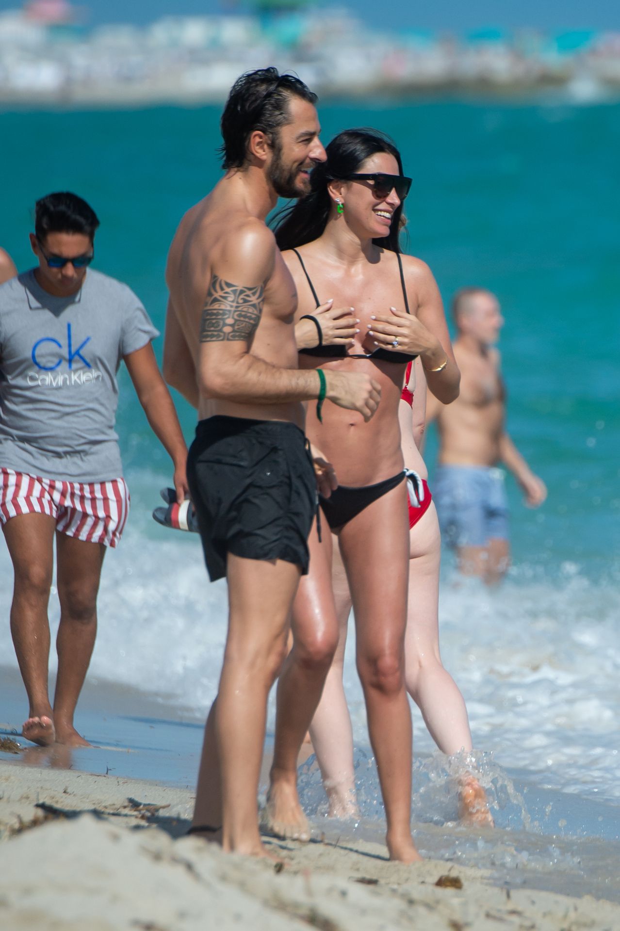 La celebridad italiana y nueva mamá Giorgia Gabriele y su pareja Andrea Grilli son vistos durante un día de playa en Miami, 01/03/2020. Giorgia Gabriele mostró su increíble cuerpo post parto mientras usaba un mini negro.
