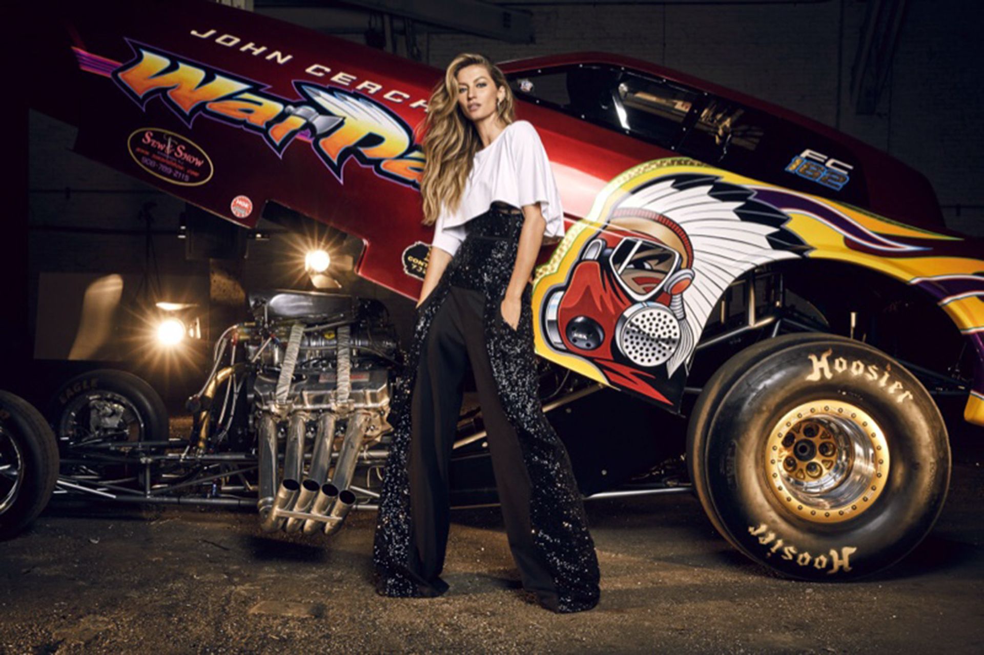 Gisele Bündchen eleva el factor glamoroso como la imagen de la campaña de invierno 2019 de Rosa Cha. Capturada junto a autos retro. La nueva temporada se centra en detalles brillantes así como en piezas inspiradas en lencería.