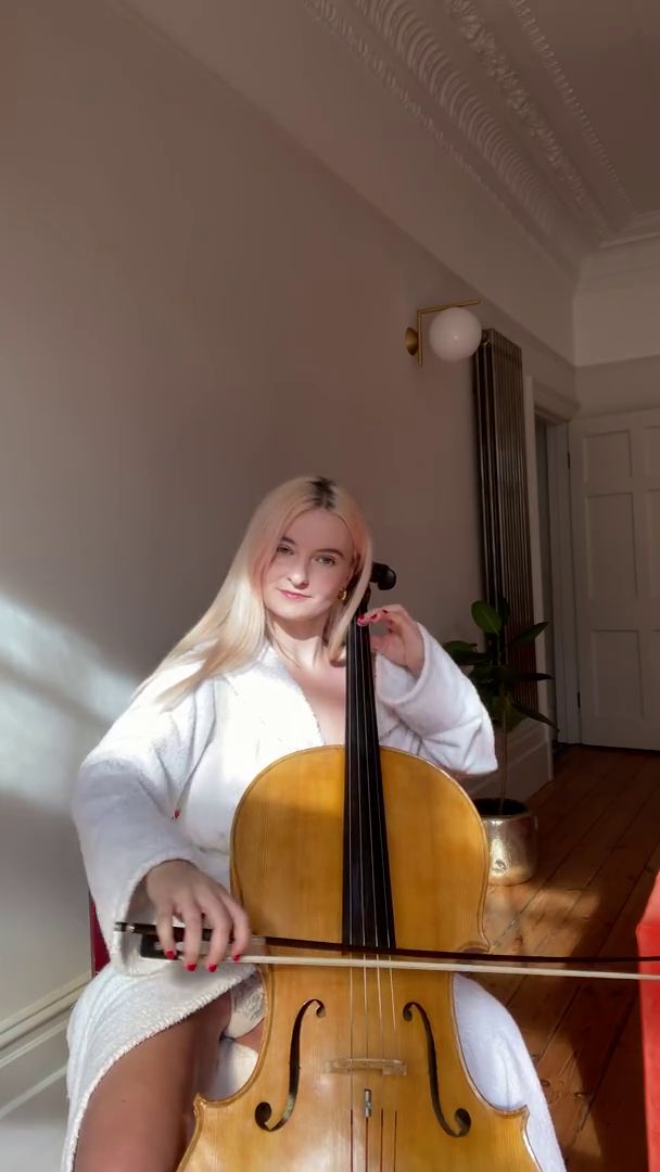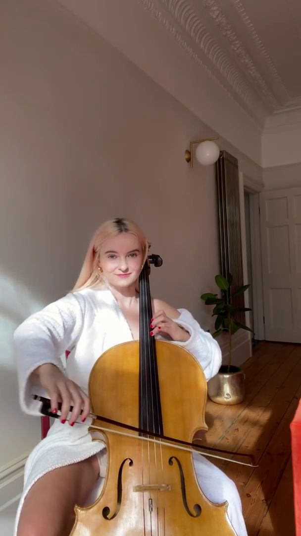 La cantante/músico inglesa Grace Chatto (Clean Bandit) mostró sus bragas blancas mientras tocaba el violonchelo – Instagram, 23/03/2020.