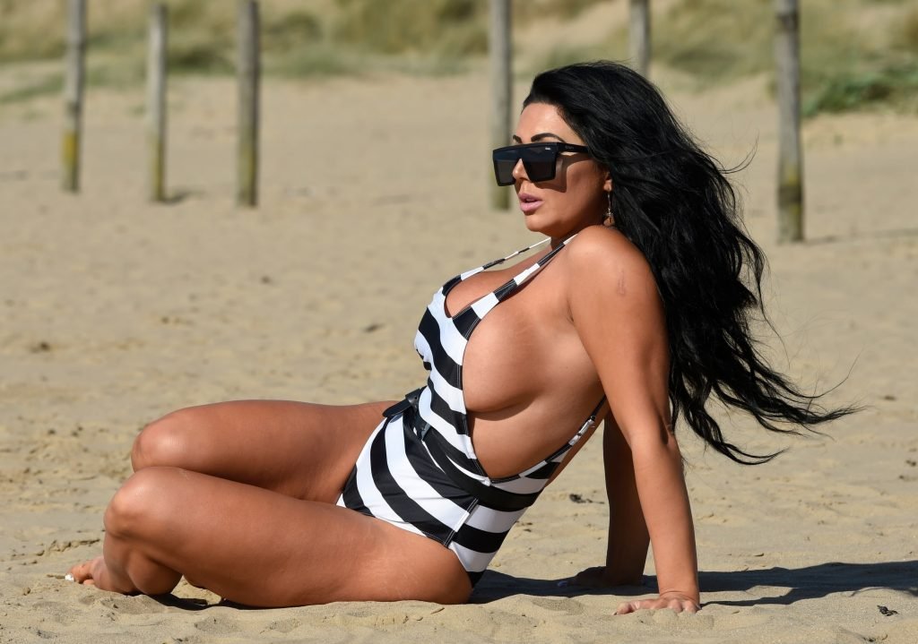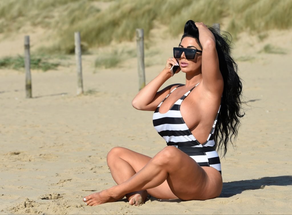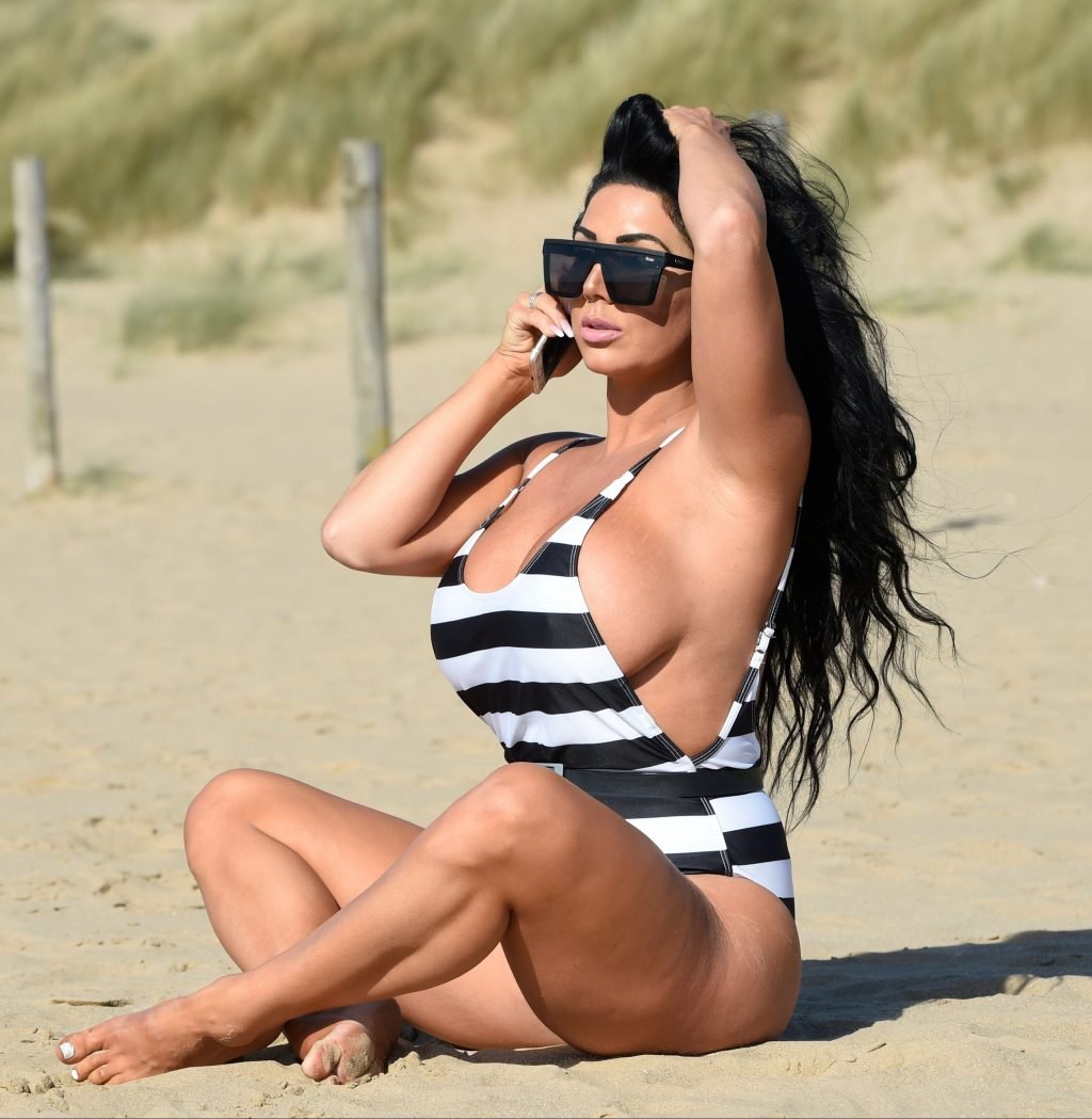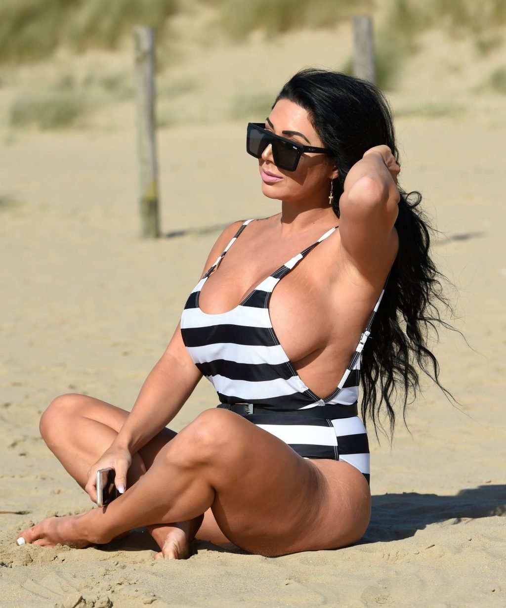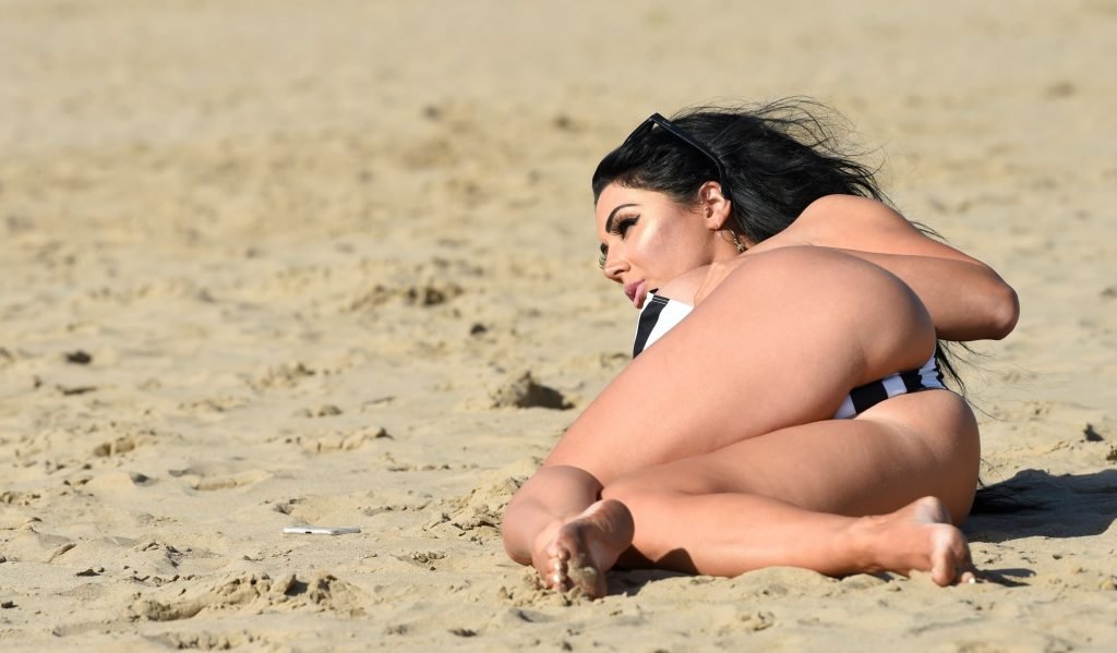 Ganadora del premio Modelo de Glamour del Año 2018, la ardiente morena Grace J Teal ofrece una exhibición muy voluptuosa mientras disfruta de la playa durante sus vacaciones en España, 10/04/2018.