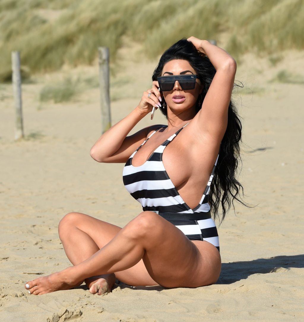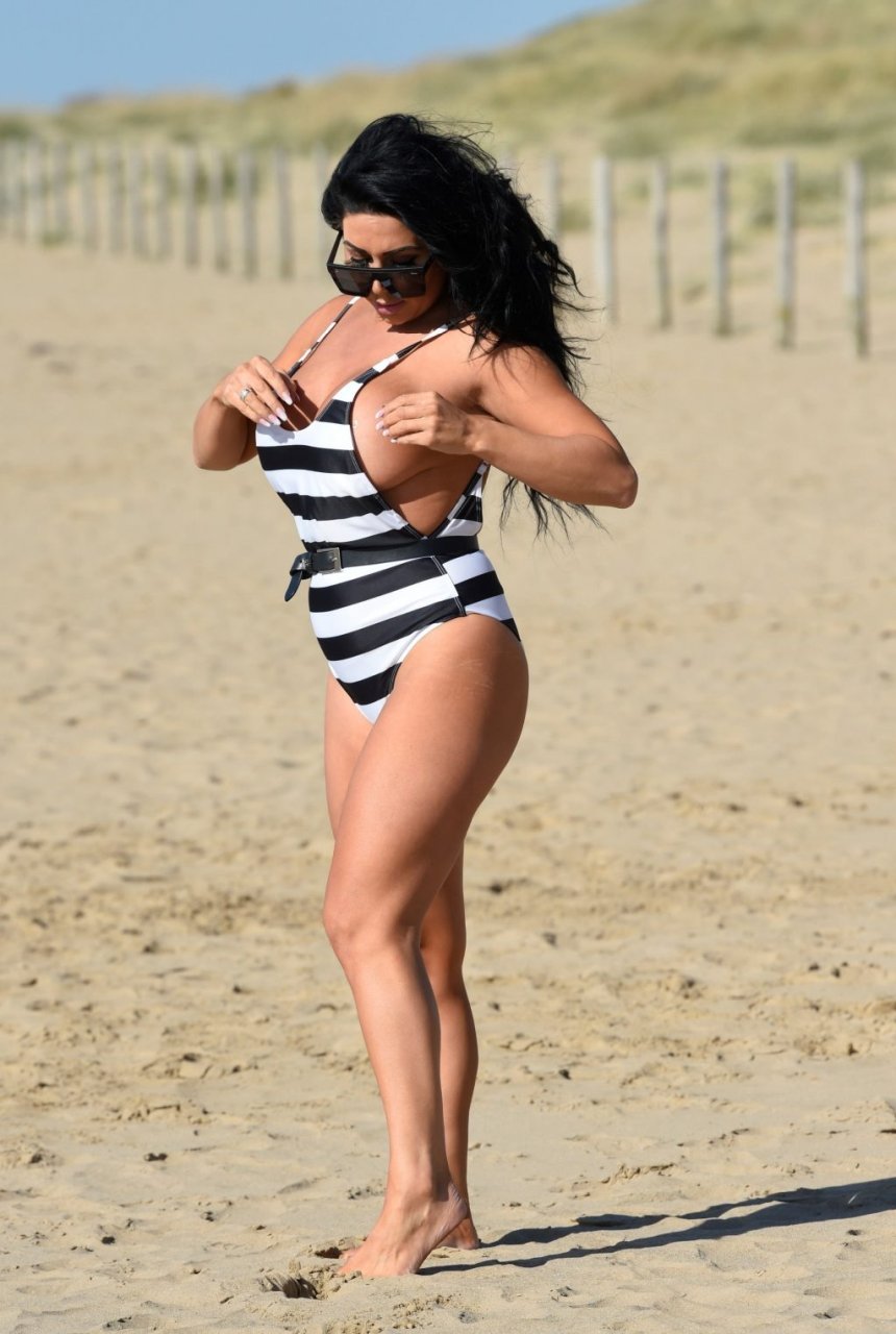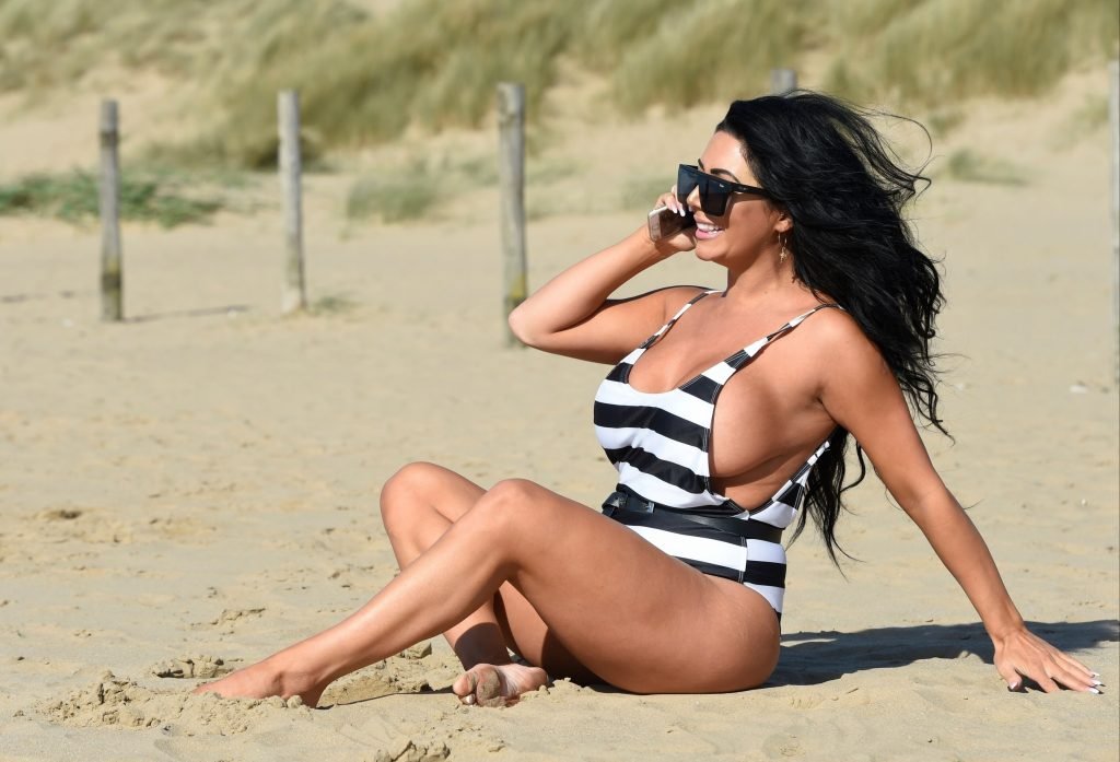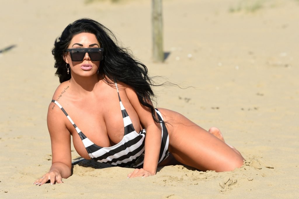 Ganadora del premio Modelo de Glamour del Año 2018, la ardiente morena Grace J Teal ofrece una exhibición muy voluptuosa mientras disfruta de la playa durante sus vacaciones en España, 10/04/2018.