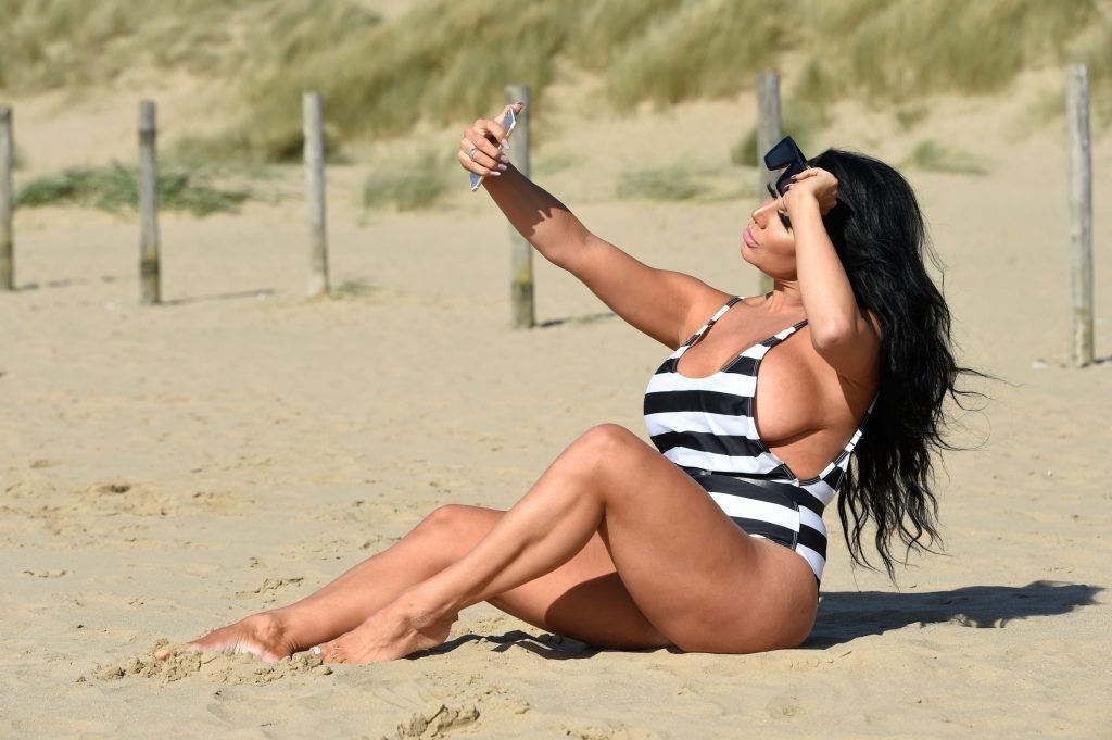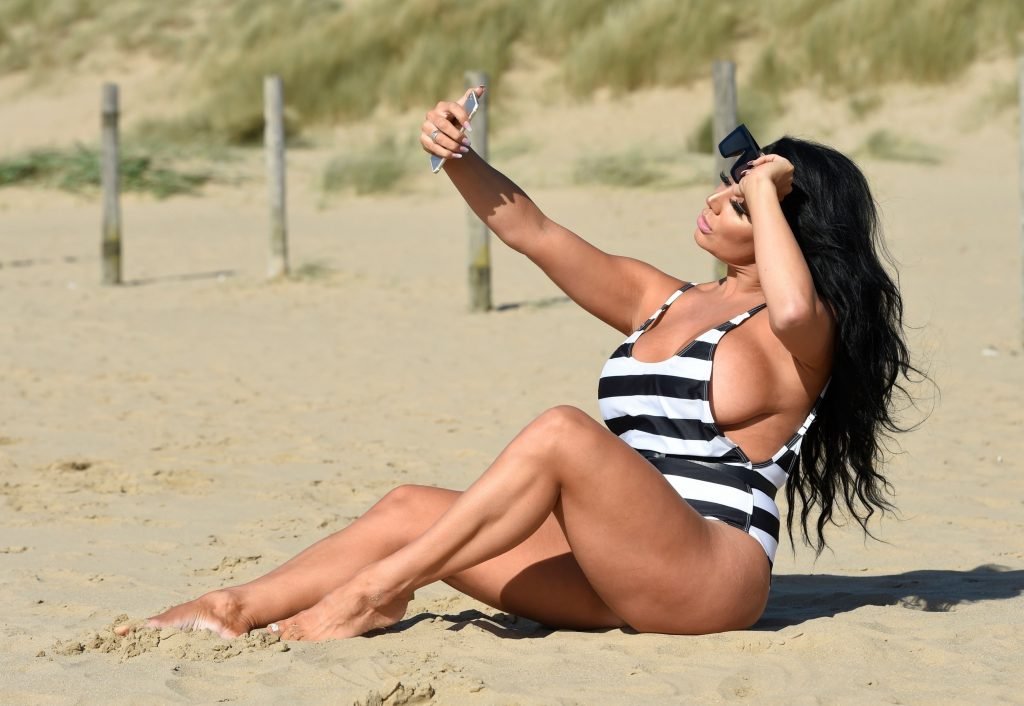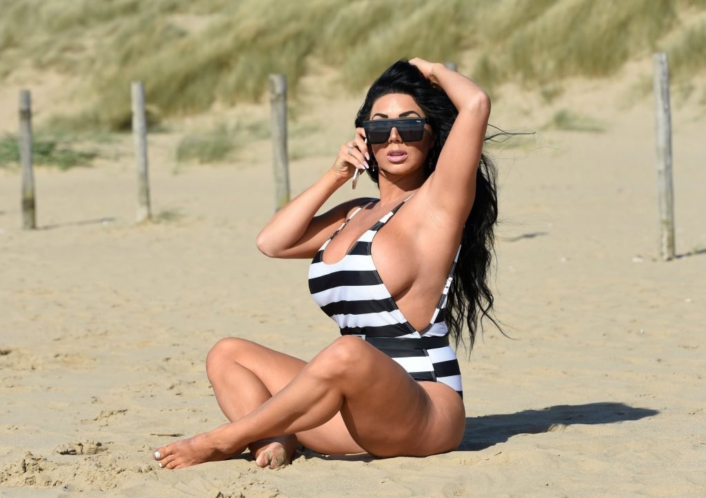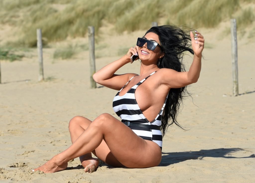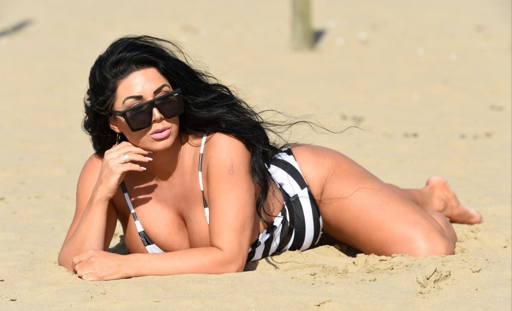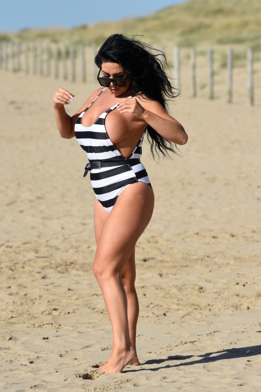 Ganadora del premio Modelo de Glamour del Año 2018, la ardiente morena Grace J Teal ofrece una exhibición muy voluptuosa mientras disfruta de la playa durante sus vacaciones en España, 10/04/2018.