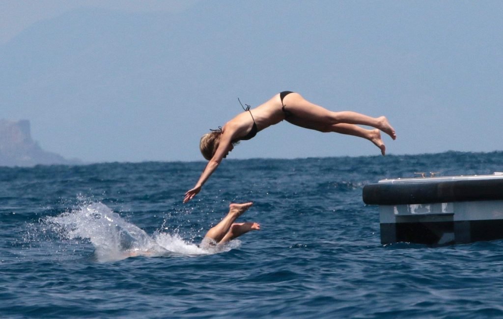 El fin de semana pasado, los enamorados fueron a la isla italiana. Descansaron en un yate de lujo con el fundador de la casa de moda Valentino, Valentino Garavani, y su colega Giancarlo Giametti.