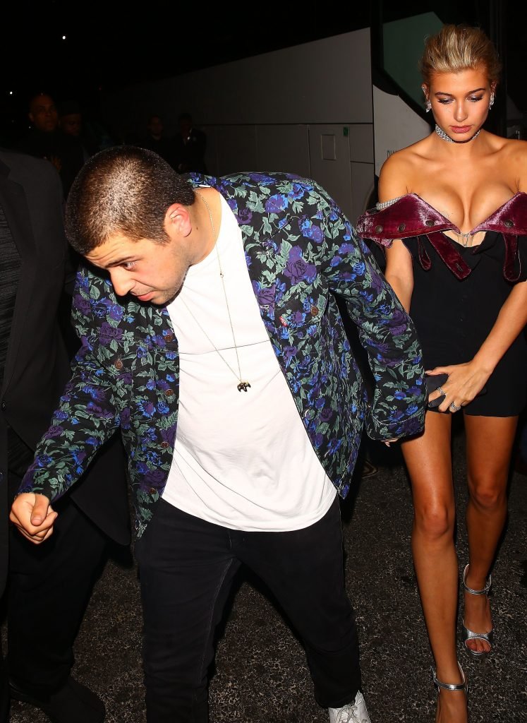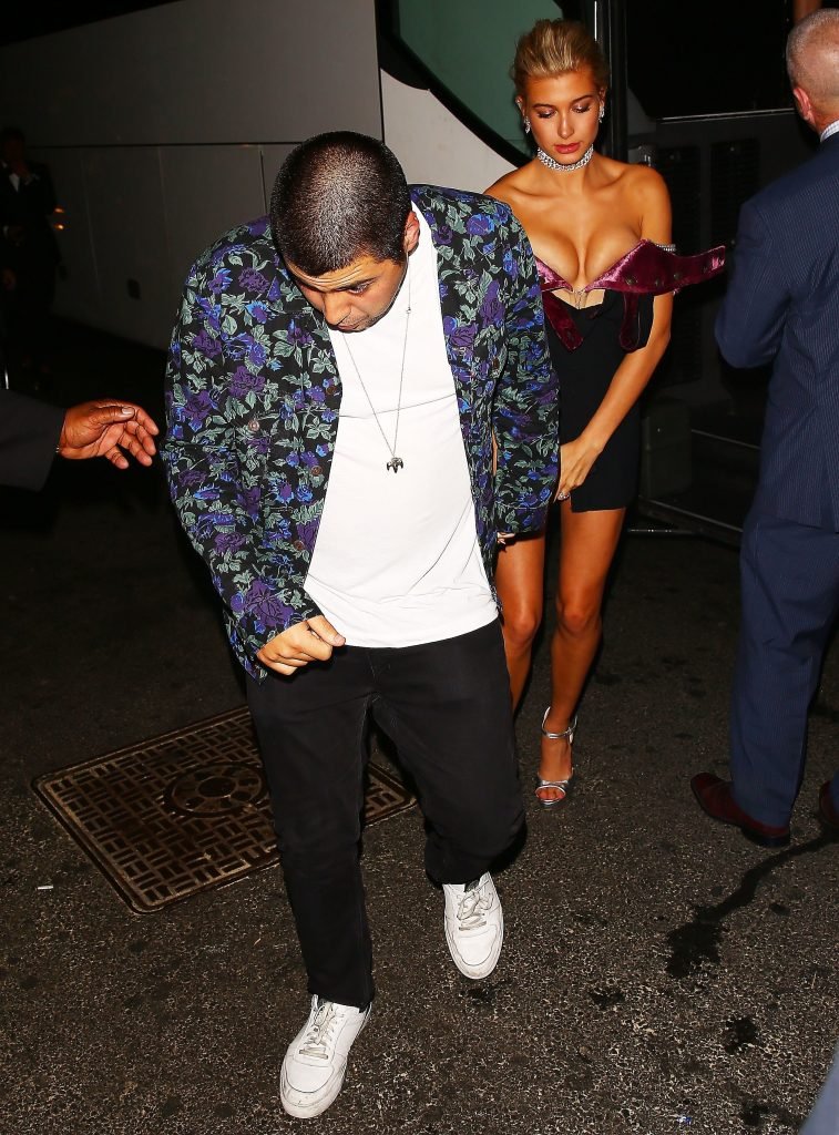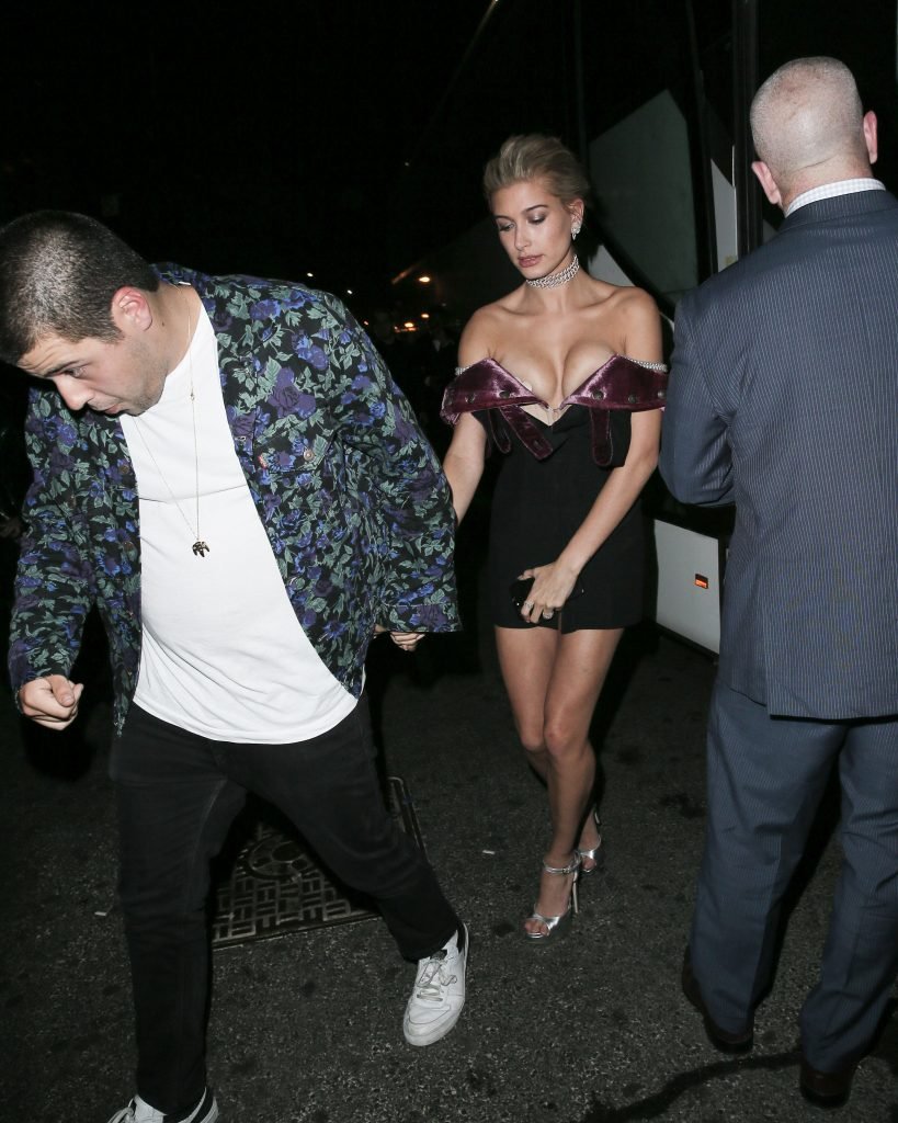 Hailey Baldwin se toma de la mano con su novio mientras se dirige a la fiesta posterior al Met Gala en el club nocturno 1 Oak en NYC, 02/05/2017. Hailey Baldwin es una modelo de Tucson (EE.UU.). Edad – 20 años (22 de noviembre de 1996).