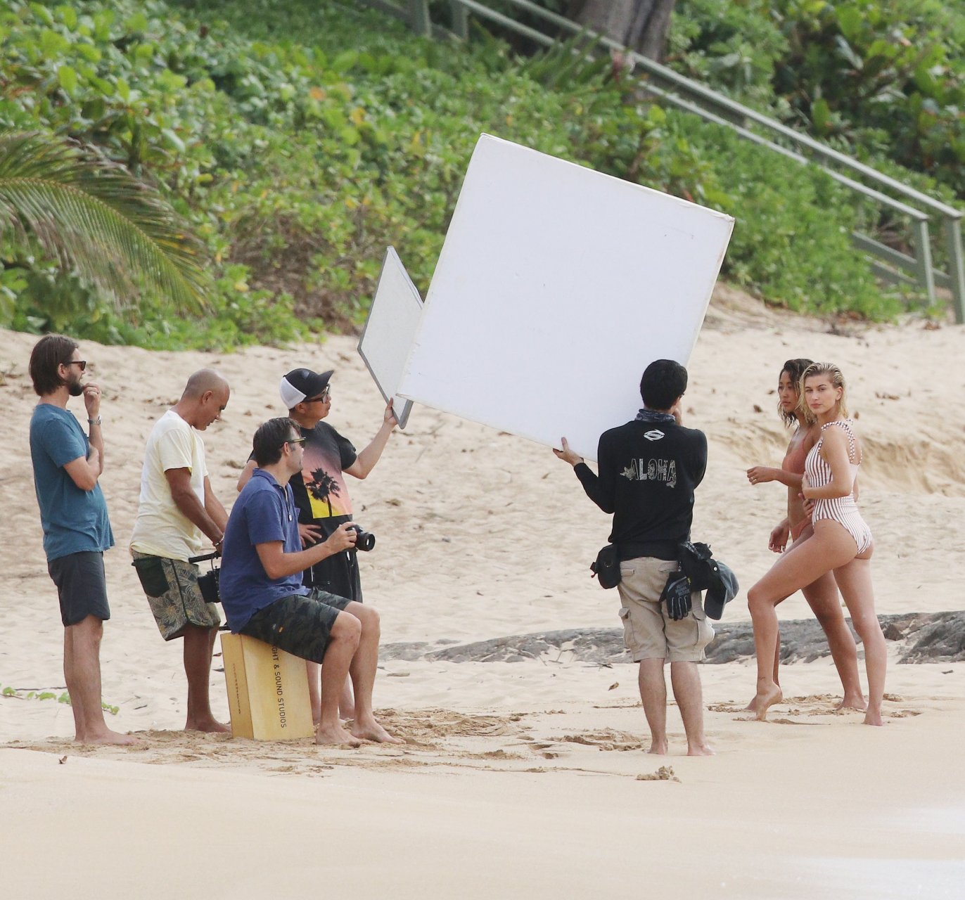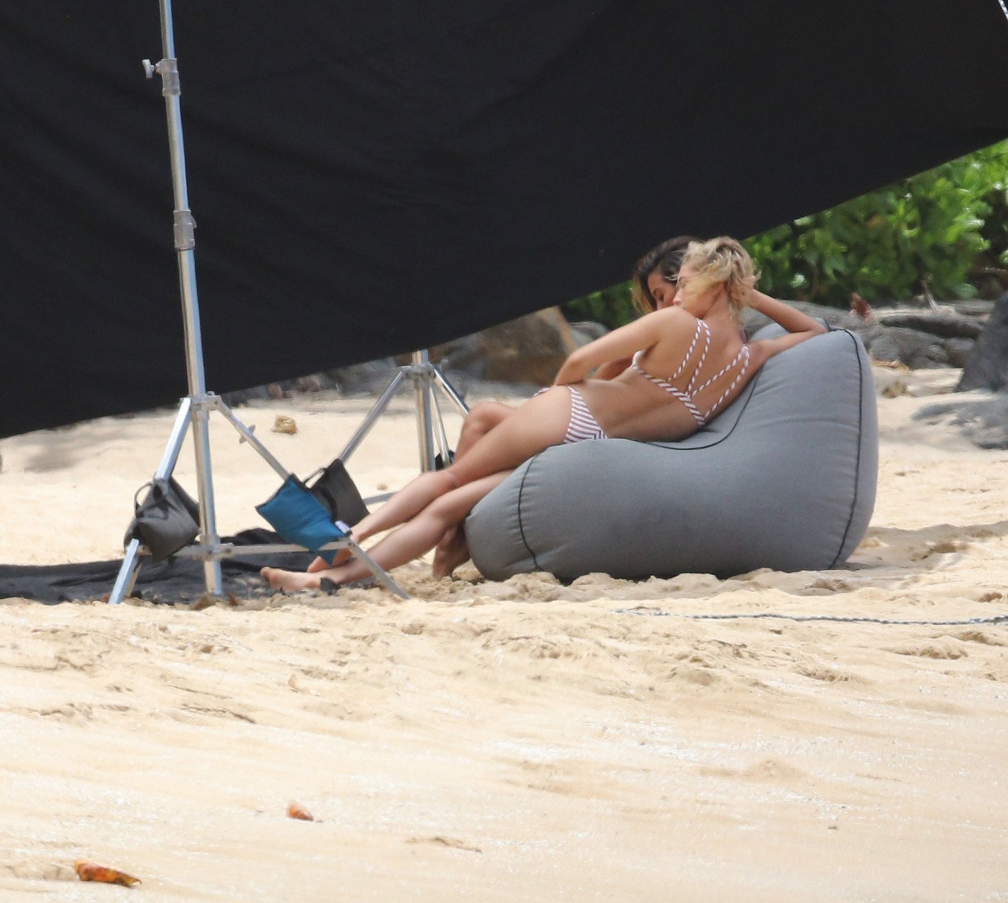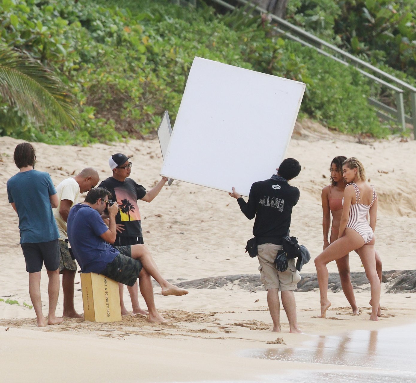 Hailey Baldwin deslumbra en la playa en Hawái, 31/05/2018. La modelo de moda de 21 años pasó de un bikini de una pieza a rayas a un traje de baño de dos piezas y estuvo acompañada por otra modelo en algunas partes de la sesión.
