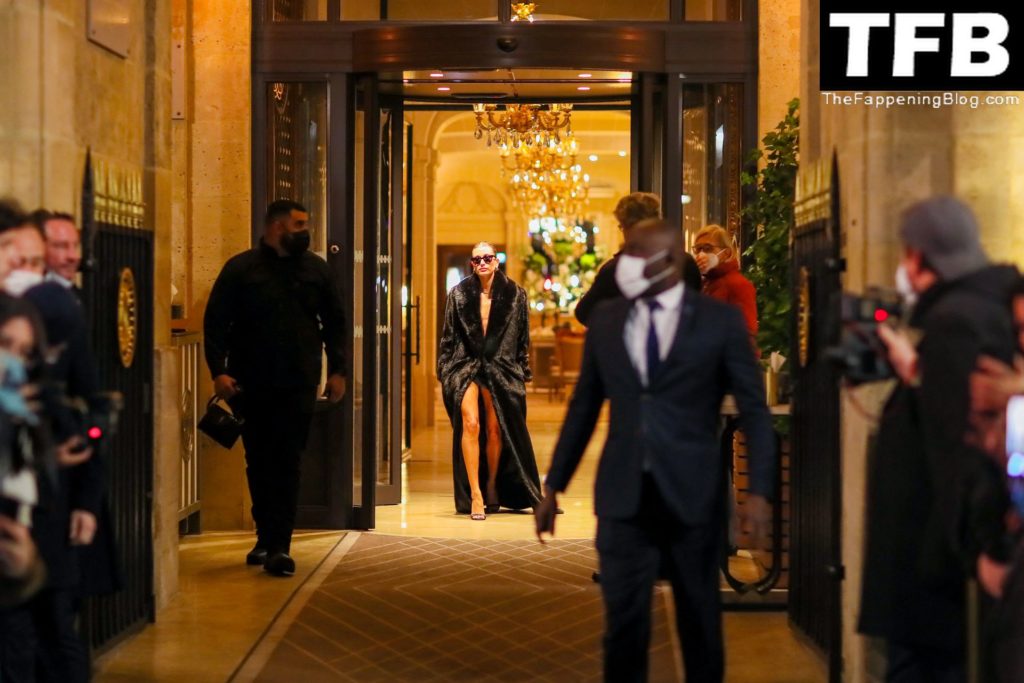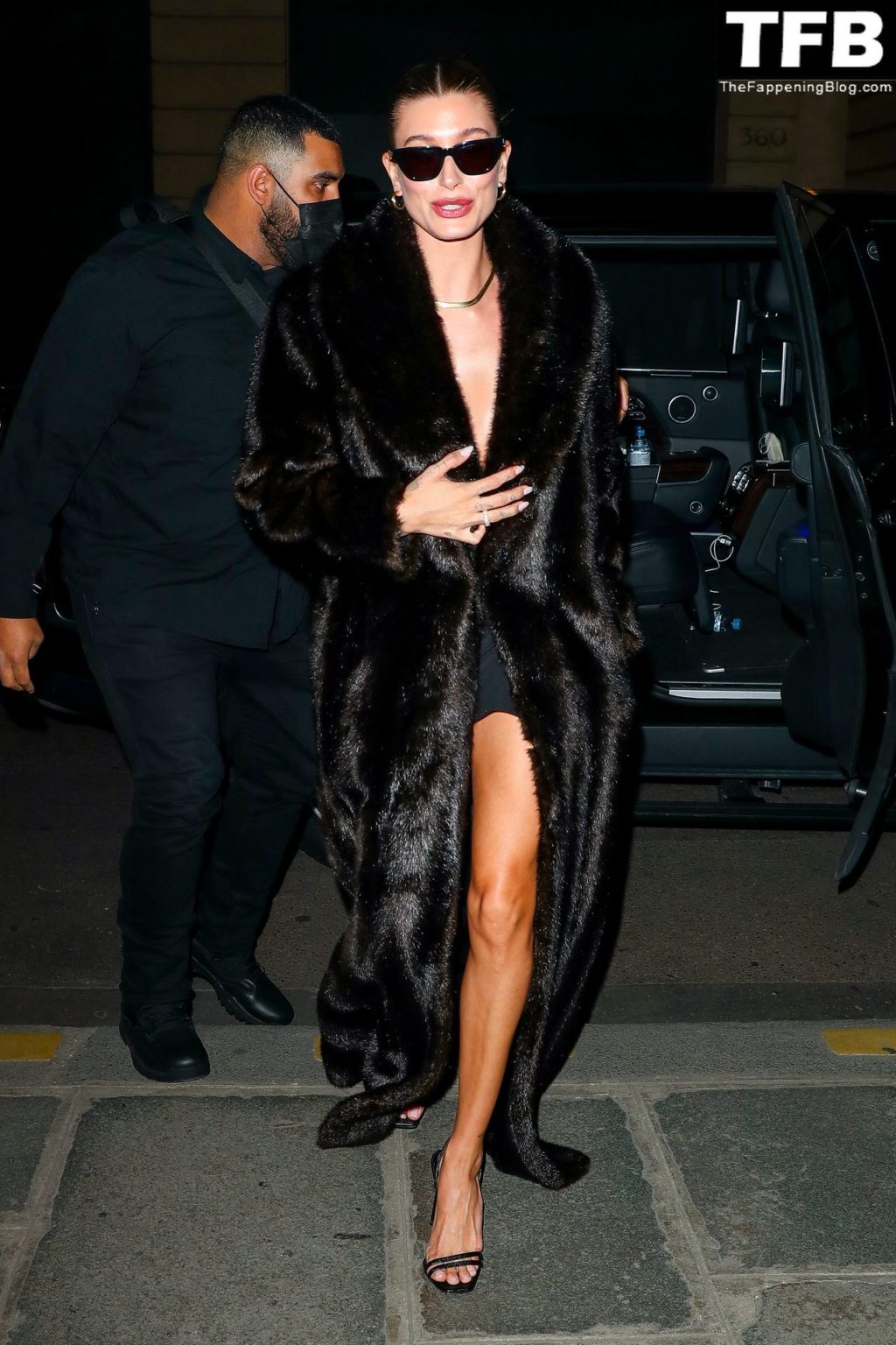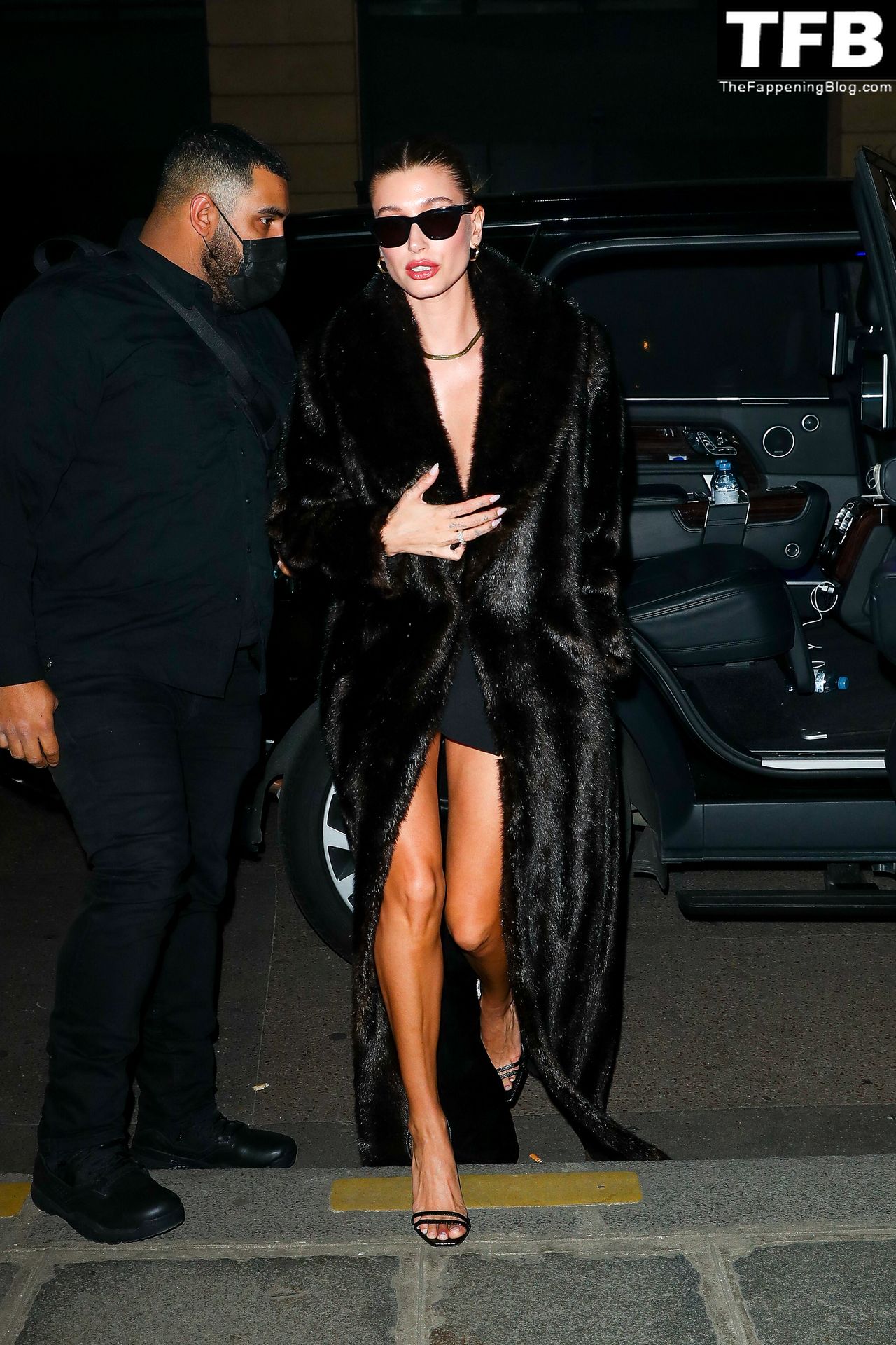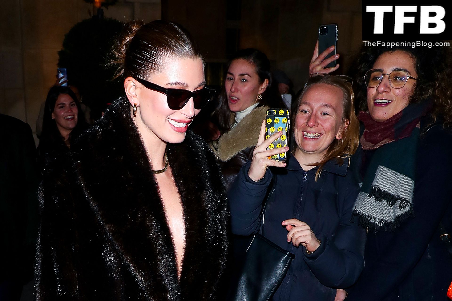 Modelo Hailey Bieber Baldwin sale del Hotel de Crillon y llega al restaurante Le Costes durante la Semana de la Moda de París en París, Francia, 03/04/2022.