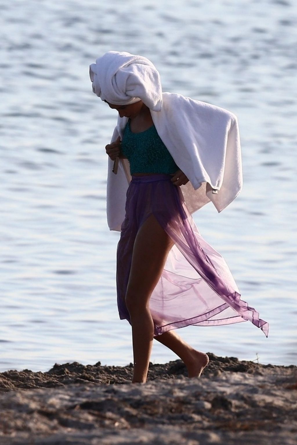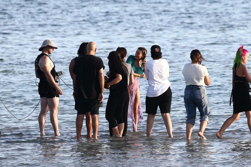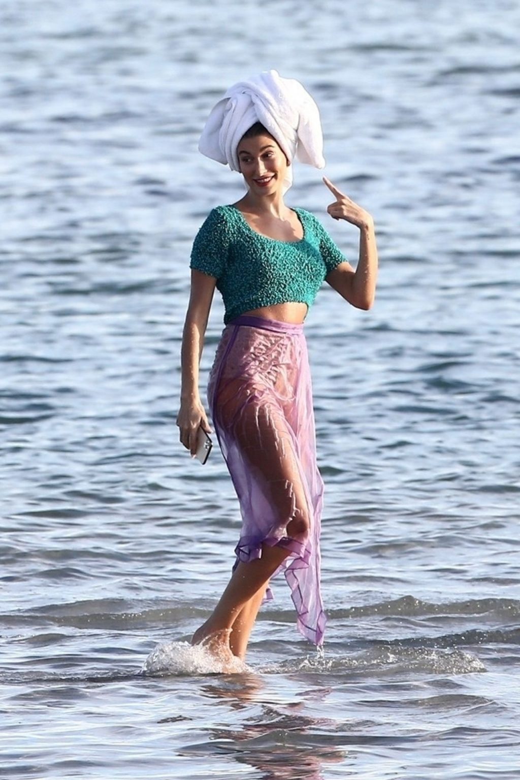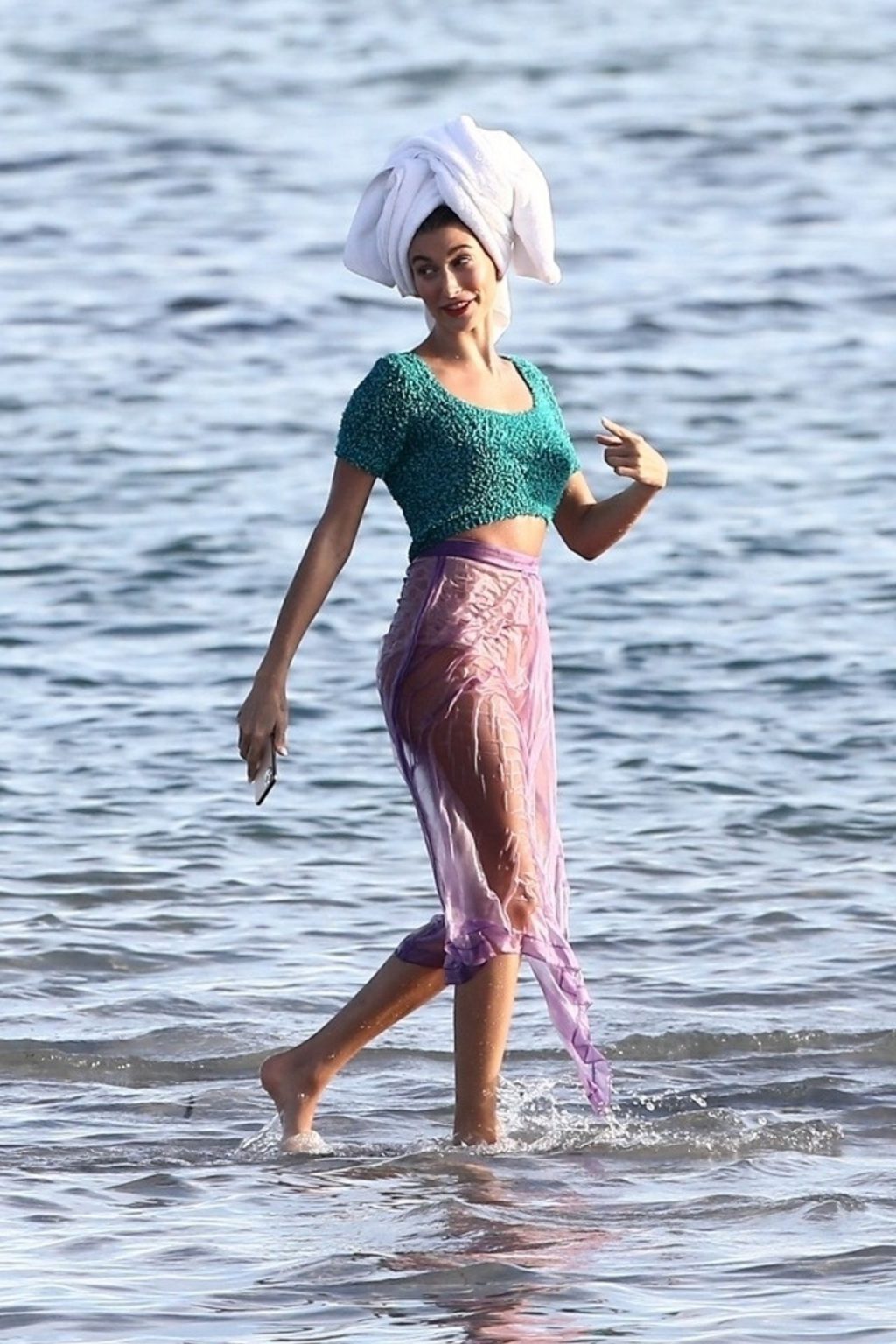 Justin Bieber visita a su esposa Hailey Bieber en Miami mientras la supermodelo se ocupa durante una sesión de fotos junto a la playa, 27/11/2019.