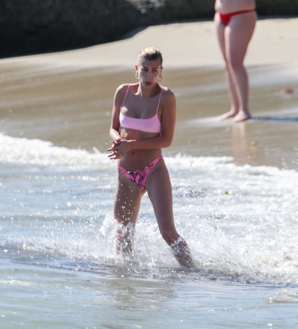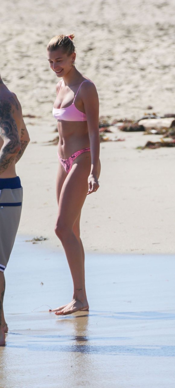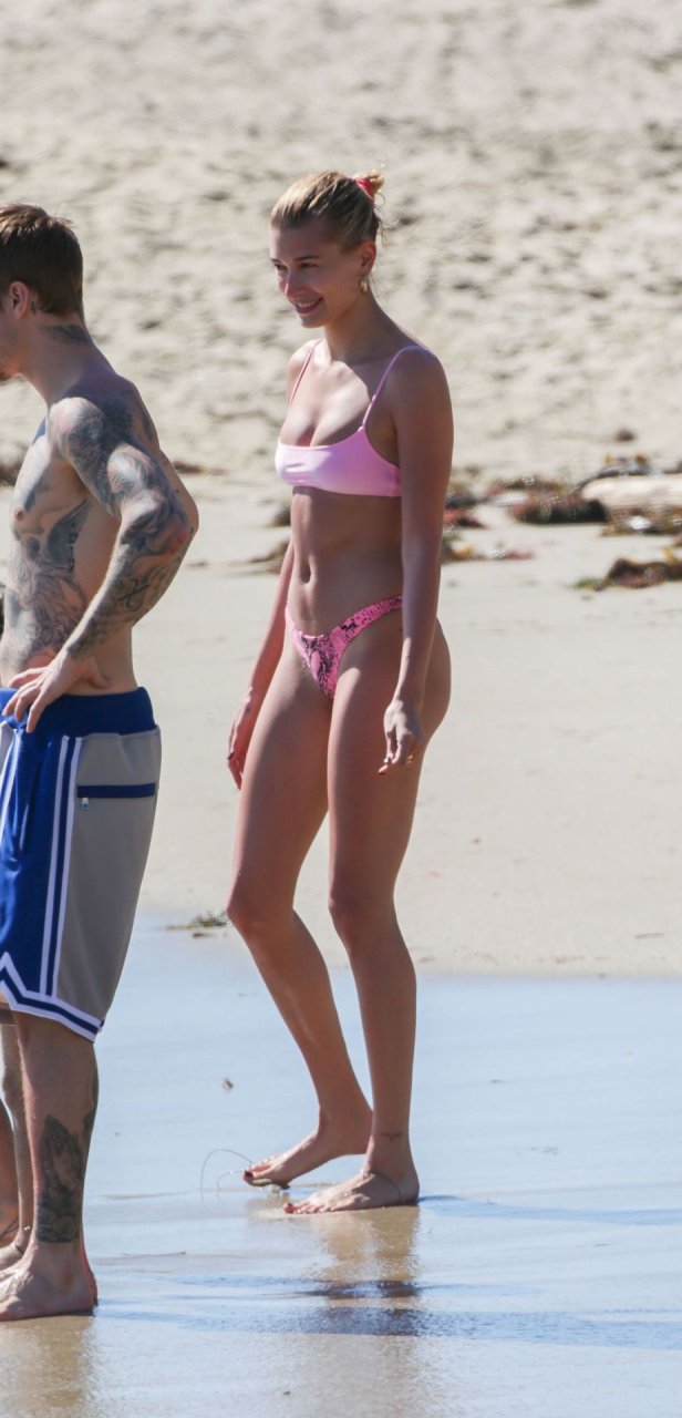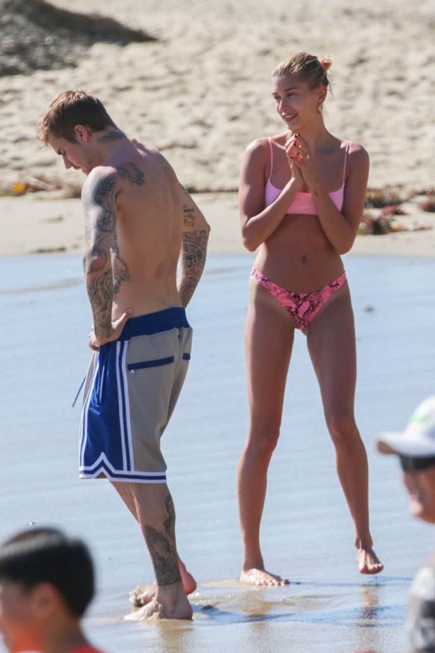 Justin Bieber y su esposa Hailey Baldwin están disfrutando de su día al sol, 17/03/2019. La pareja con problemas está dejando atrás sus preocupaciones mientras van a la playa y se reconectan tras el tratamiento de Bieber por depresión. Un Bieber con barba mostró sus tatuajes y sus abdominales marcados, mientras que la modelo Hailey estaba linda en rosa con un bikini diminuto.