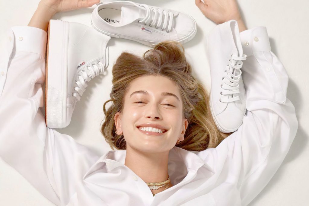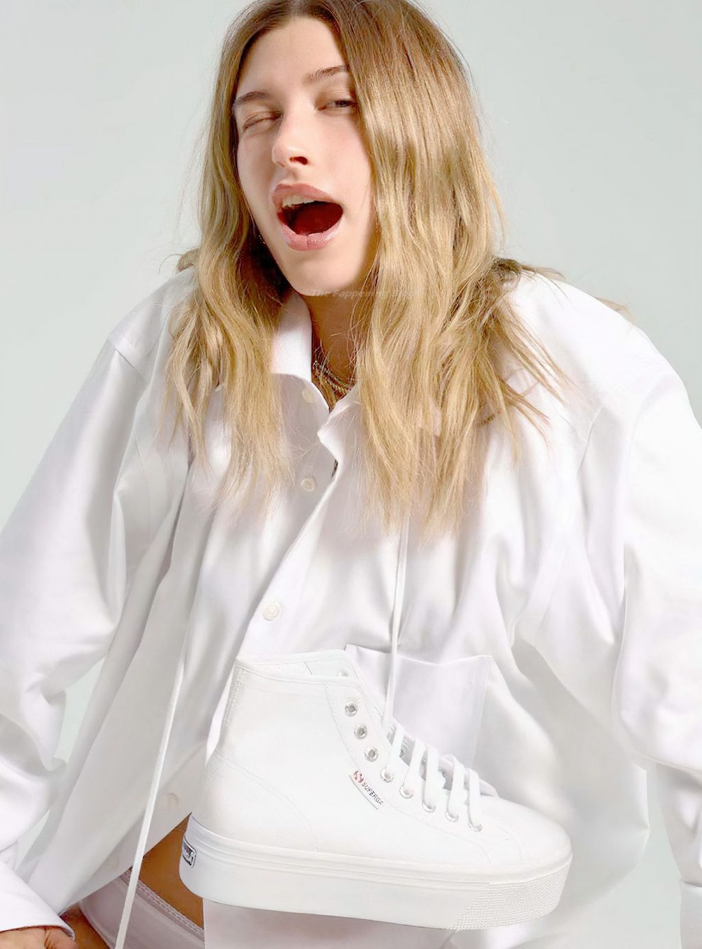 Hailey Bieber (Baldwin) posa en una nueva sesión fotográfica promocional realizada por Stevie Dance para la colección Primavera / Verano 2021 de Superga.