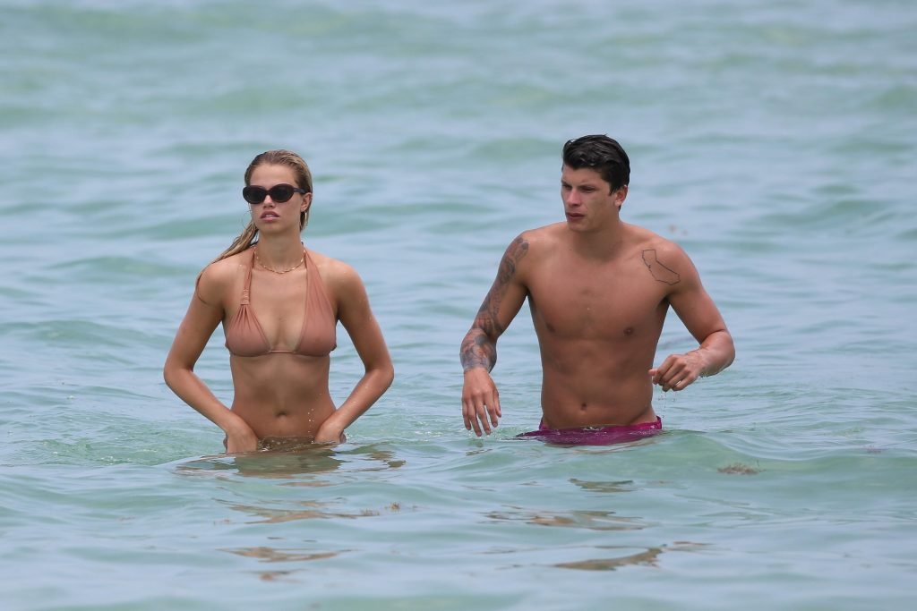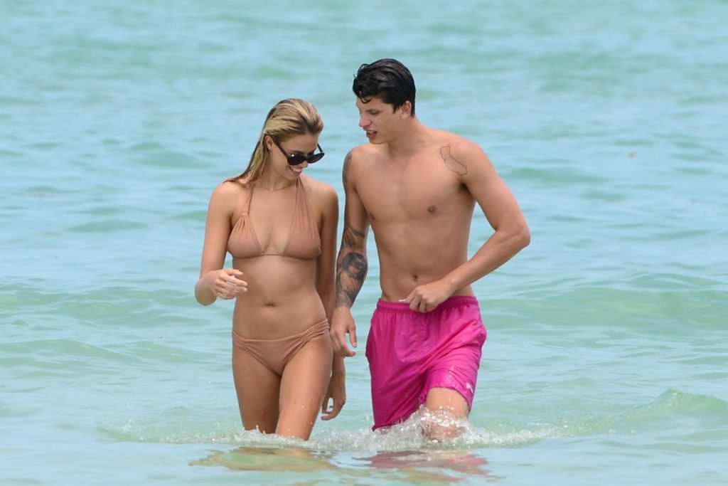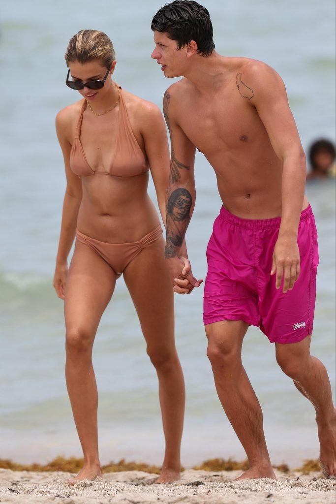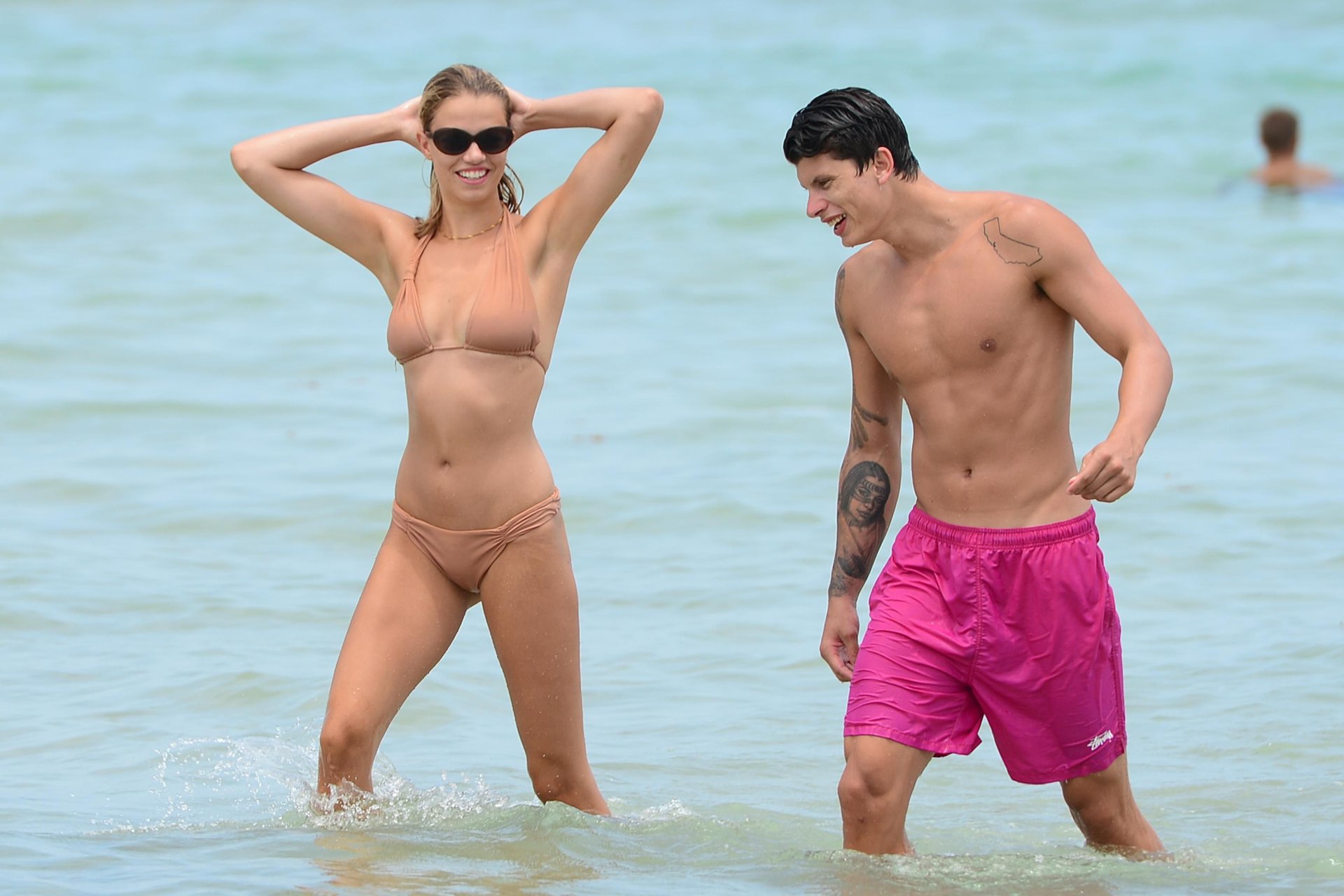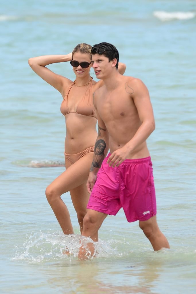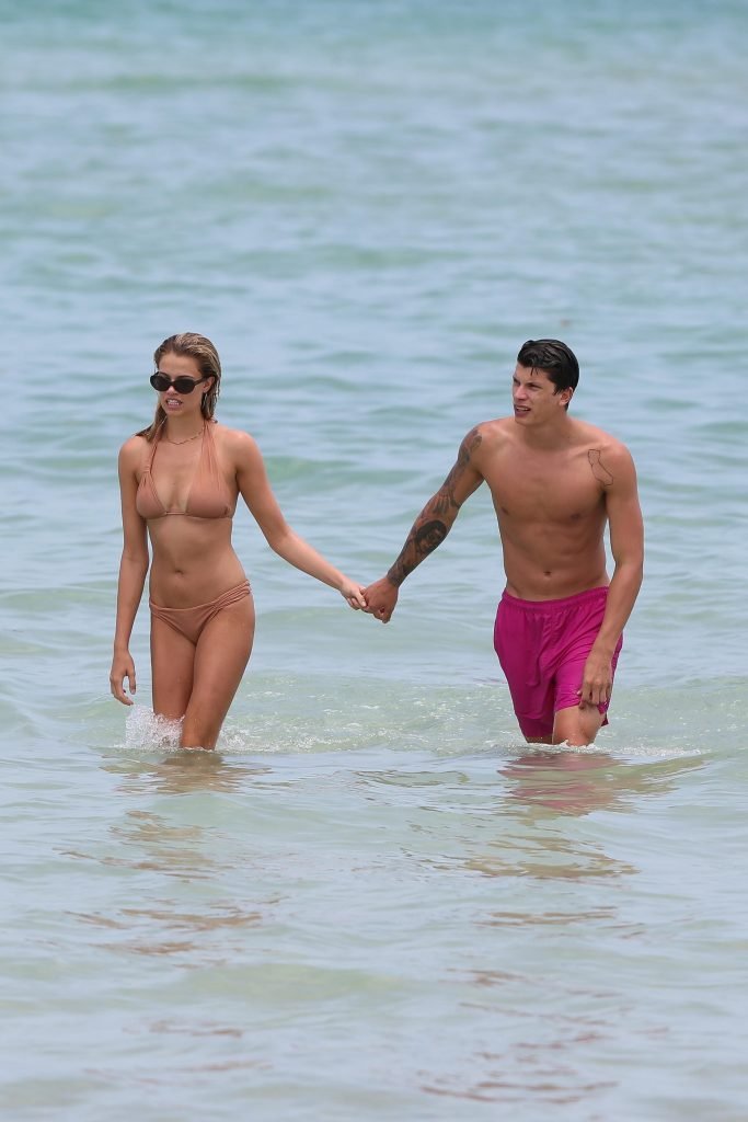 Model Hailey Clauson y su novio Jullien Herrera disfrutan de un día romántico en la playa en Miami Beach, Florida, 22/07/2017.