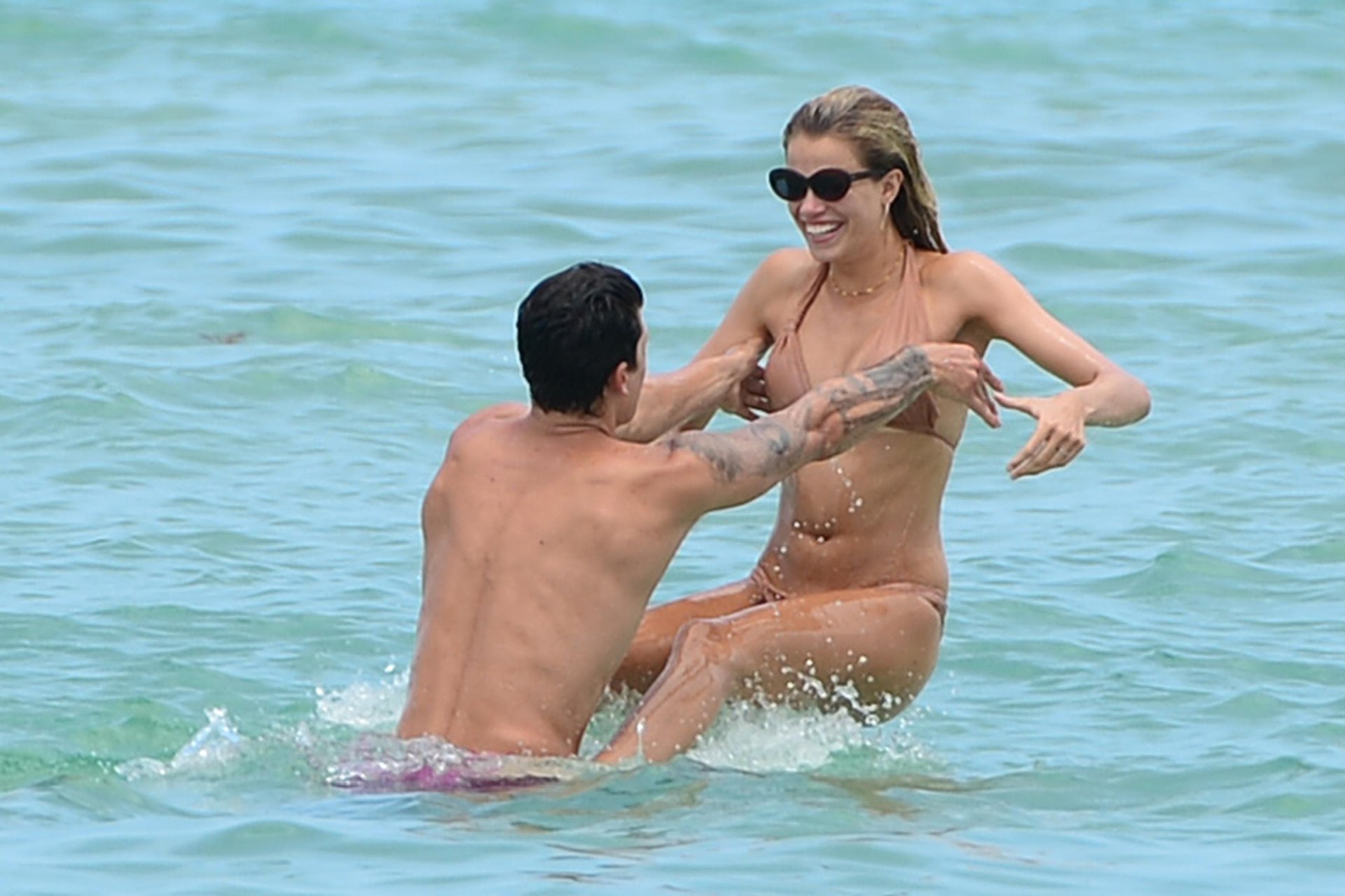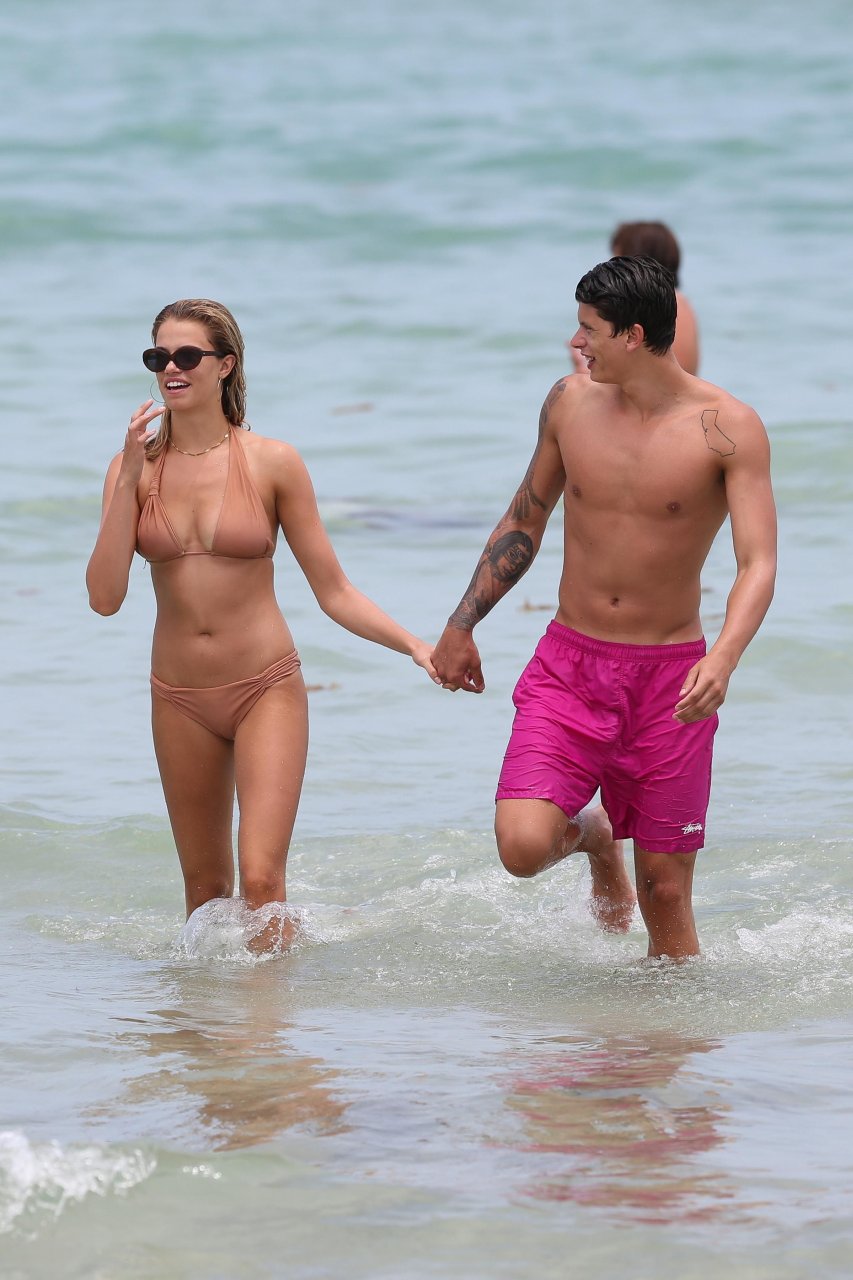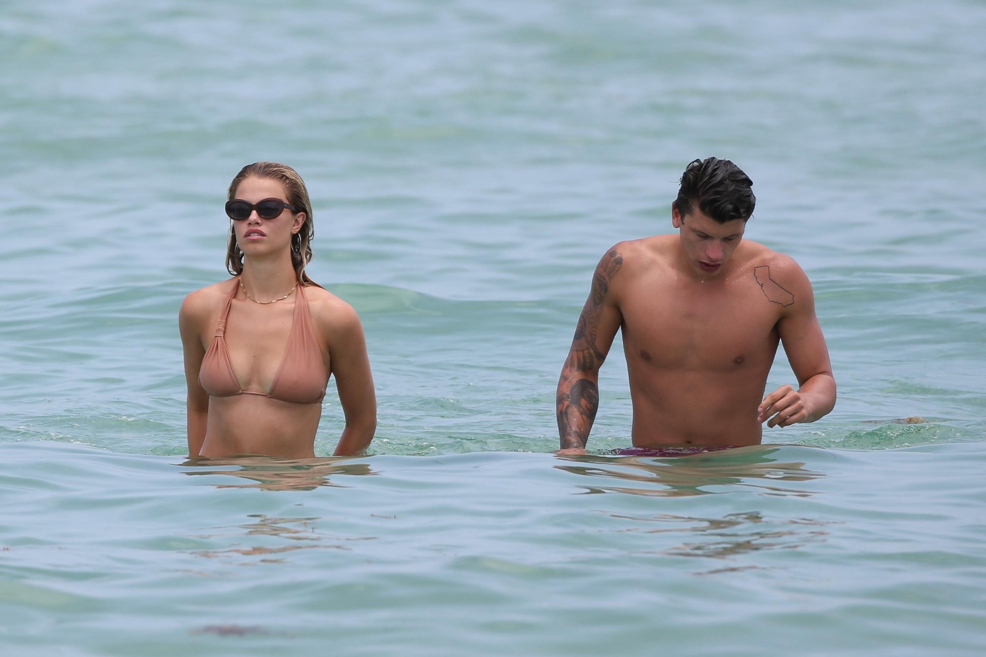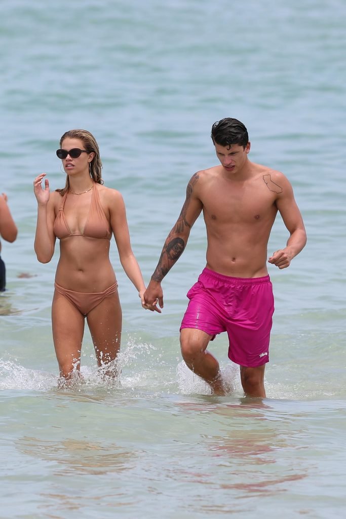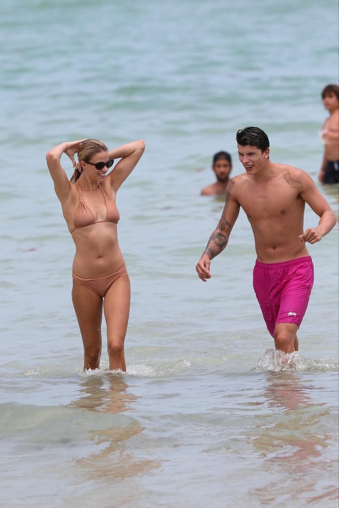 Model Hailey Clauson y su novio Jullien Herrera disfrutan de un día romántico en la playa en Miami Beach, Florida, 22/07/2017.