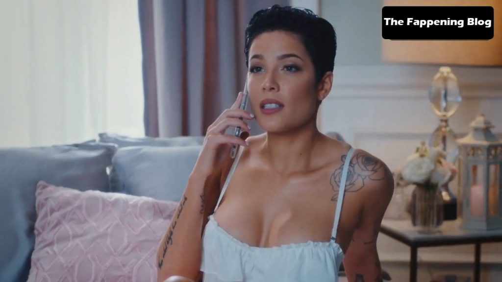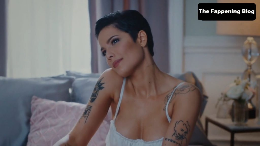 cause we are not aware of what happened yet! Halsey showed her nude tits and the cleavage into the white bra, as she moves her top up. She showed her stomach and sexy figure too. I adore these nipples and lips!