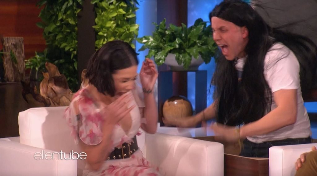 Ellen también le preguntó por su nuevo novio Evan Peters, con quien la joven estrella estuvo en la espeluznante velada antes de hacer su debut como pareja en la alfombra roja al día siguiente. Pero antes de que Halsey pudiera decir mucho sobre su nuevo amor, fue víctima del clásico susto de Ellen cuando un hombre salió de la mesa de café junto a ella, haciéndola gritar. “Me distrajiste con la pregunta del novio. No estaba lista”, dijo, confirmando que está saliendo con Peters, estrella de American Horror Story.