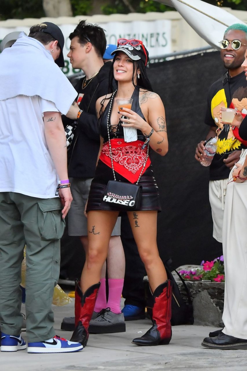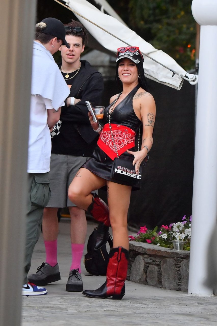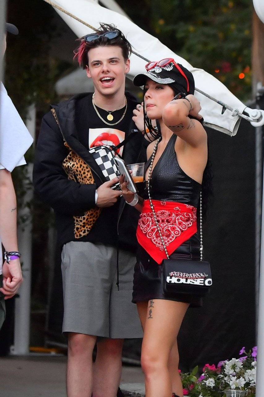 Halsey, que llevaba un vestido de cuero y botas vaqueras, fue vista abrazando y besando a su novio. También se le vio con un anillo en el dedo de compromiso. La pareja fue vista sentada en el área VIP, tomando bebidas y conversando con amigos.