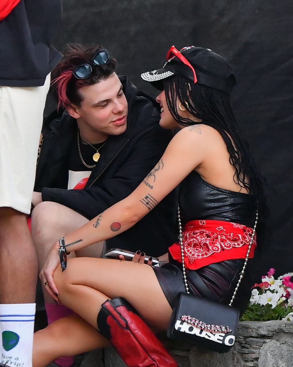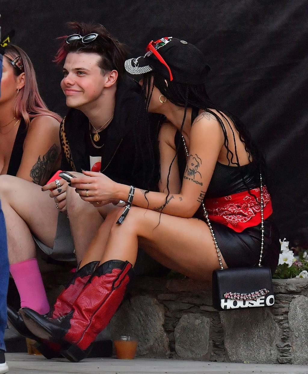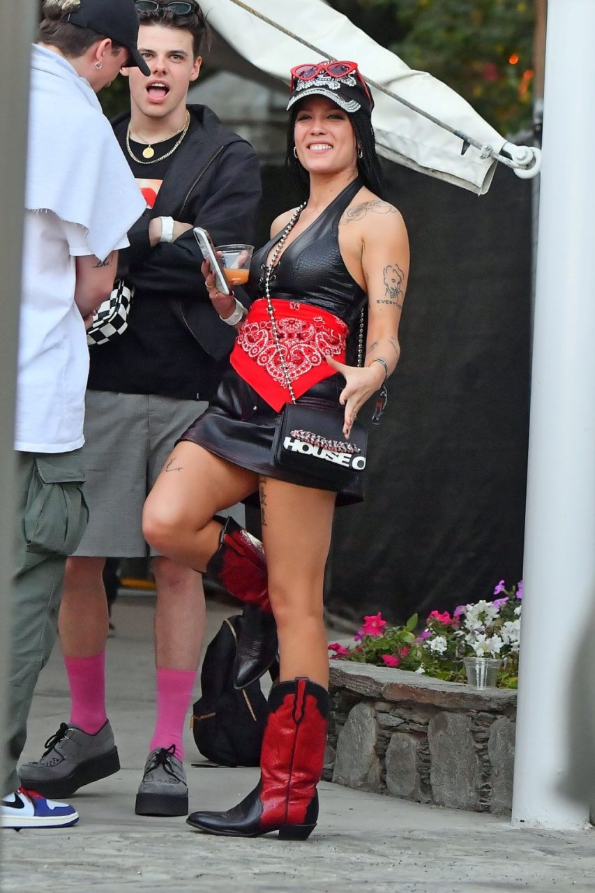 Halsey, que llevaba un vestido de cuero y botas vaqueras, fue vista abrazando y besando a su novio. También se le vio con un anillo en el dedo de compromiso. La pareja fue vista sentada en el área VIP, tomando bebidas y conversando con amigos.