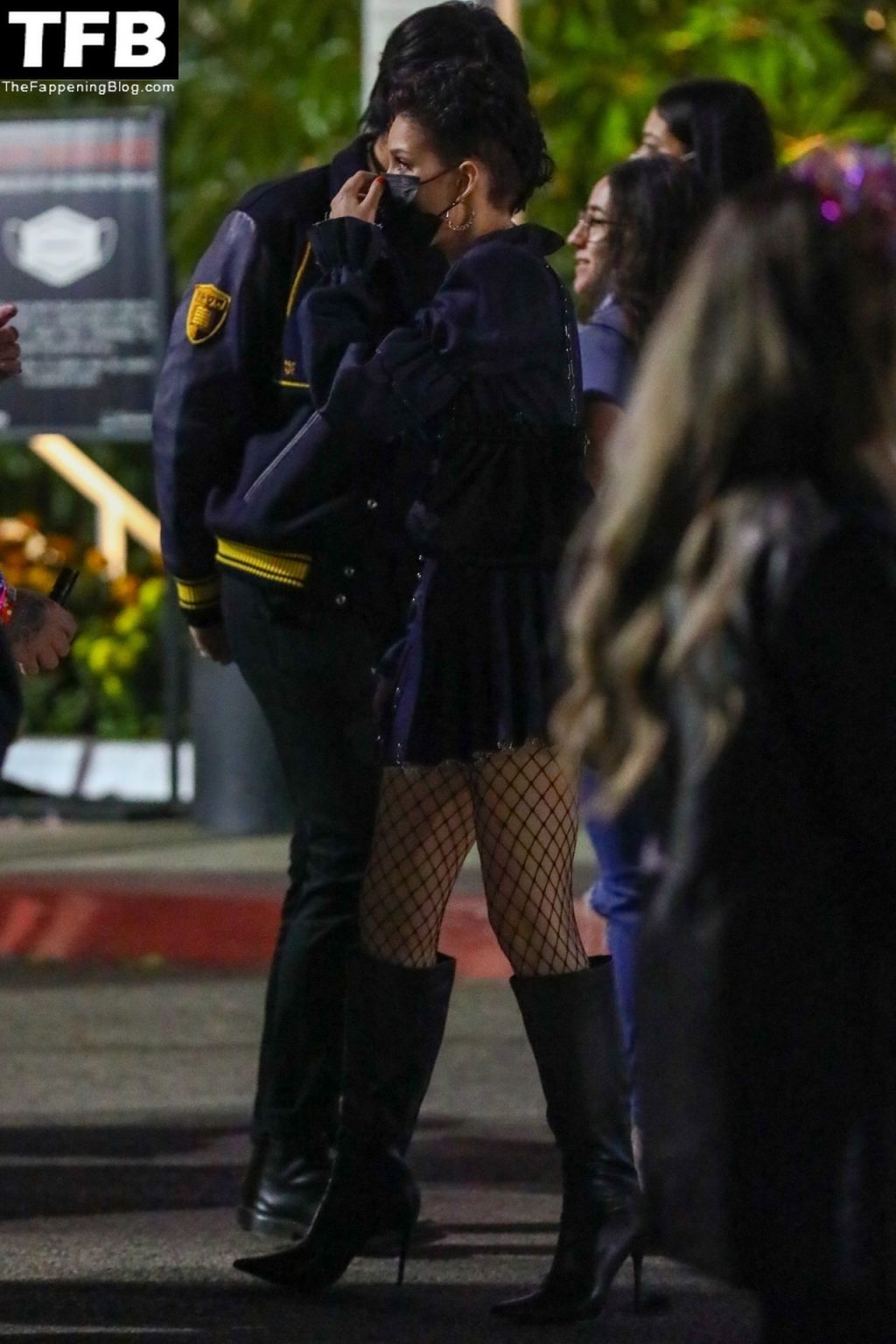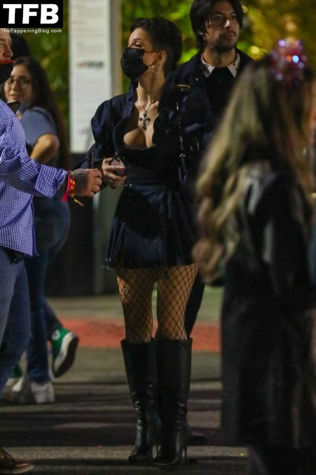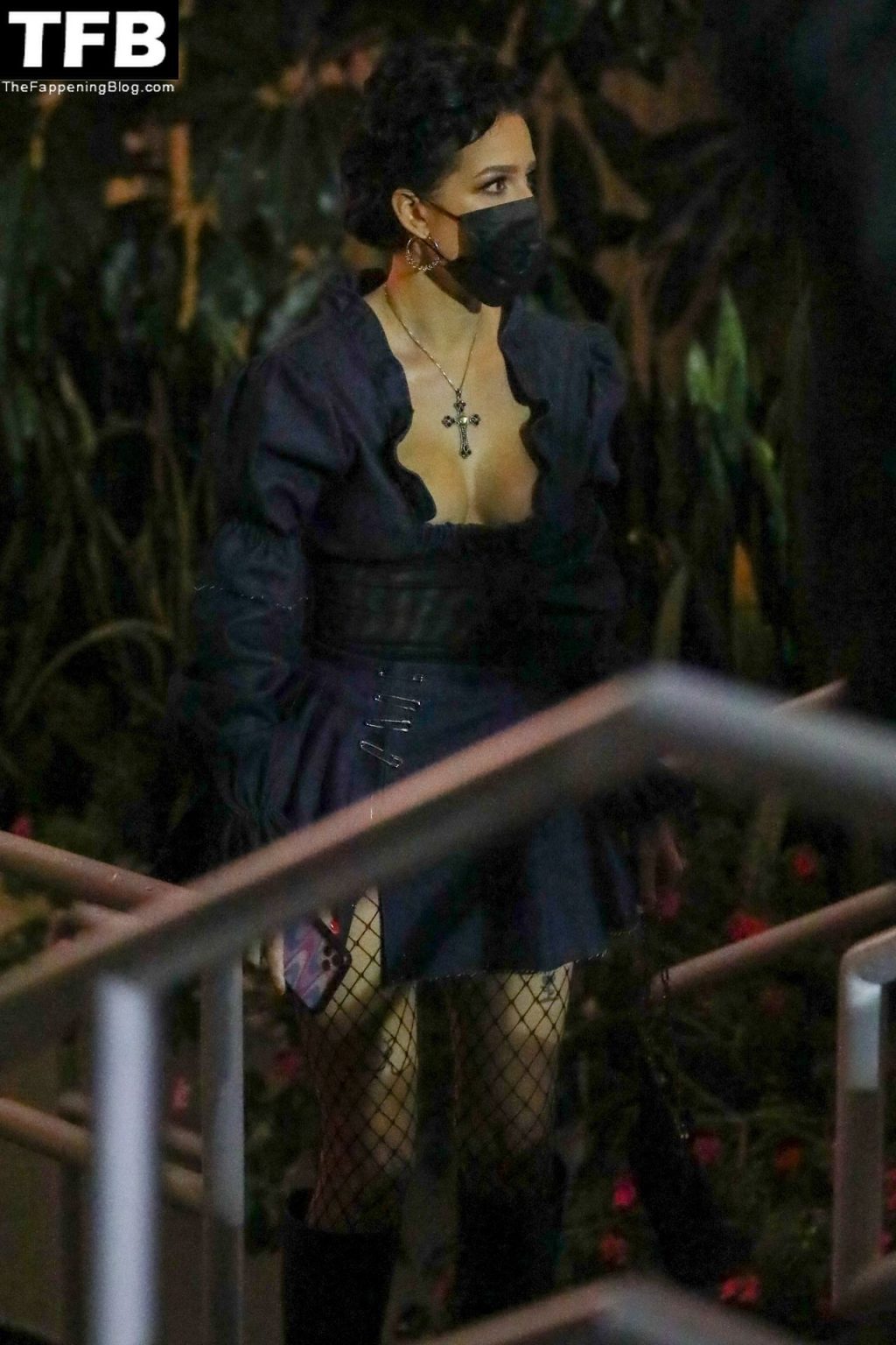 La cantante Halsey impacta con un atuendo totalmente negro en el concierto Love On Tour de Harry Styles en The Forum en Los Ángeles, 21/11/2021.