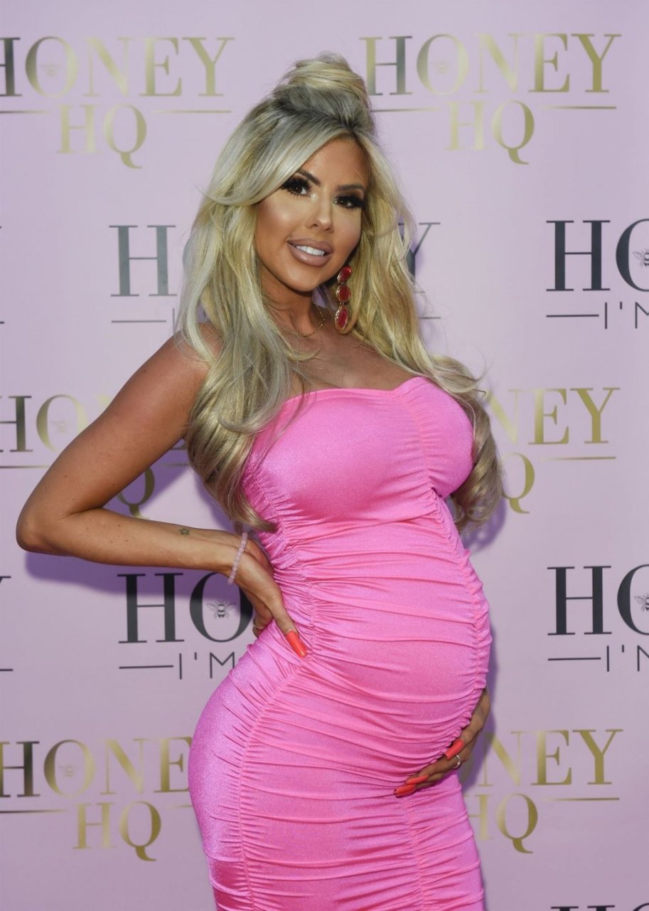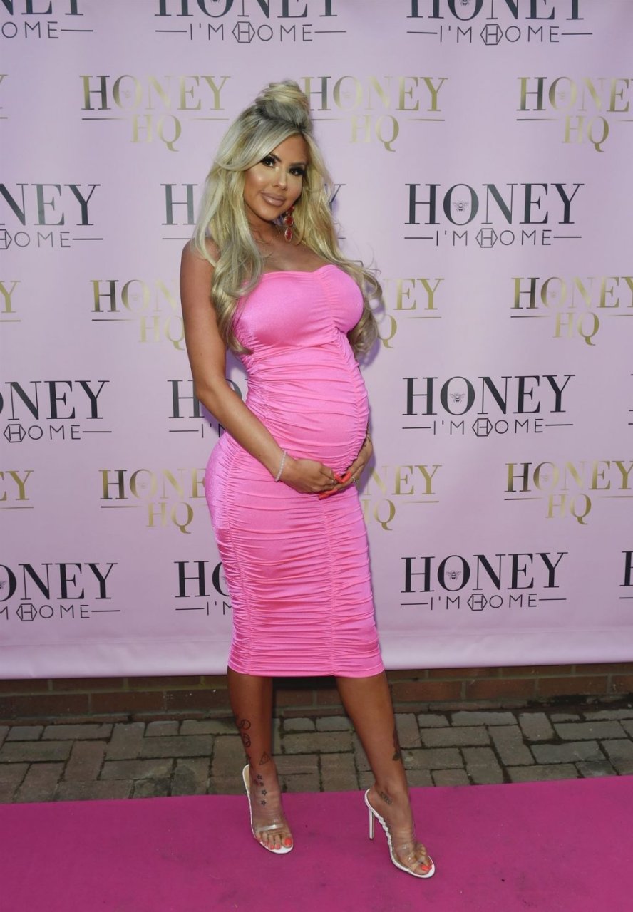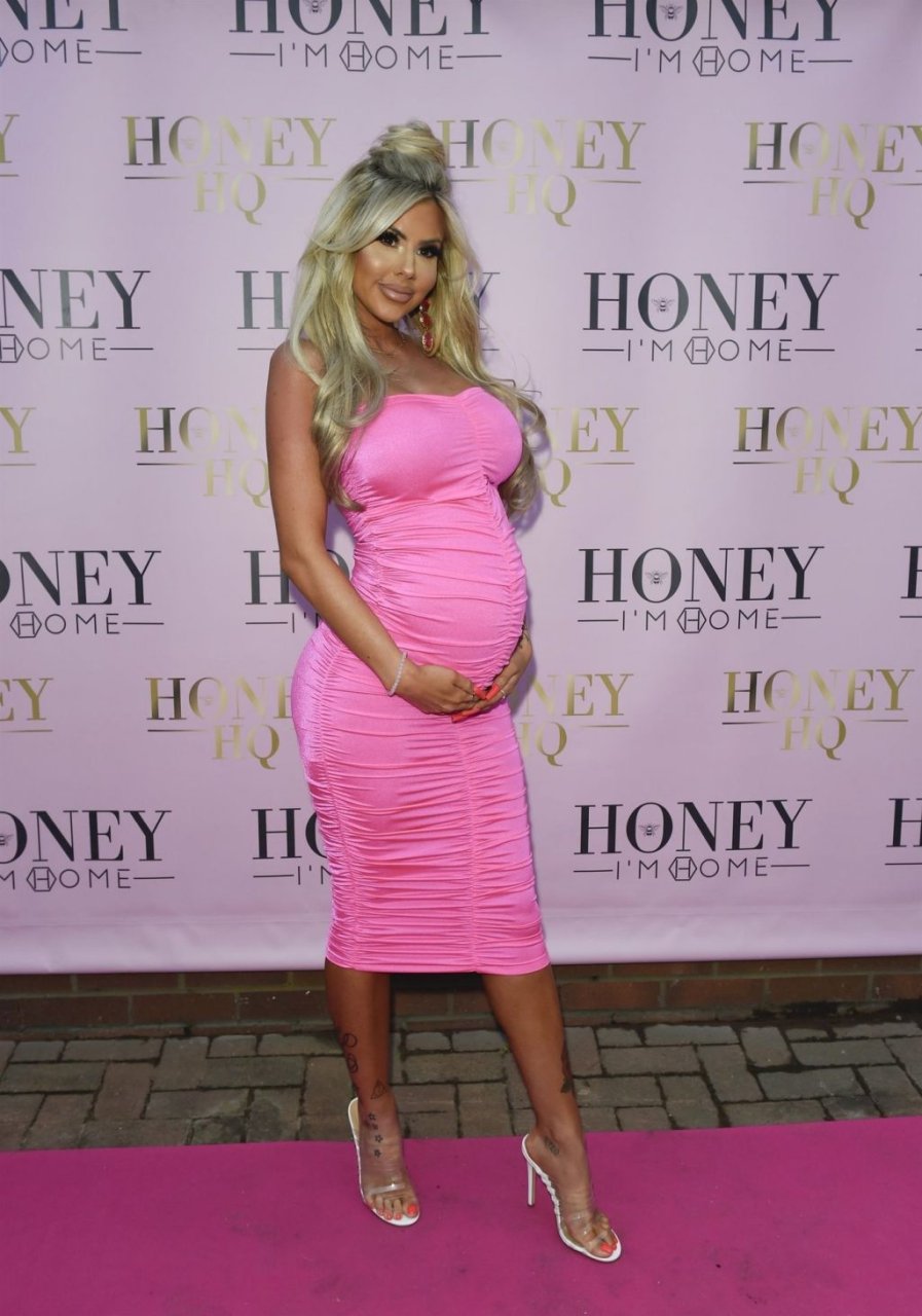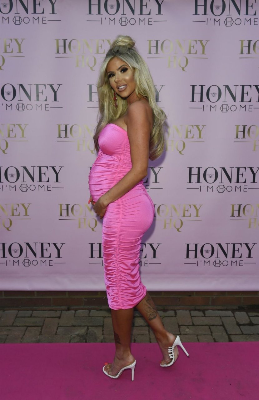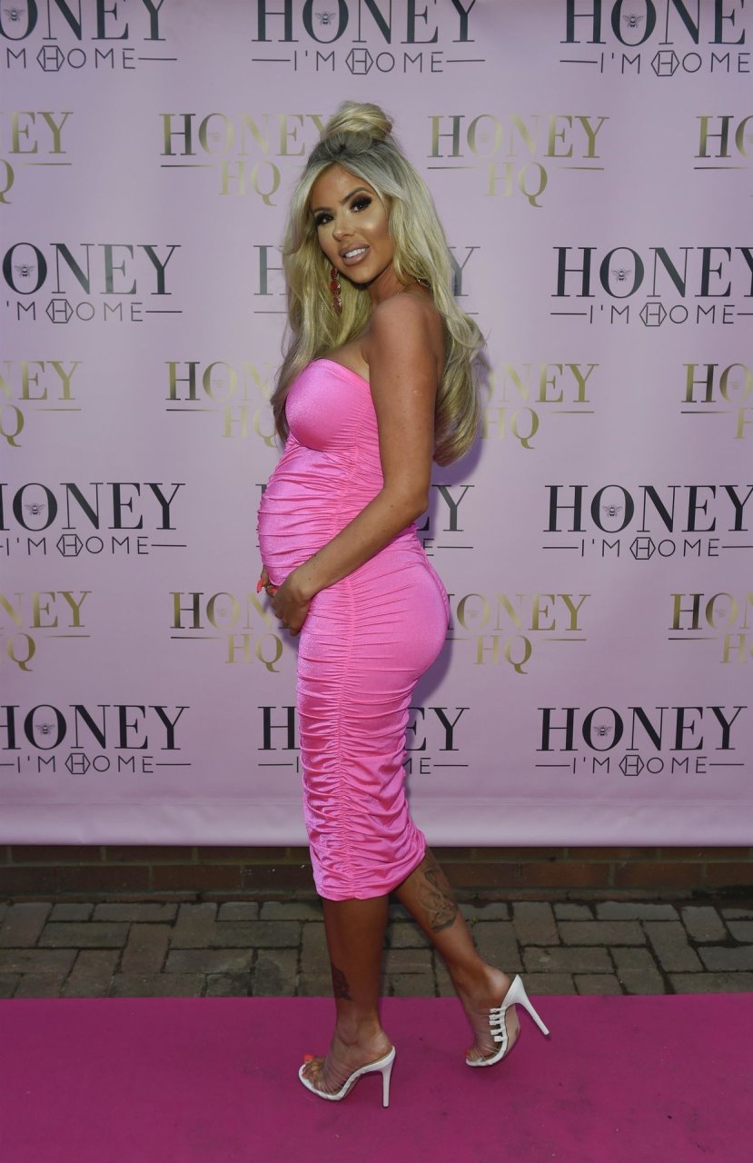 Hannah Elizabeth embarazada fue fotografiada con un vestido rosa ajustado en el lanzamiento de la tienda Honey I’m Home Furniture en Leigh, 08/03/2019.