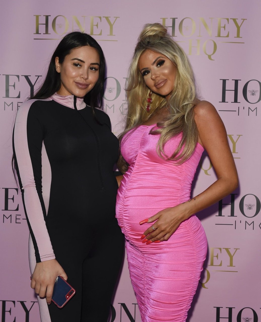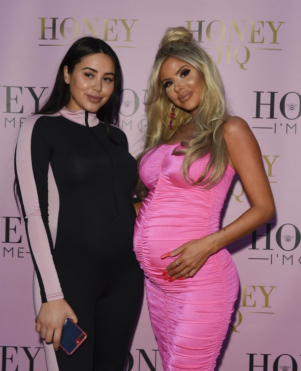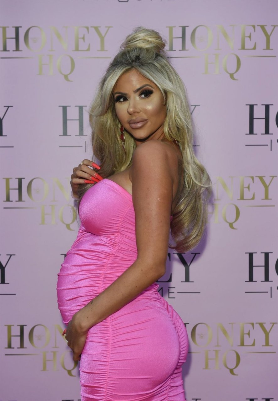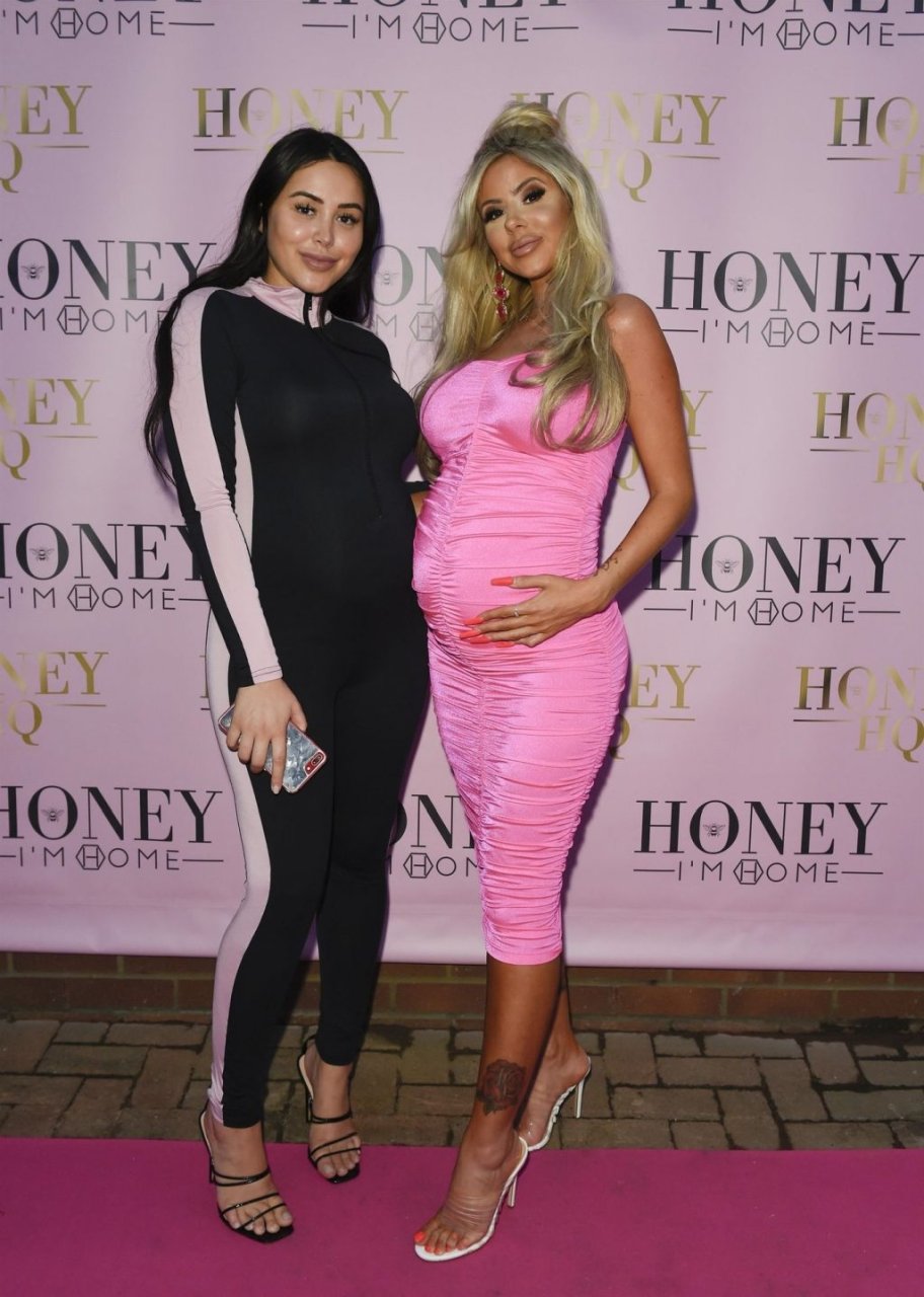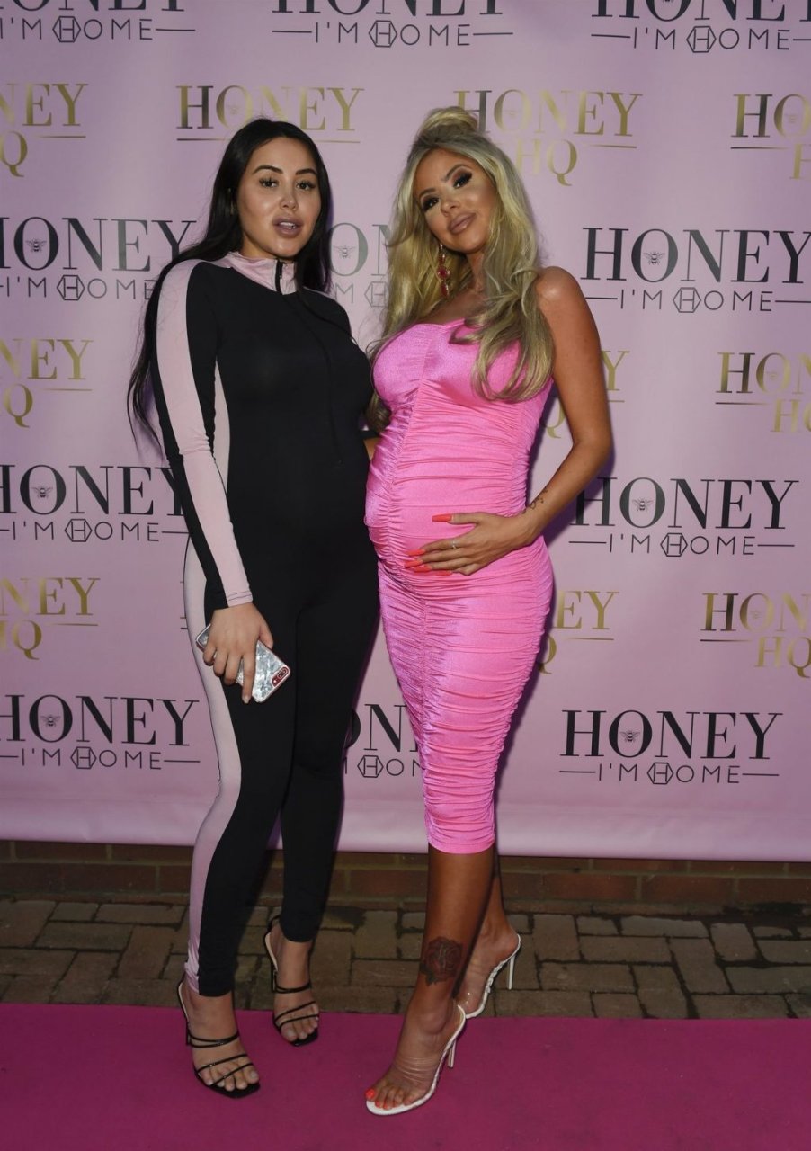 Hannah Elizabeth embarazada fue fotografiada con un vestido rosa ajustado en el lanzamiento de la tienda Honey I’m Home Furniture en Leigh, 08/03/2019.