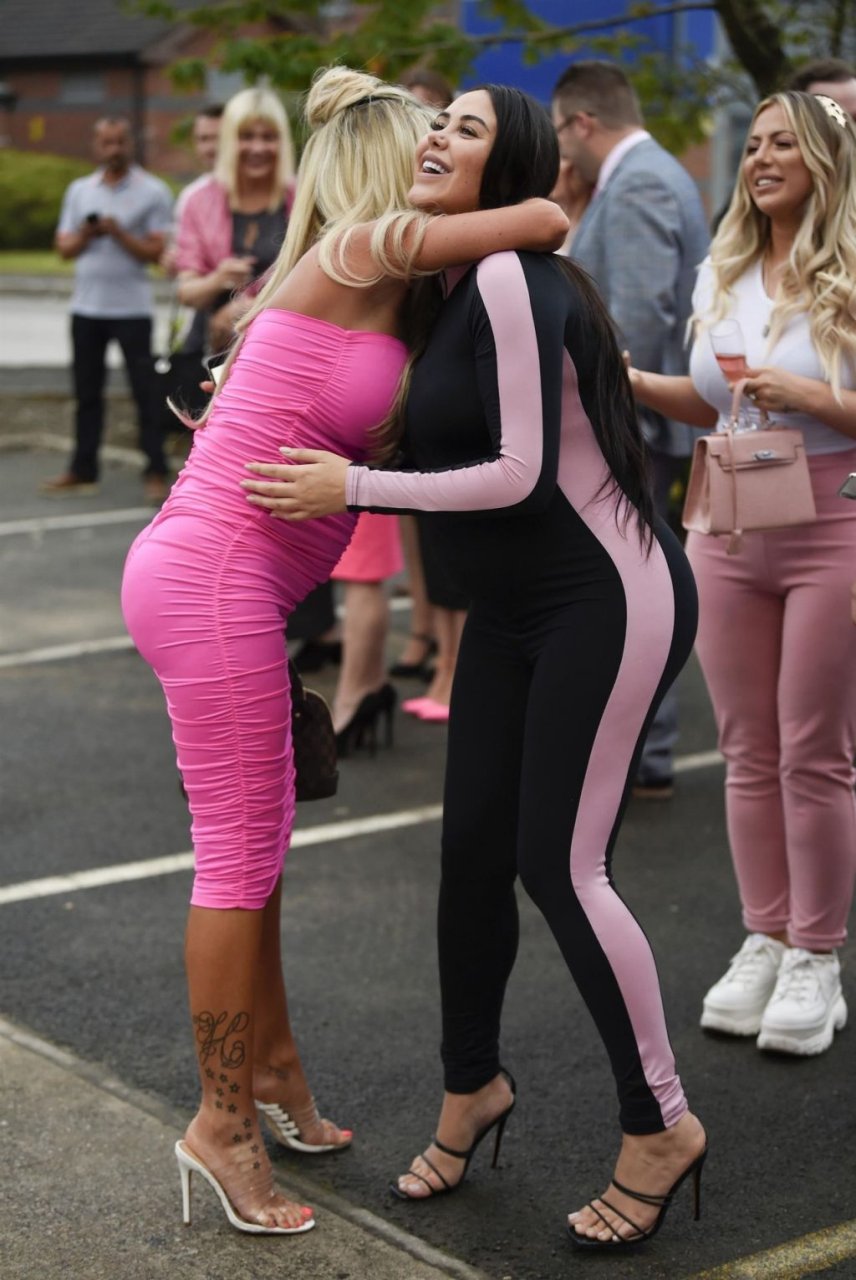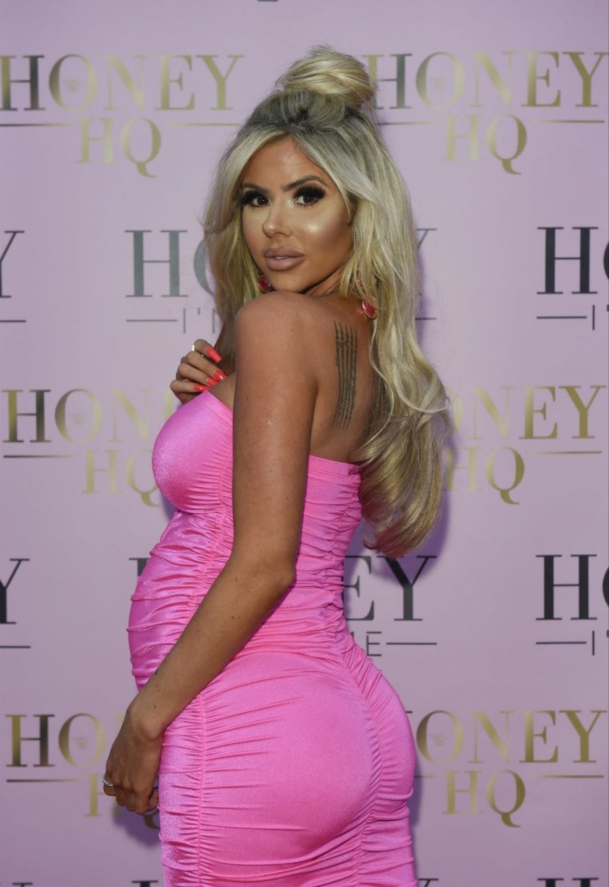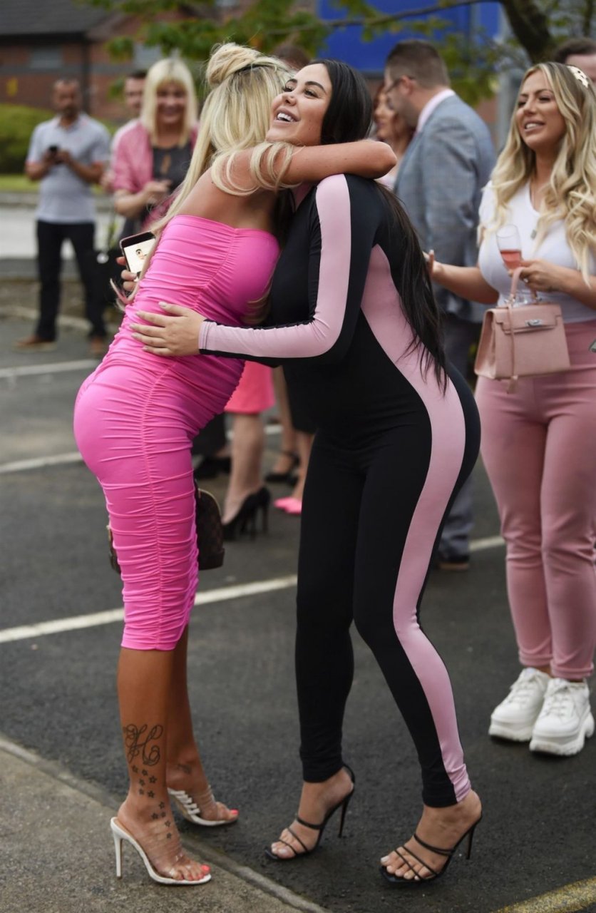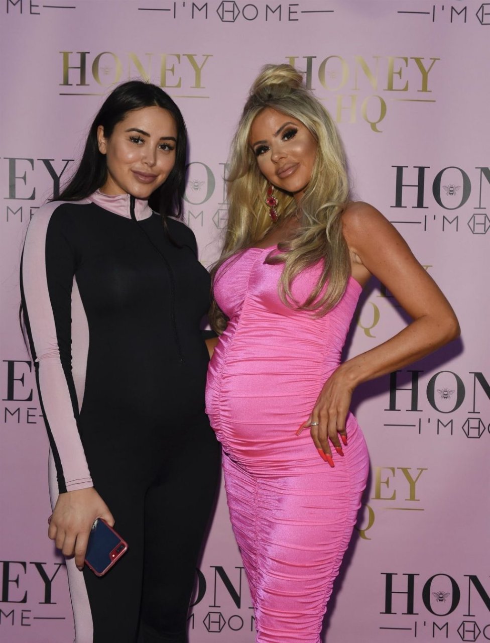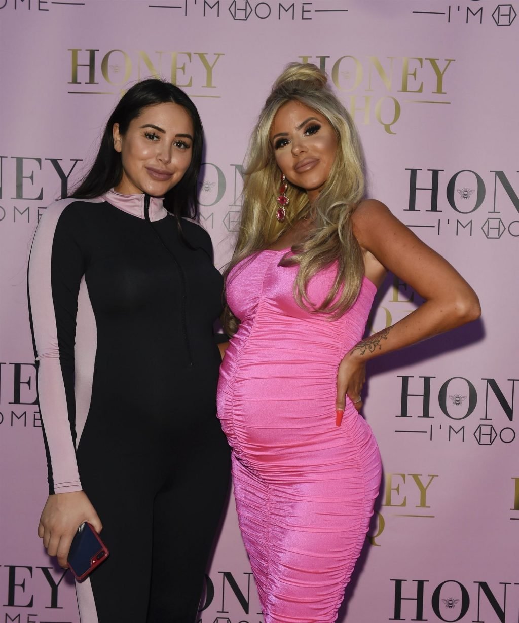 Hannah Elizabeth embarazada fue fotografiada con un vestido rosa ajustado en el lanzamiento de la tienda Honey I’m Home Furniture en Leigh, 08/03/2019.