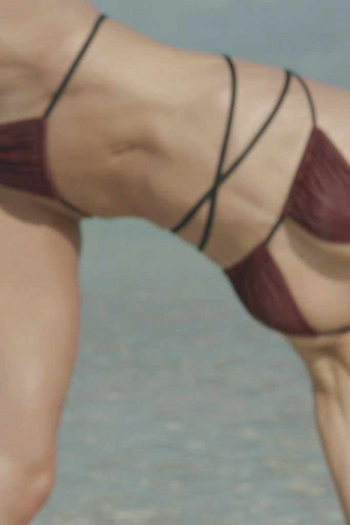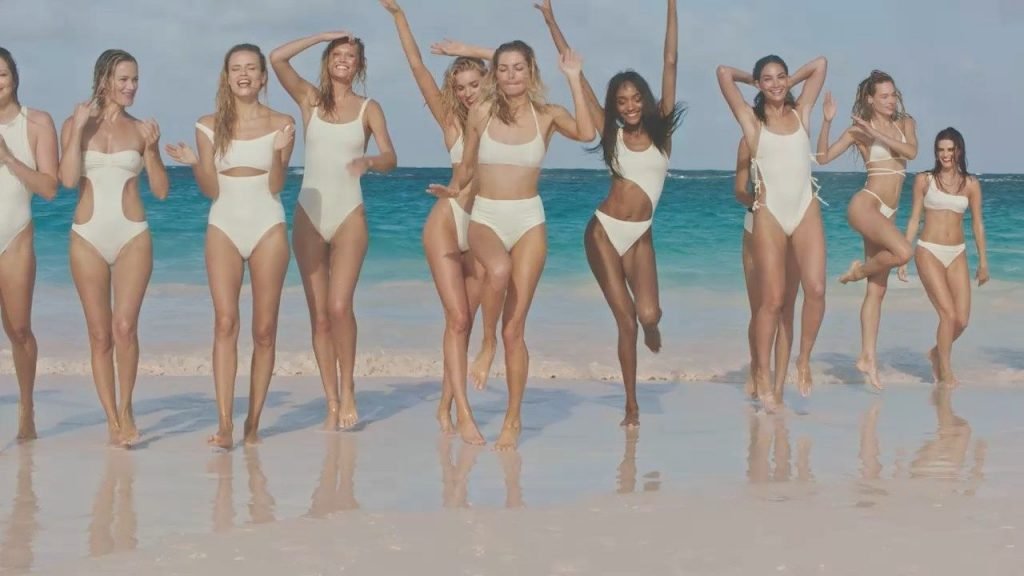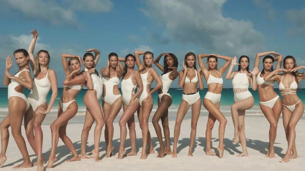 Modelo Hannah Ferguson, 25, presenta la nueva colección Solid & Striped (2018).