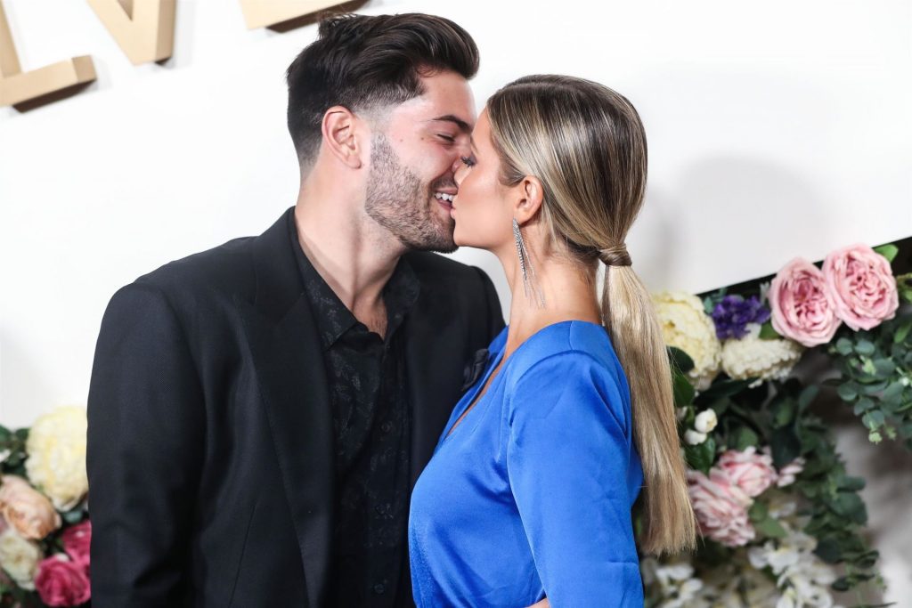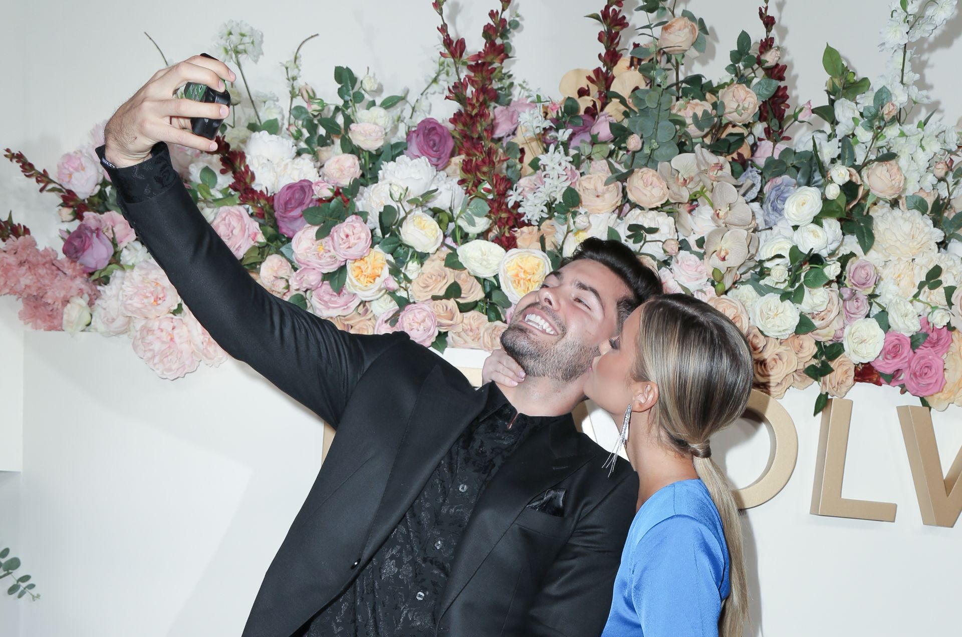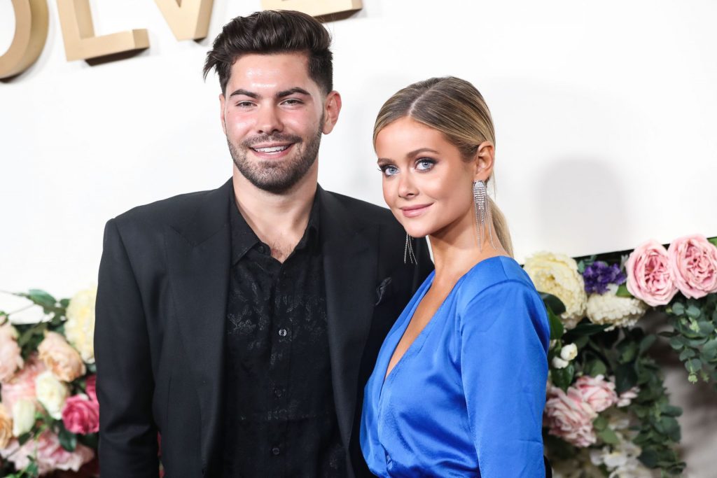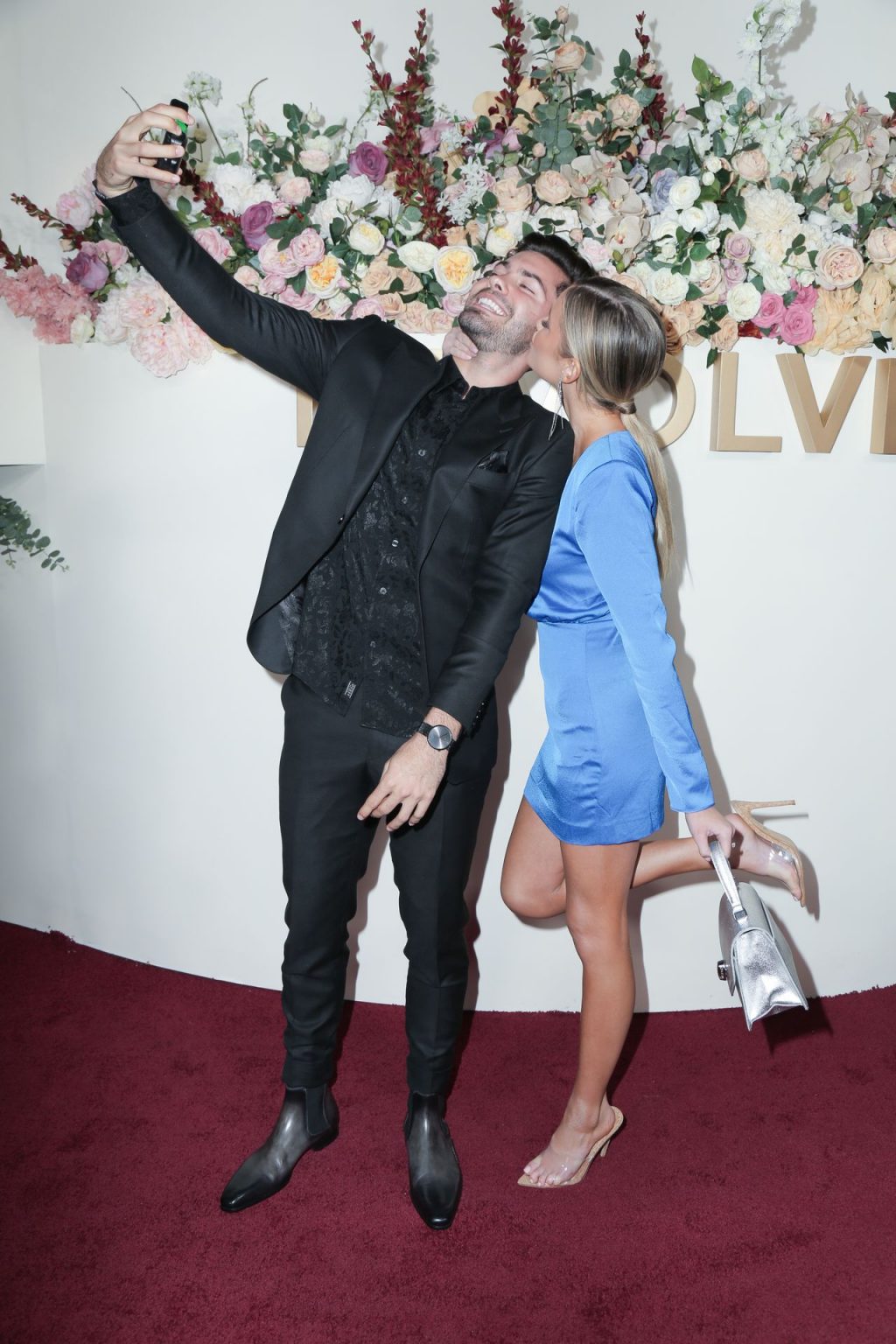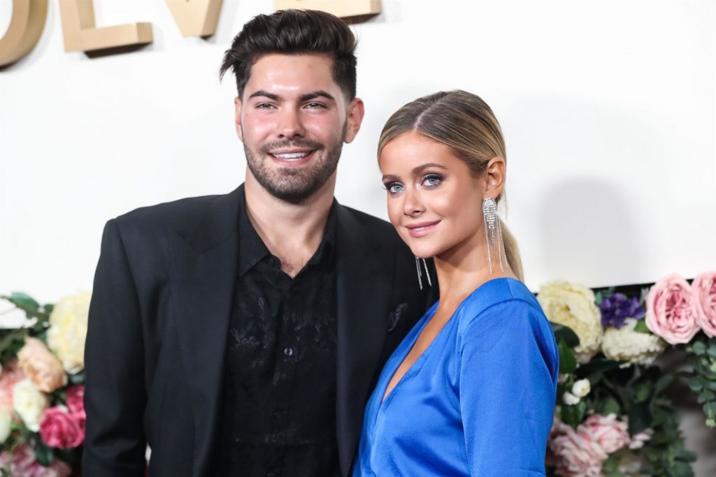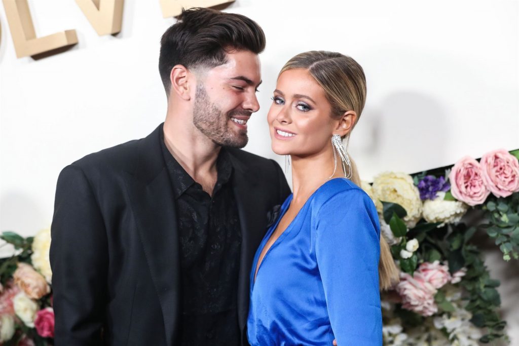 Modelo de piernas largas y estrella de reality TV Hannah Godwin fue fotografiada con Dylan Barbour y Tyler Cameron en la alfombra roja de los 3ros Premios Anuales #REVOLVEawards 2019 celebrados en Goya Studios en Hollywood, 15/11/2019.