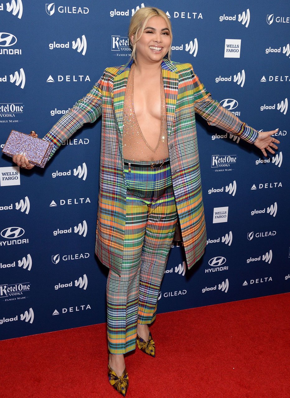 La actriz/bailarina/cantante/música estadounidense Hayley Kiyoko (28) fue vista sin sostén en la 30ª Entrega Anual de los Premios GLAAD Media celebrada en The Beverly Hilton en Beverly Hills, 29/03/2019.