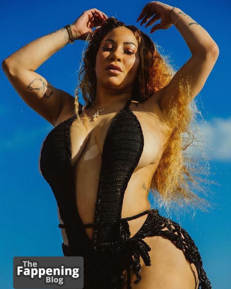 Hazel-E tiene una colección de fotos explícitas que muestra sus pechos desnudos, un escote amplio sin sostén, glúteos expuestos y una figura ardiente de modelo.