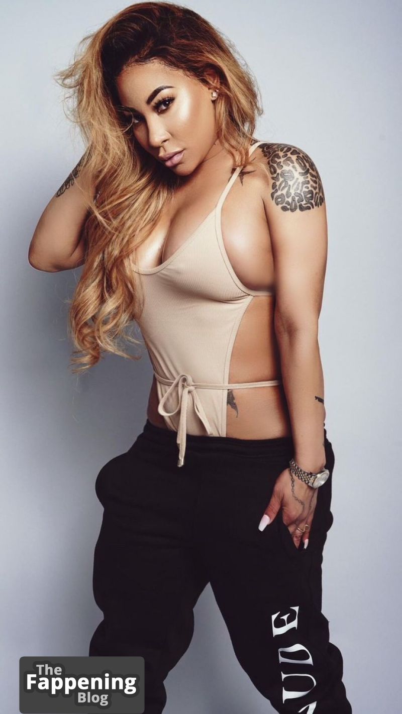 Hazel-E tiene una colección de fotos explícitas que muestra sus pechos desnudos, un escote amplio sin sostén, glúteos expuestos y una figura ardiente de modelo.