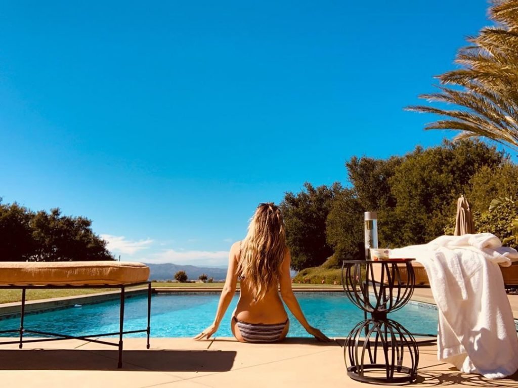 Heidi Klum con una abertura en su falda que muestra su trasero / ropa interior + algunas fotos en bikini de Instagram (julio de 2019).