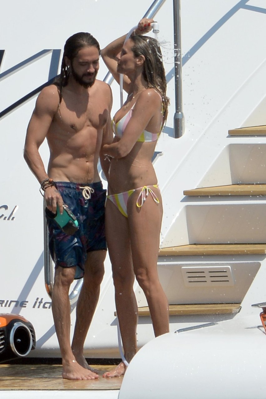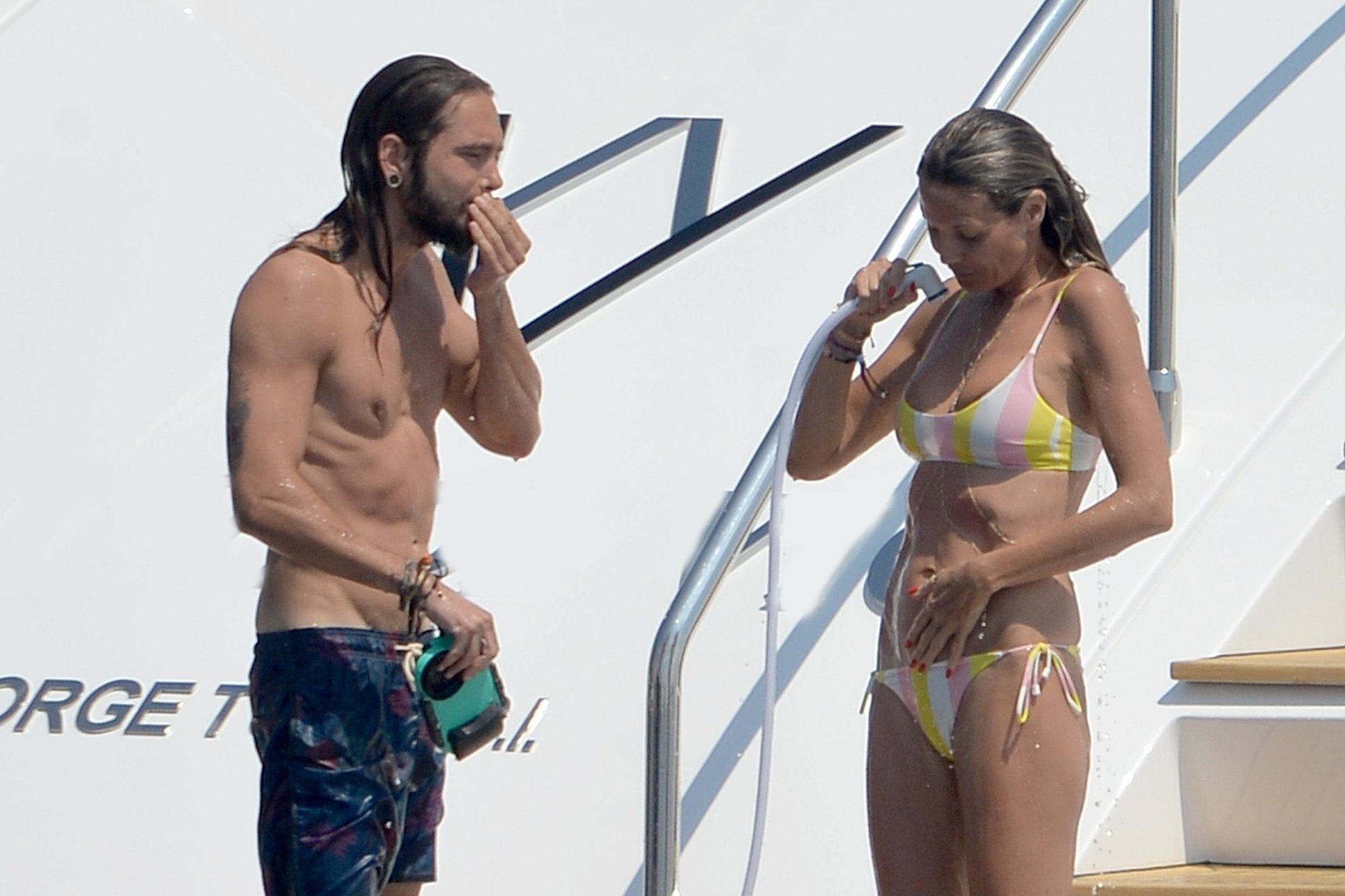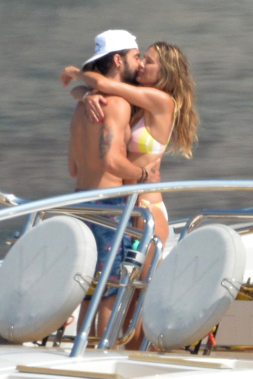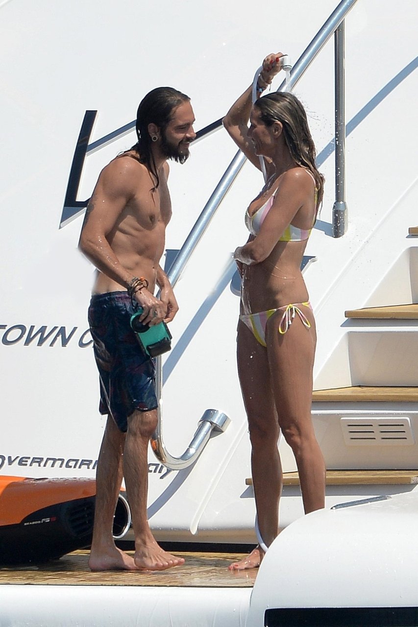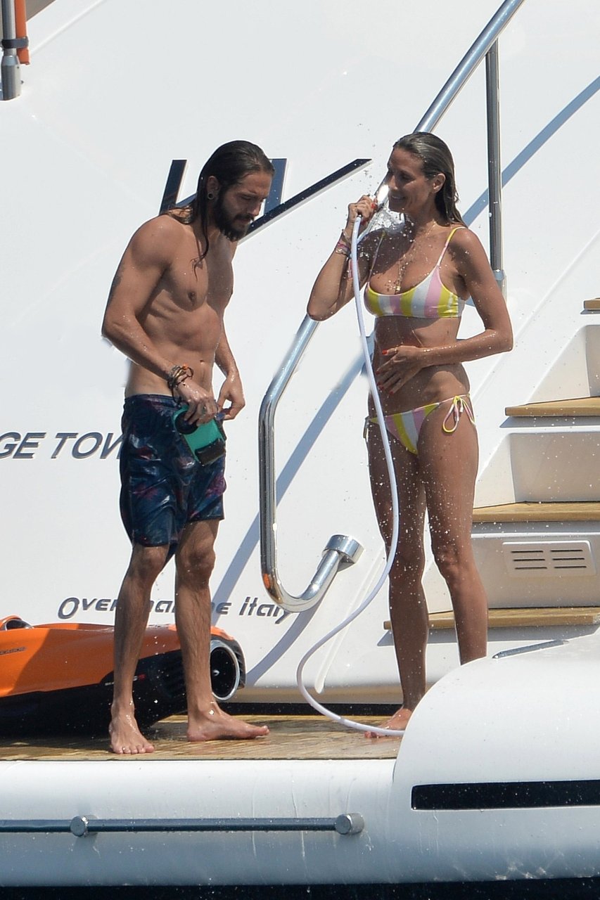 La Heidi de 45 años se fue de vacaciones con el rockero de 28 años en un yate alrededor de la isla italiana de Ponza, 07/08/2018. Los paparazzi captaron a la pareja cuando se besaban, abrazaban y disfrutaban de la estancia. Para el viaje, Klum eligió un bikini de dos piezas. La mujer decidió mostrar sus pechos en la playa.