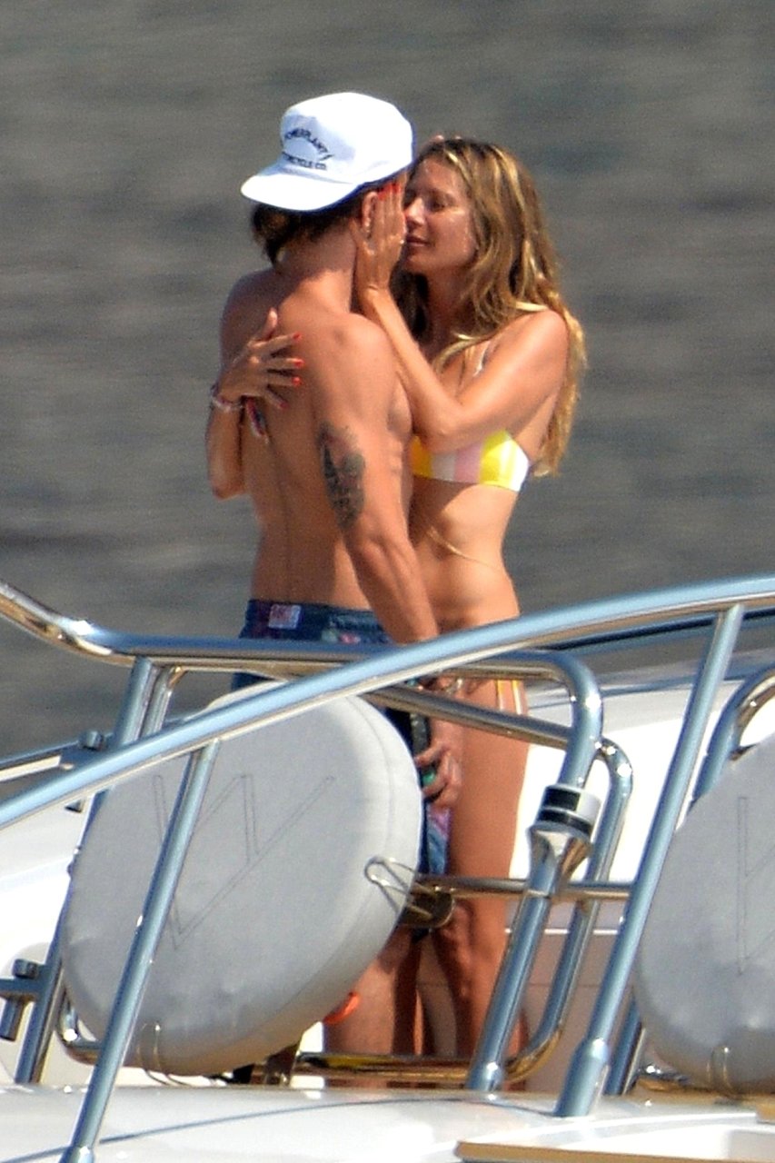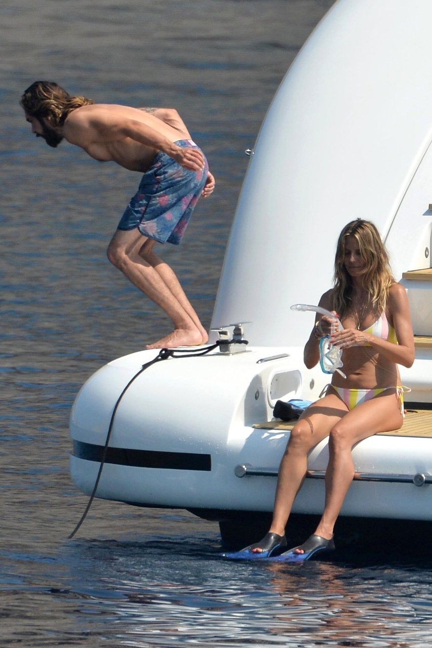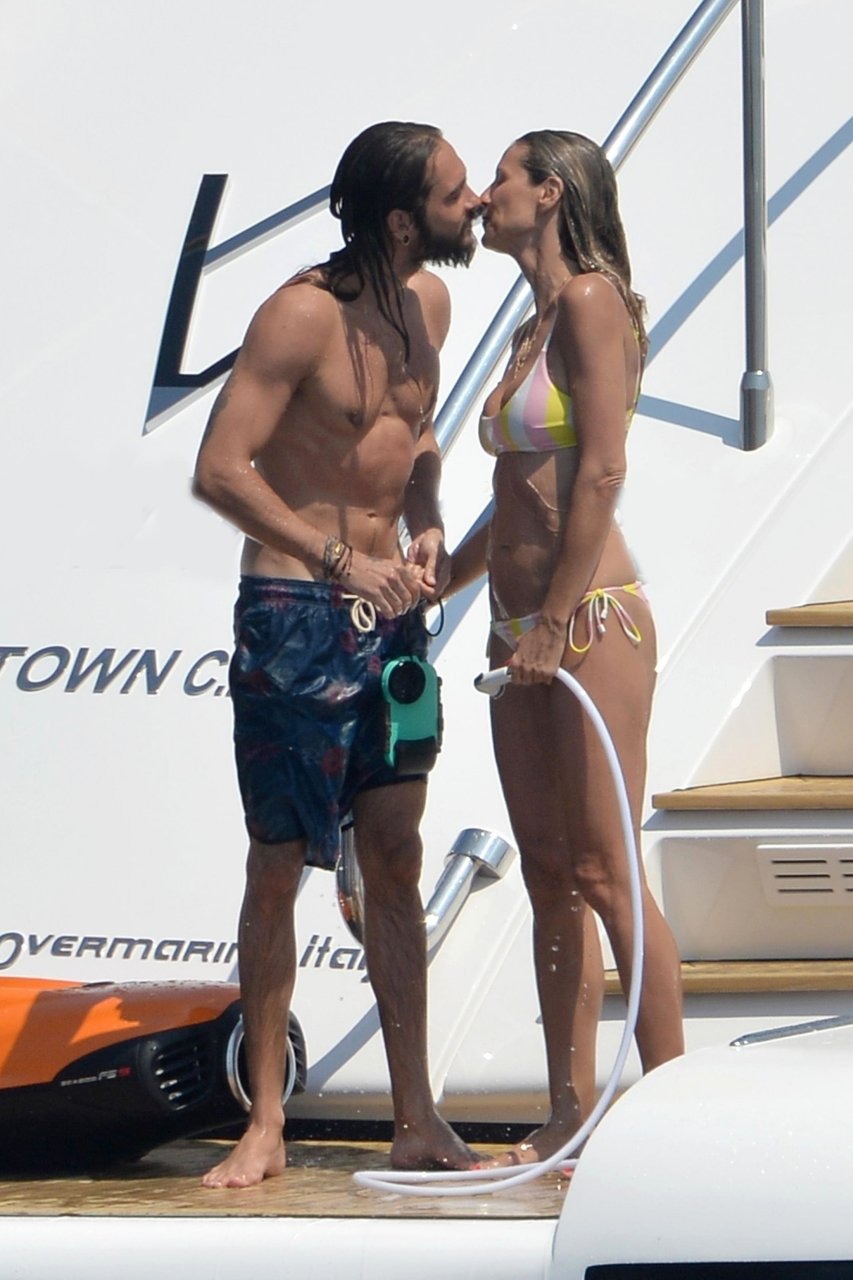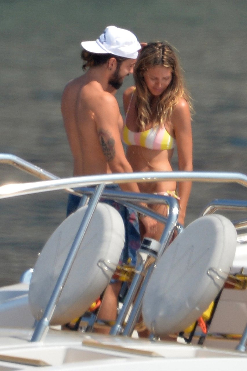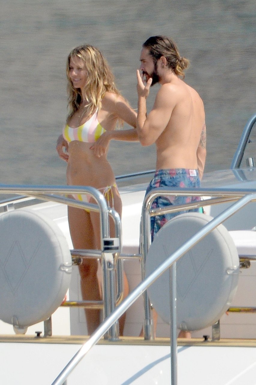 La Heidi de 45 años se fue de vacaciones con el rockero de 28 años en un yate alrededor de la isla italiana de Ponza, 07/08/2018. Los paparazzi captaron a la pareja cuando se besaban, abrazaban y disfrutaban de la estancia. Para el viaje, Klum eligió un bikini de dos piezas. La mujer decidió mostrar sus pechos en la playa.