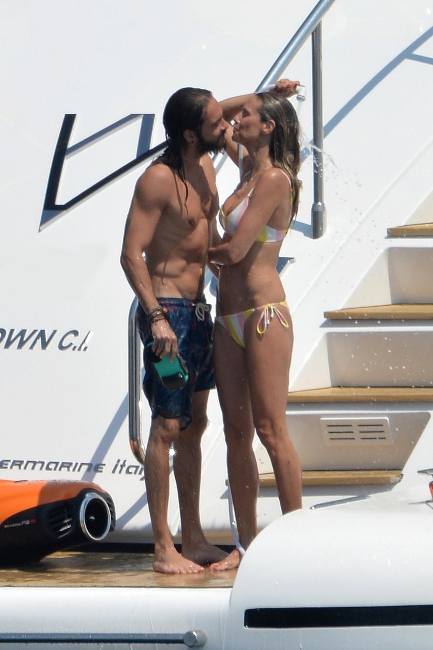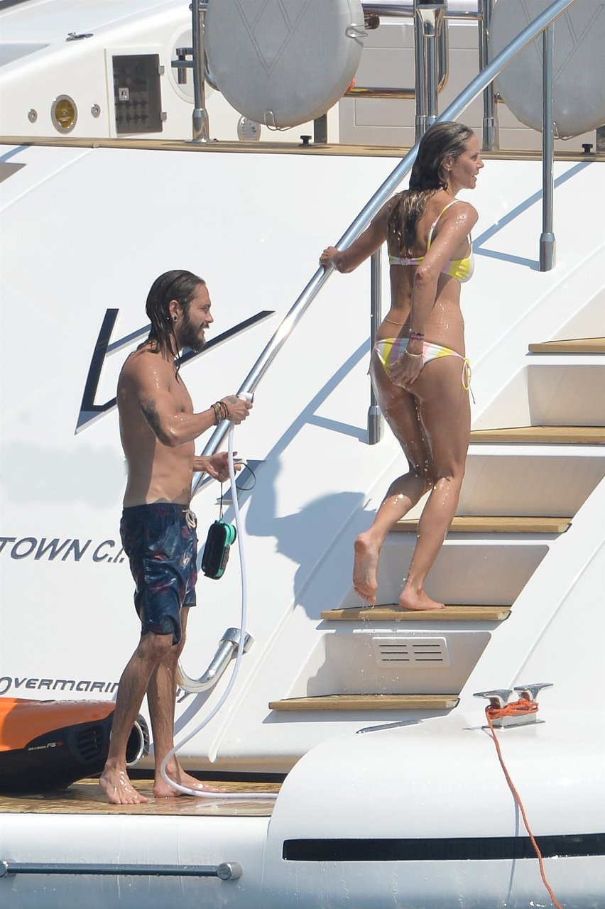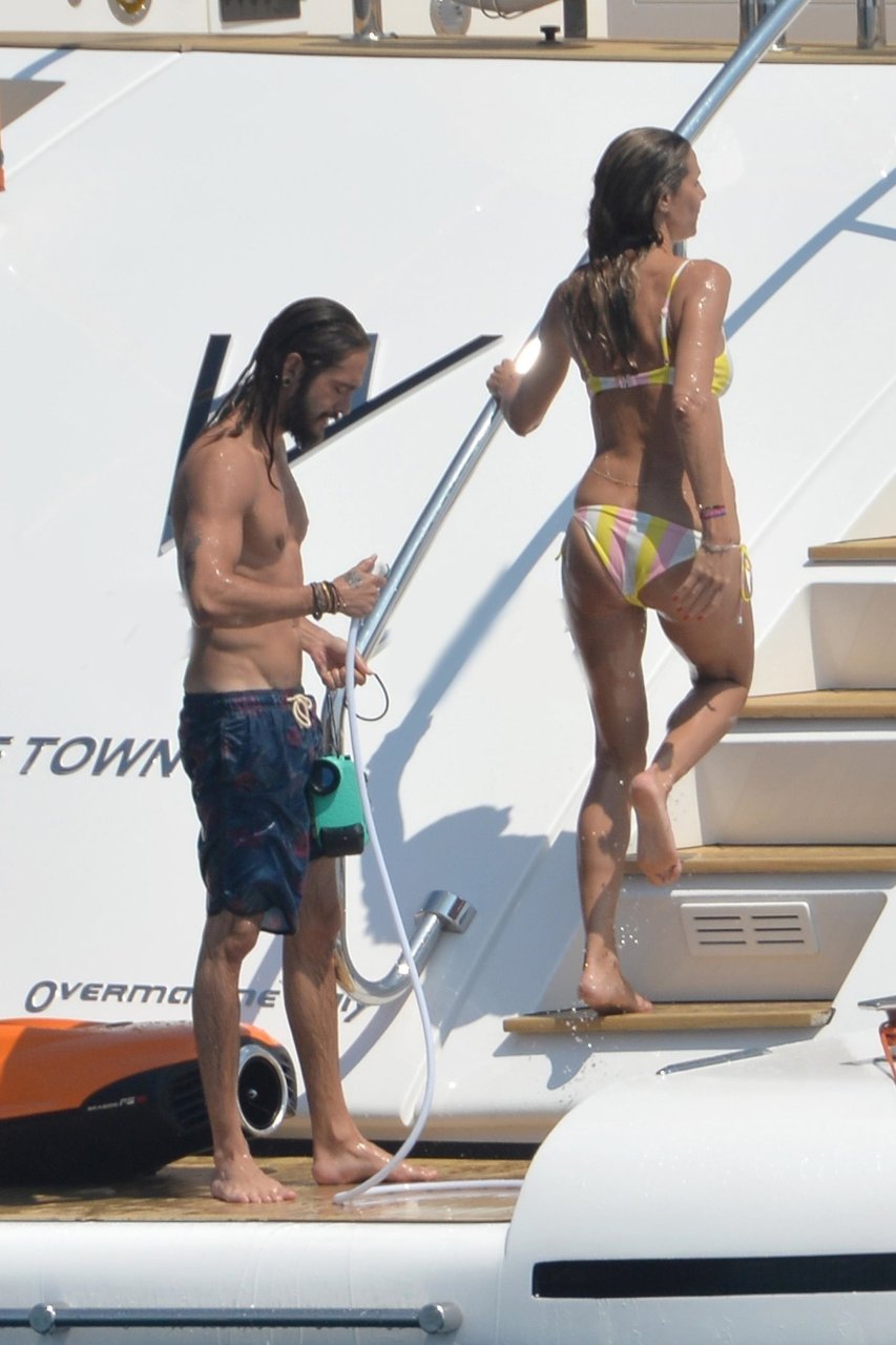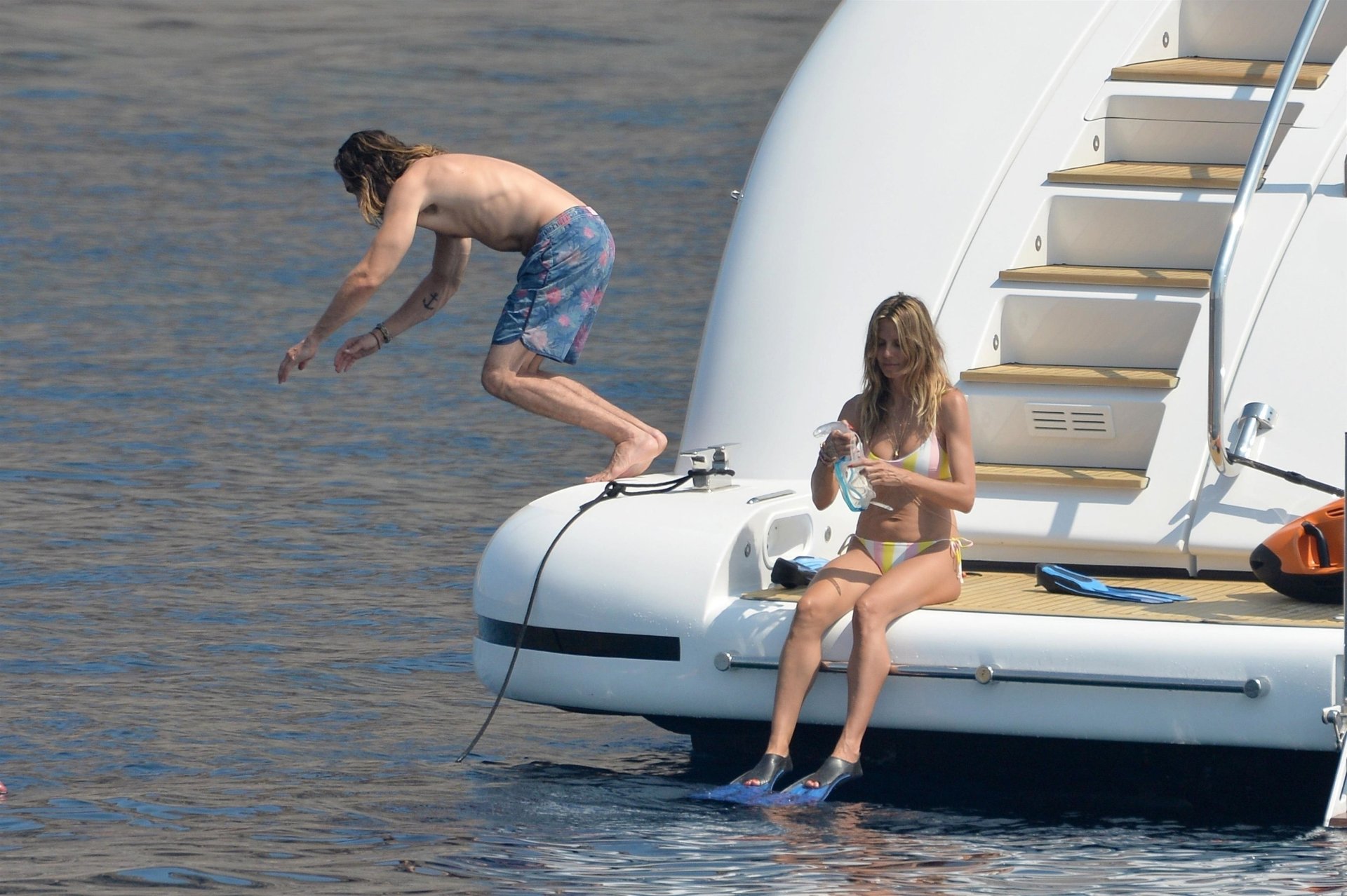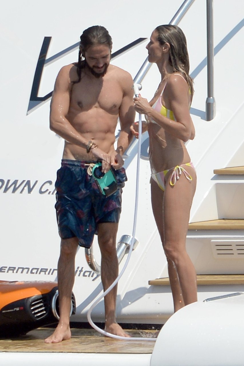 La Heidi de 45 años se fue de vacaciones con el rockero de 28 años en un yate alrededor de la isla italiana de Ponza, 07/08/2018. Los paparazzi captaron a la pareja cuando se besaban, abrazaban y disfrutaban de la estancia. Para el viaje, Klum eligió un bikini de dos piezas. La mujer decidió mostrar sus pechos en la playa.