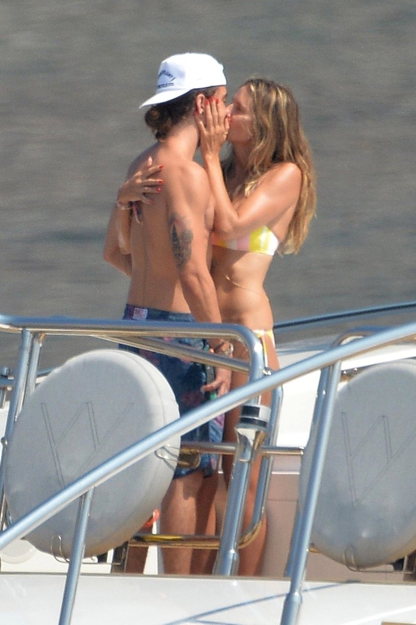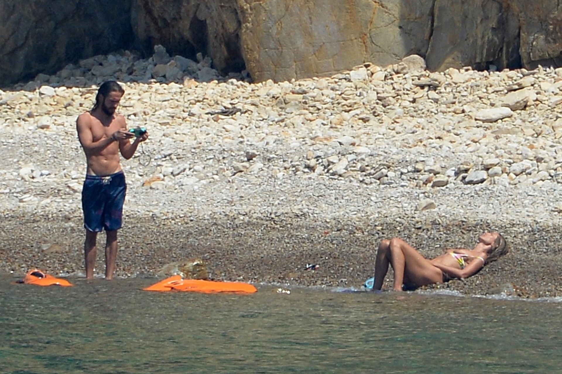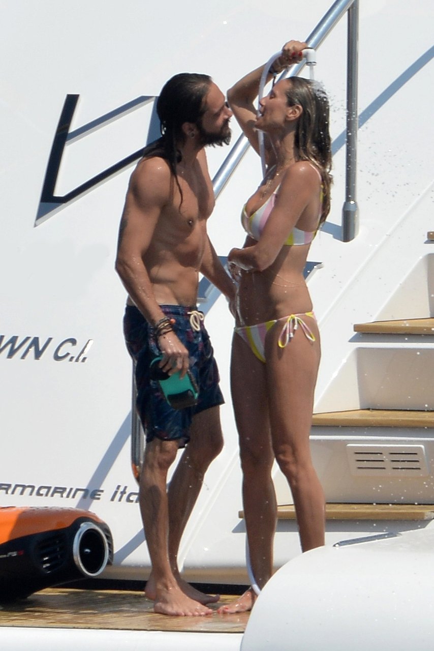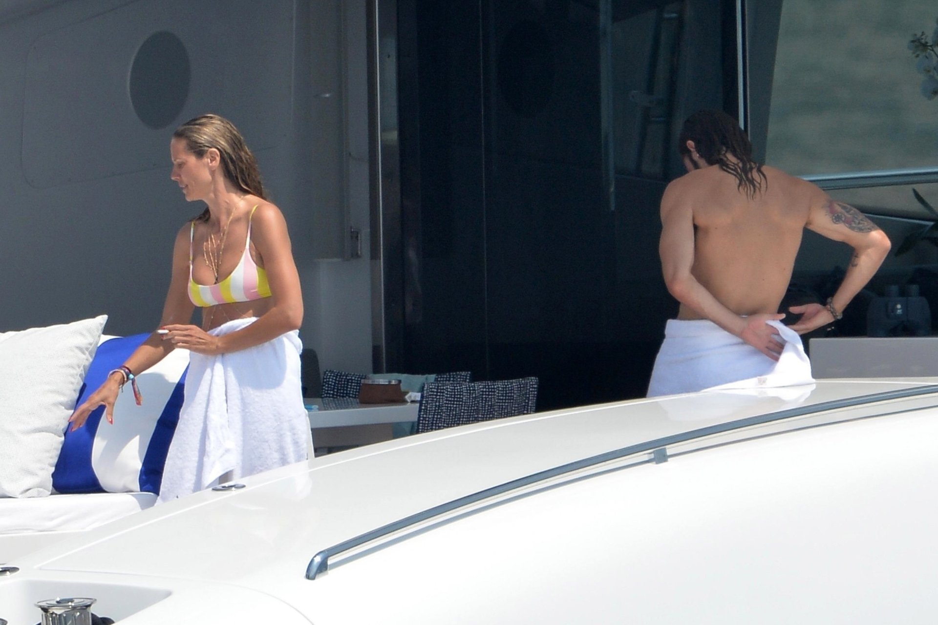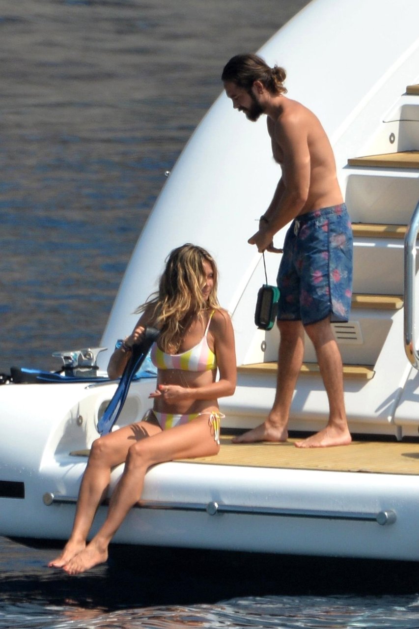 La Heidi de 45 años se fue de vacaciones con el rockero de 28 años en un yate alrededor de la isla italiana de Ponza, 07/08/2018. Los paparazzi captaron a la pareja cuando se besaban, abrazaban y disfrutaban de la estancia. Para el viaje, Klum eligió un bikini de dos piezas. La mujer decidió mostrar sus pechos en la playa.
