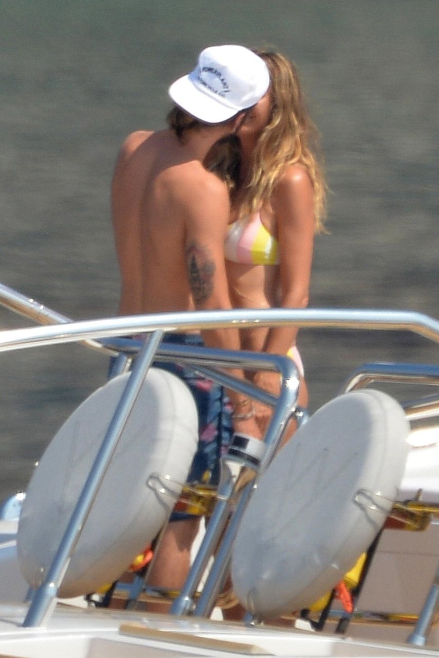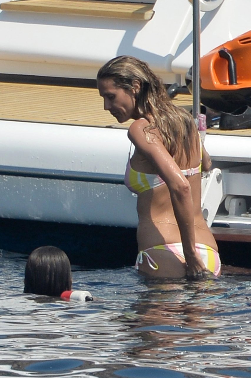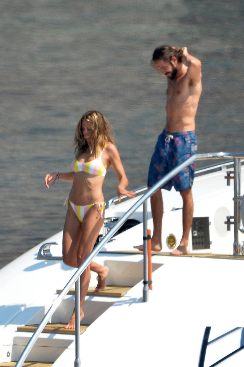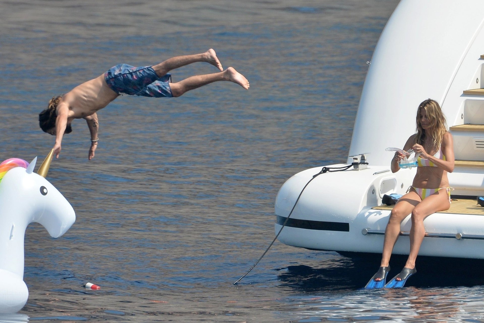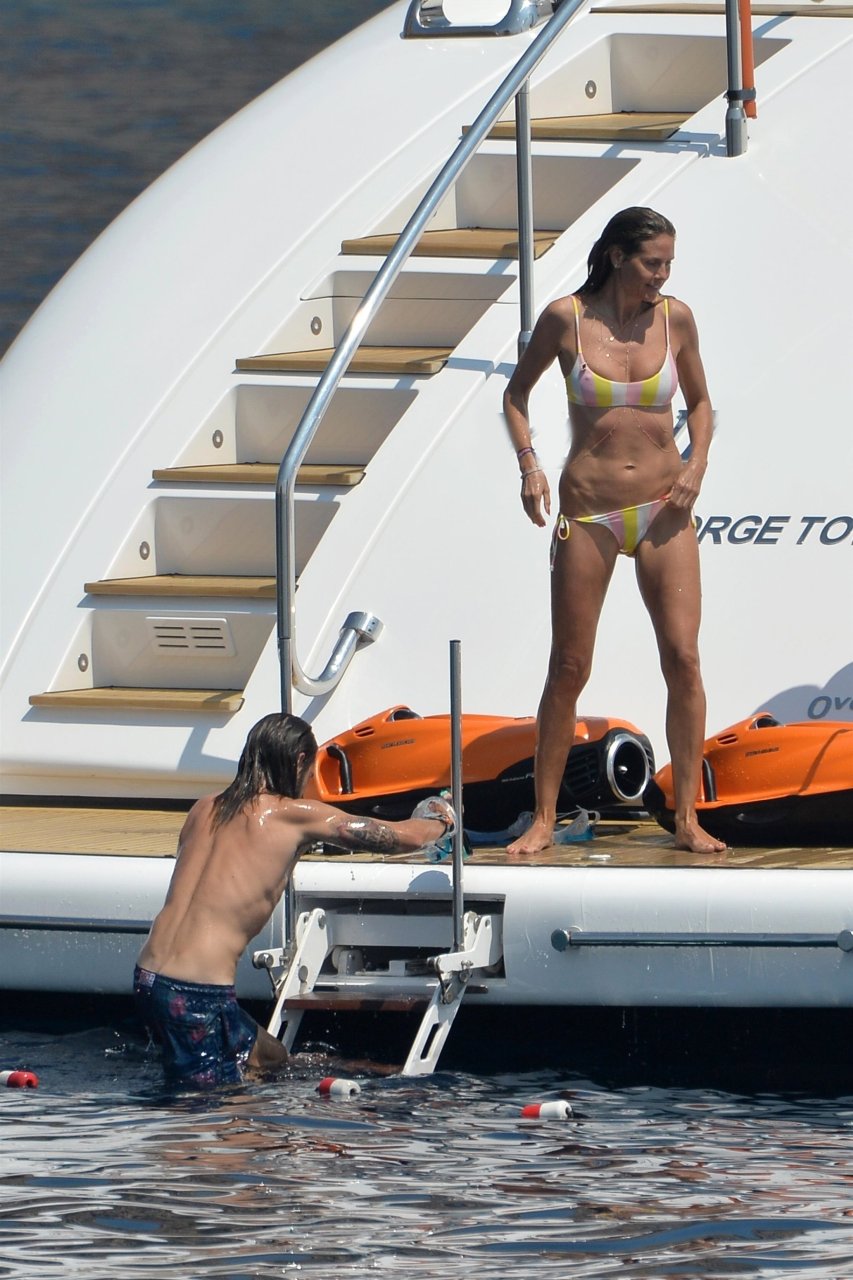 La Heidi de 45 años se fue de vacaciones con el rockero de 28 años en un yate alrededor de la isla italiana de Ponza, 07/08/2018. Los paparazzi captaron a la pareja cuando se besaban, abrazaban y disfrutaban de la estancia. Para el viaje, Klum eligió un bikini de dos piezas. La mujer decidió mostrar sus pechos en la playa.