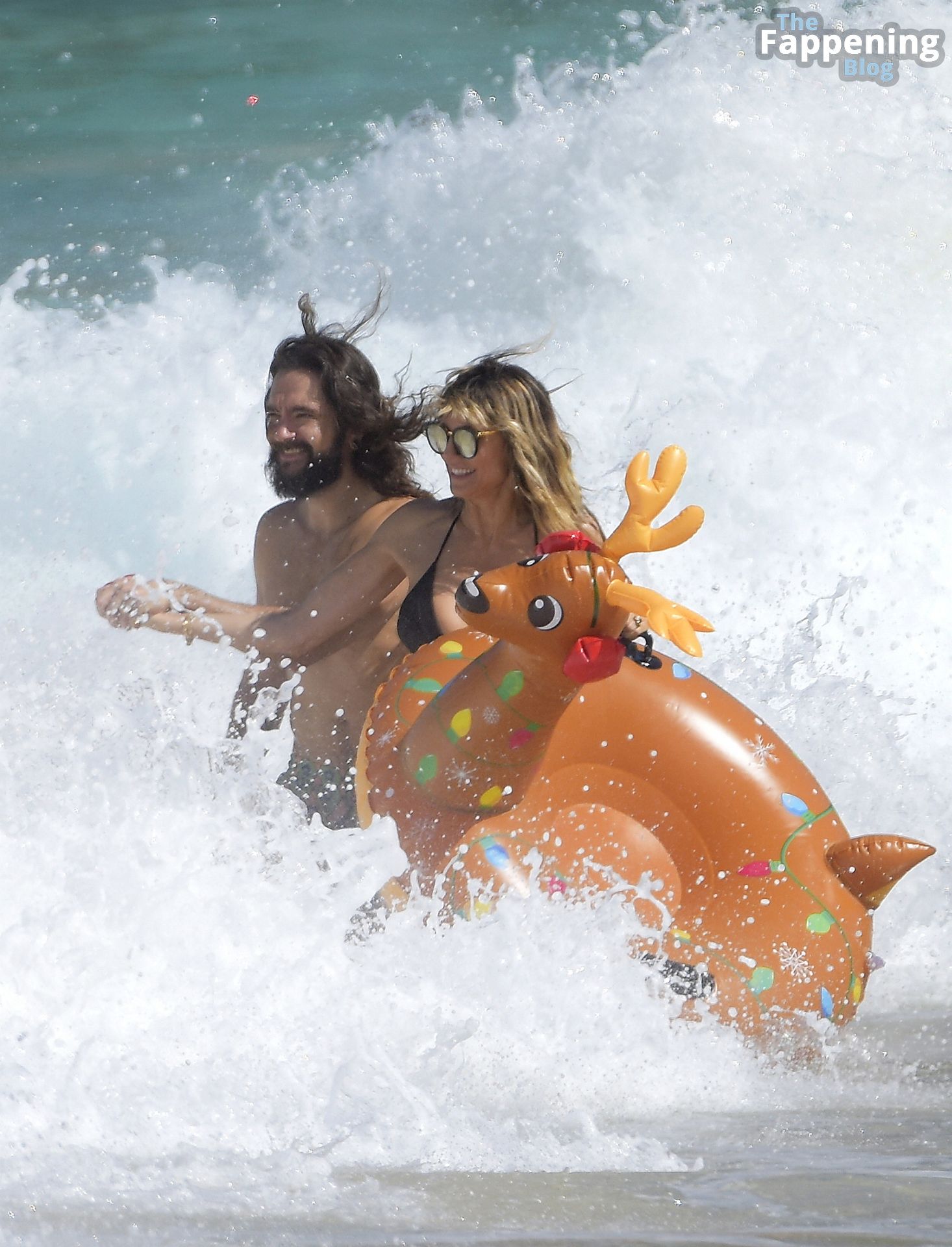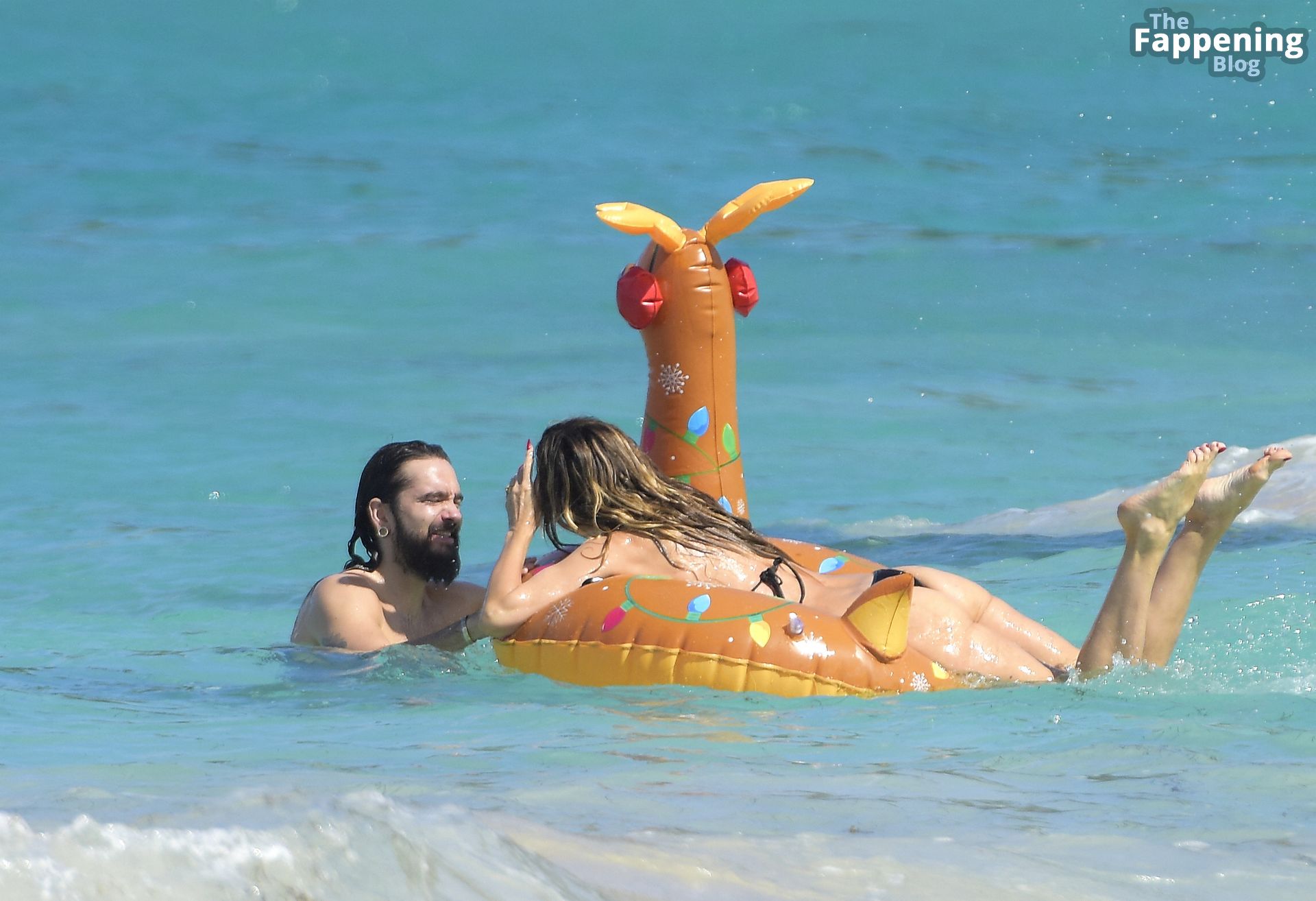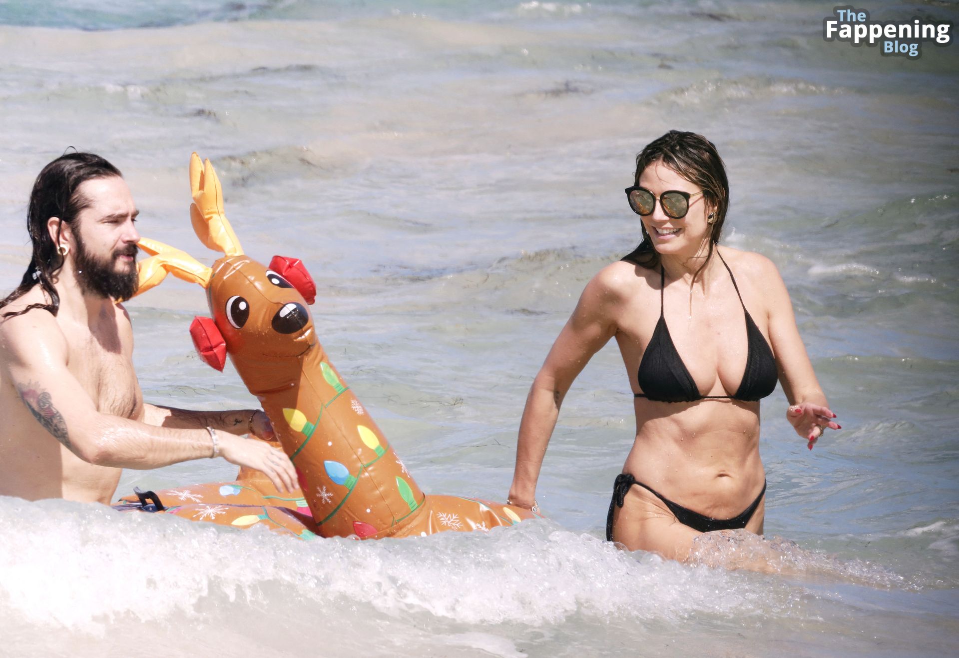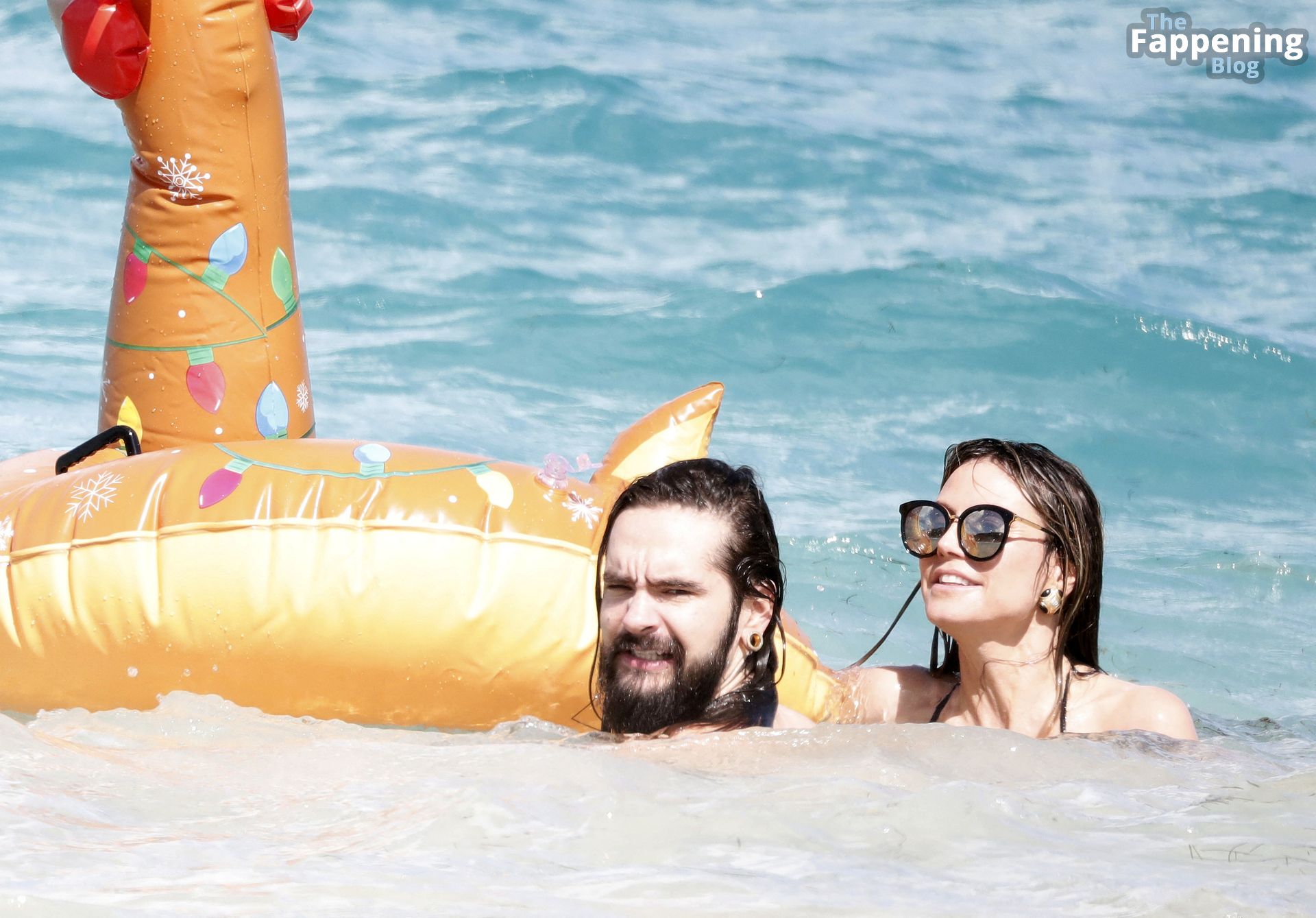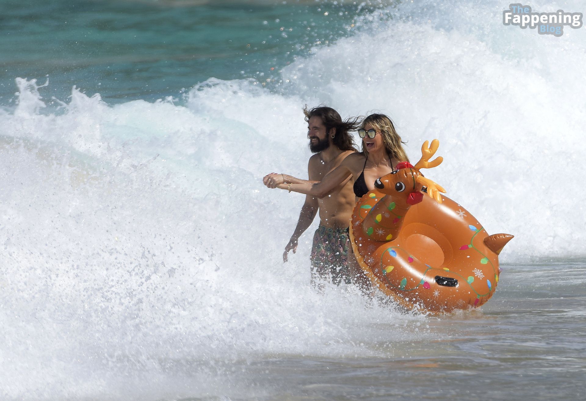 La presentadora de America’s Got Talent deslumbró con un diminuto bikini negro mientras ella y el rockero de Tokio Hotel mostraban su cariño en público, besándose y tomados de la mano, durante sus vacaciones de invierno en St Bart’s. Madre de cuatro hijos, Heidi chapoteó en las olas en un reno inflable mientras Tom, atento, la observaba.